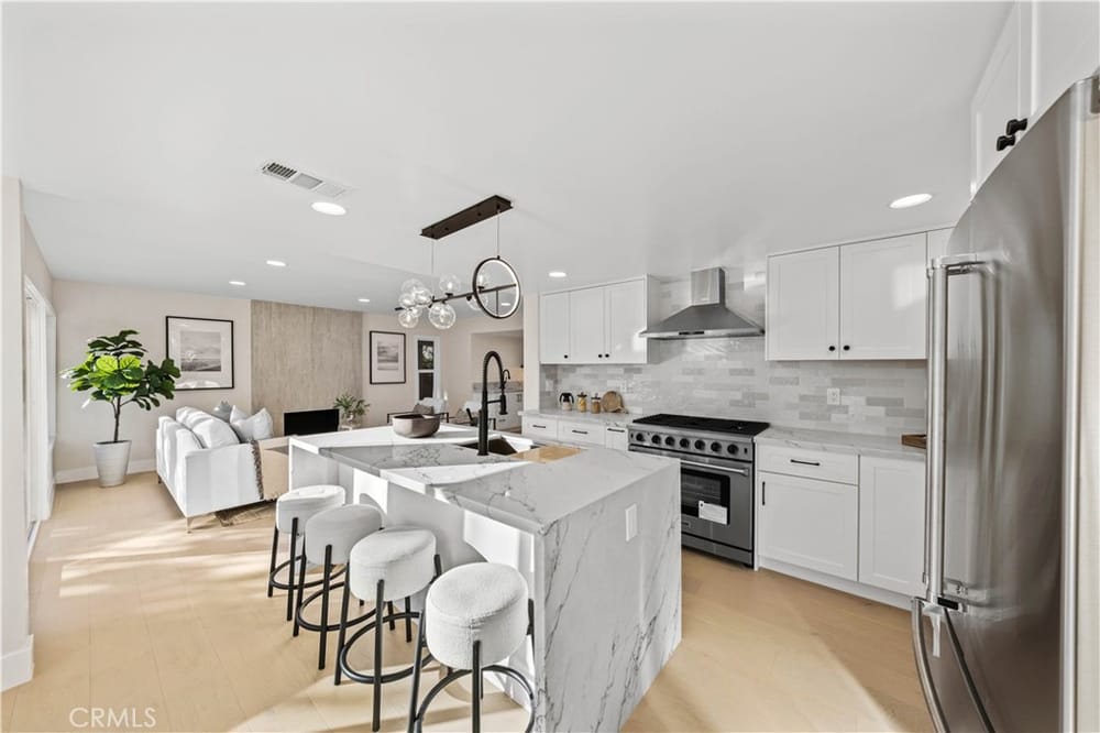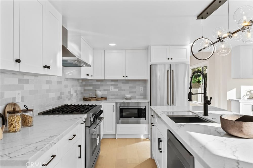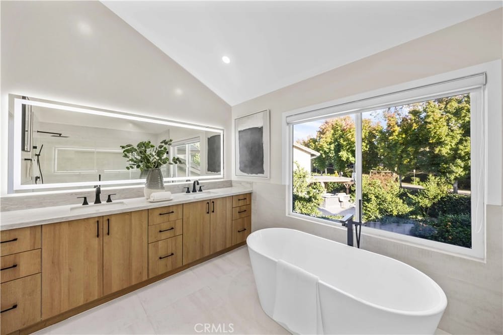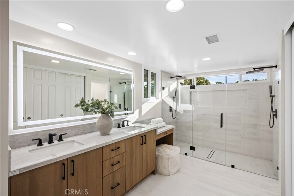 Welcome to 1 Castillo, Irvine – a high-quality remodeled home that combines luxury and practicality in the prestigious Northwood community. Boasting 5 bedrooms (including dual master bedrooms and one suite downstairs), 4 bathrooms, and 2,951 sqft of living space on a rare 8,000 sqft lot, this home offers everything you need and more.Step inside to discover elegant upgrades, including solid wood fl...ooring, marble countertops, brand-new soundproof windows and sliding doors, and a stunning wrought iron staircase. The home is designed to maximize natural light, creating bright and inviting living spaces throughout. The fully remodeled kitchen features custom cabinetry and a temperature-controlled wine cooler, perfect for entertaining. The newly upgraded garage, including epoxy floors and a new garage door, offers both style and functionality.The oversized backyard provides unmatched privacy with no rear neighbors, and the fully paid-off solar panels add long-term value and energy efficiency.Top-rated Northwood schools (9/10) and a prime location within walking distance to shopping, dining, and parks make this home a must-see. With no Mello Roos and low HOA fees, enjoy access to community pools, tennis courts, and more. This is the Irvine dream home you’ve been waiting for – schedule your visit today!