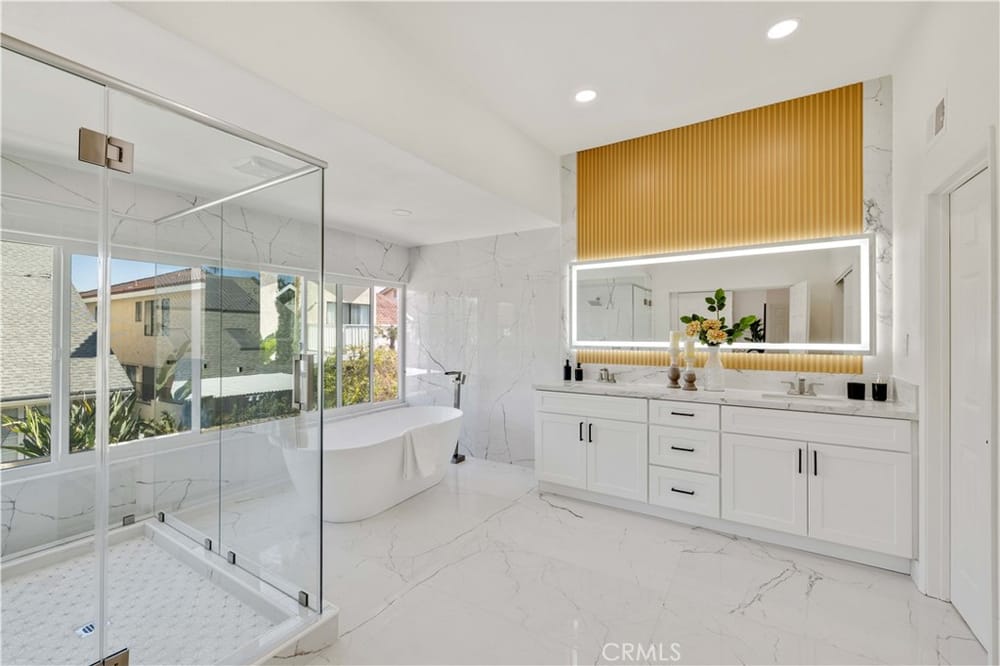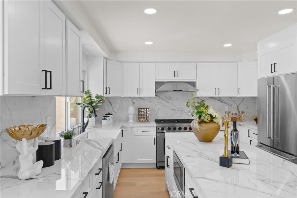 Welcome to 10 Hunter, an exquisite sanctuary nestled in the coveted enclave of Northwood, Irvine, CA 92620. This immaculate 5-bedroom, 4-bathroom detached home offers a harmonious blend of elegance and modernity, perfectly poised for luxury living. Meticulously renovated to the highest standards, this residence presents a unique opportunity to live in comfort and style. Step into the expansive two...-story formal living room, where brand new windows flood the space with natural light, highlighting the pristine hardwood floors that flow seamlessly throughout the home. The updated kitchen is a chef's dream, showcasing sleek white shaker cabinets with soft-close functionality, stunning quartz countertops, a premium backsplash, and a central island equipped with a cooktop and downdraft vent. Culinary adventures await with top-of-the-line Viking appliances, including built-in ovens and a microwave. An ingenious pull-out drawer system ensures convenience at every turn. The main level is thoughtfully designed with a guest suite featuring an updated tiled shower, ideal for hosting friends and family in style. For those seeking a versatile space, a flex room on this level is perfect for a home office or creative studio. Venture upstairs to find the luxurious primary suite, a true retreat with its vaulted ceilings, two spacious walk-in closets, and spa-like bathroom. Indulge in the tranquility of dual sinks, a plush soaking tub, and a modern tiled shower. Brand new fixtures, LED lights, and meticulously designed mirrors add a touch of sophistication at every turn. nearby Northwood Park, perfect for outdoor activities. Award winning Canyon View Elementary, Sierra Vista Middle, and Northwood High, all known for their award-winning programs. Easy access to The Marketplace, Shopping Center, Northpark Plaza, and Northwood Plaza, promising endless shopping and dining options. A short drive brings you to the vibrant District and Irvine Spectrum, filled with entertainment and cultural experiences. This fully renovated gem, complete with brand new doors and windows throughout, creates an inviting and energy-efficient environment. The enviable blend of superior craftsmanship and strategic location positions 10 Hunter as an unrivaled opportunity. Embrace the lifestyle you’ve always dreamed of and schedule a private showing today to experience the unmatched quality and comfort this home offers. Don’t miss your chance to own this piece of paradise in Irvine. Your dream home awaits!