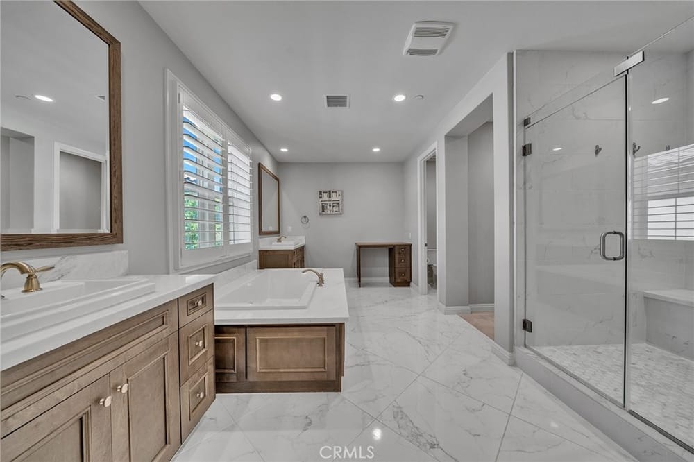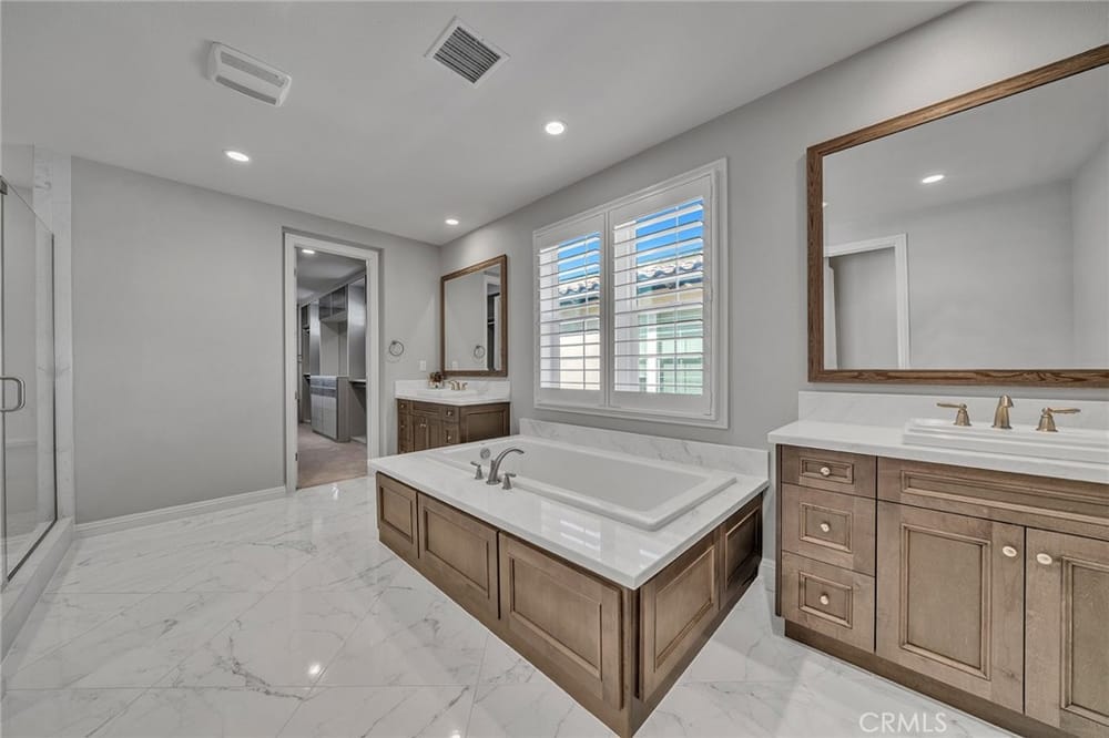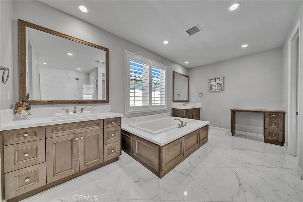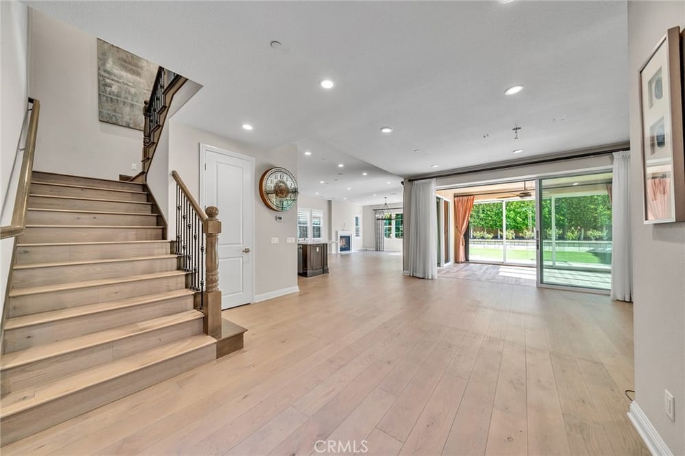 Corner lot and huge amazing backyard in the great park. Located in Cul-De- Sac. Face to the the great park trails , and offers luxurious living with 5 bedrooms, 5.5 bathrooms and a huge loft within its expansive 4,486 square feet of living space, Corner Lot there is an impressive 8,315 square foot lot. The master suite includes upgraded walk-in closets and a lavishly upgraded bathroom with a walk-...in shower and separate bathtub. Each generous bedroom has its own private bathroom. First floor bedroom has a private living room. Meticulously transformed, blending traditional allure with contemporary refinement. Spectacular Interior Highlights include: Open floor plans create an airy, sophisticated ambiance perfect for both intimate gatherings & grand entertaining. A culinary enthusiast’s dream kitchen, featuring state-of-the-art appliances, custom cabinetry, & sleek countertops that inspire gourmet creations.Upgrades with builder and Landscape. Upgraded include countertops, maple cabinets, back splash and stainless steel appliance package. Hardwood floor and tiles throughout. LED recessed can light package with dimmer switch and ceiling fan prewire. Maple stair system with iron balusters. Guest suite kitchenette with upgraded countertop, faucet and under counter refrigerator and microwave. Upgraded tiles in all bathrooms. HVAC with upgraded Honeywell VisionPro WiFi programmable thermostat with touchscreen. Upgrade picture frame windows throughout. Cinema speaker installed in great room, California room and second floor loft. Decorative framed mirrors at master bath and powder bath. Upgraded 3-panel stacking door at great room, dining room and loft. Upgraded balcony at loft. Designed for party hosting, the outdoor spaces feature ample seating & a built-in BBQ, ideal for gatherings under the sun or stars. World-Class Amenities are exclusive to the great park community: 17 Pools included Junior Olympic Pool, Kids swimming Hotel Style Pools, Jacuzzi, Sport Court, basketball Court, outdoor fireplace, BBQ area, kids playground and Hiking/Biking Trails! Walking distance to Beacon Park School, Portola High, the Award-winning Irvine Unified School District and minutes from Great Park Sports Center, Irvine Spectrum Center and Woodbury Shopping Center.