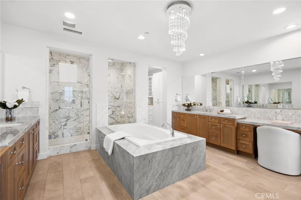 SELLER WANTS THIS HOME SOLD BY DECEMBER! This is your opportunity to own a Designer Perfect Home! Majestic views abound at this transitionally designed, sought-after Manhattan model residence in Hidden Canyon- one of the most notable upscale communities in Irvine with its limited number of meticulously designed estates renowned for its exclusivity and elevated standard of living. This chic residen...ce opens to a two story foyer with a dual grand staircase and just beyond, far reaching views of city lights, mountains and hillsides. Stunning features and amenities include an open plan design that allows flow from the formal living and dining rooms to the kitchen and family room, all of which open to the rear grounds via glass pocket doors for true California living. The well equipped chef’s kitchen houses a large center island and dining nook, prep area and walk-in pantry. The expansive outdoor space has a panoramic backdrop of forever views and features a built in bbq, loggias, and a sprawling lawn with tons of space for entertaining. Upstairs, the master bedroom is the ultimate retreat, with separate lounge area, enormous walk-in closet, and luxurious spa-like master bath, while four additional spacious bedrooms are en-suite. There is an additional en suite bedroom on the main level, making this home a unique six bedroom home. This this 24/7 guarded-gated community offers a resort style clubhouse with pool, spa, and playground to residents! Award-winning Irvine Unified School District and conveniently location close to Spectrum Center, Quail Hill Shopping Center, Laguna Beach or Newport Coast restaurants, shopping and more!