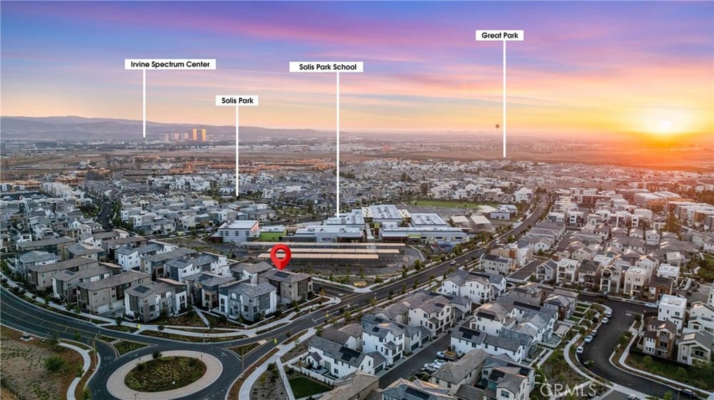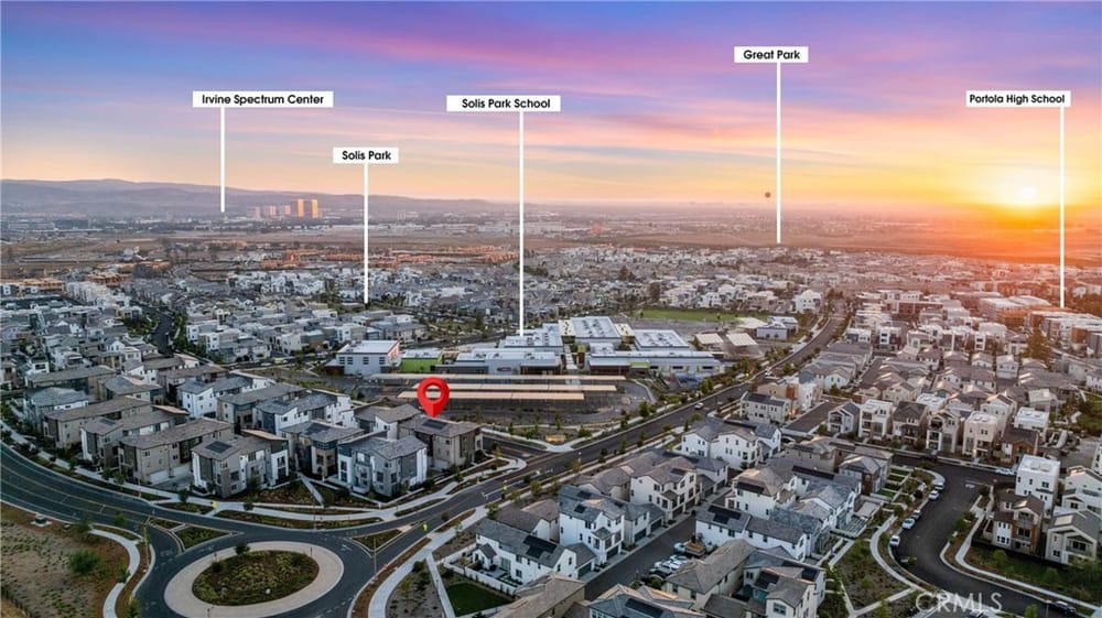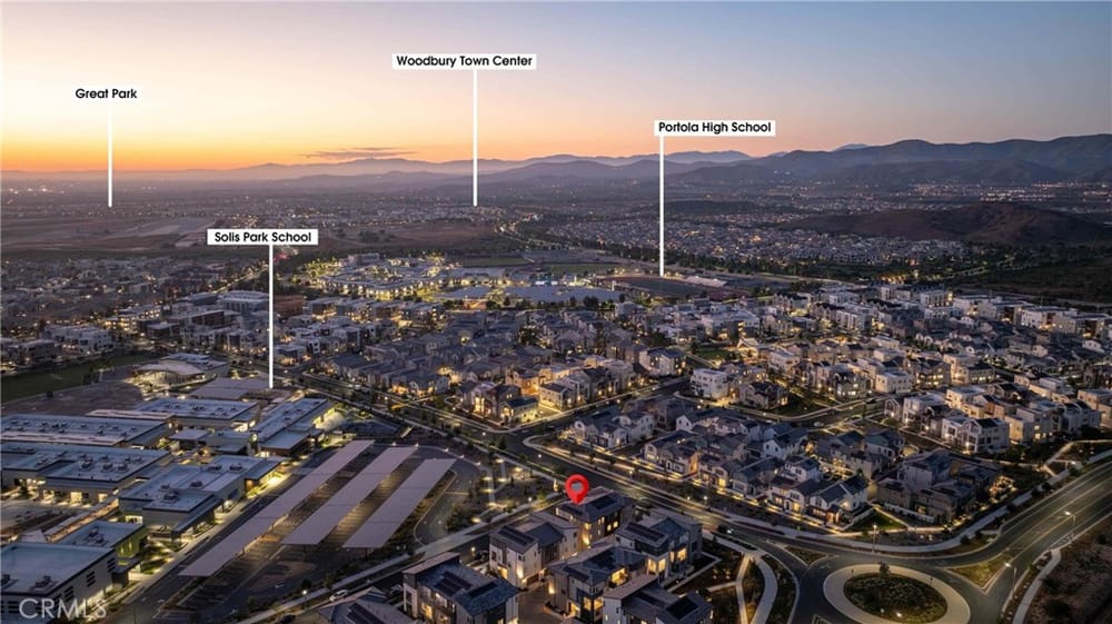 VERY RARE — a fantastic location with panoramic VIEWS of the CITY and MOUNTAINS. HALF minutes walking distance to new Solis park K8 school from north = easily see your kids playtime at school from home. 5 minutes walk to Portola High School. New built, Private INNER CORNER lot. UPGRADED STAIRS, FLOORS. Enjoy the stunning sunshine views of Great Park.This spacious 4 bedroom, 3.5 bath home in a fant...astic location in the celebrated Solis Park Community. Private Guest suite on the first floor. The cool, bright and airy second floor features an open living and kitchen area. Upgraded stairs and floors, offering both durability and timeless elegance to enhance your living space. Modern kitchen boasting sleek finishes quartz countertops, high-end appliances, a large island, and an ample storage. The spacious second-floor balcony offers a breathtaking panorama, with stunning views of the mountains and the city skyline at night. The third floor has three rooms—Master Bedroom has beautiful views features a spacious walk-in closet and a separate bathroom, providing both luxury and privacy for a truly comfortable retreat. The two other rooms on the other side. Side-by-side 2 car attached garage. Solar helps to cut down utility bills. New home warranty included by Lennar builder. Access to all amenities in Great Park including pools, parks and clubhouse.