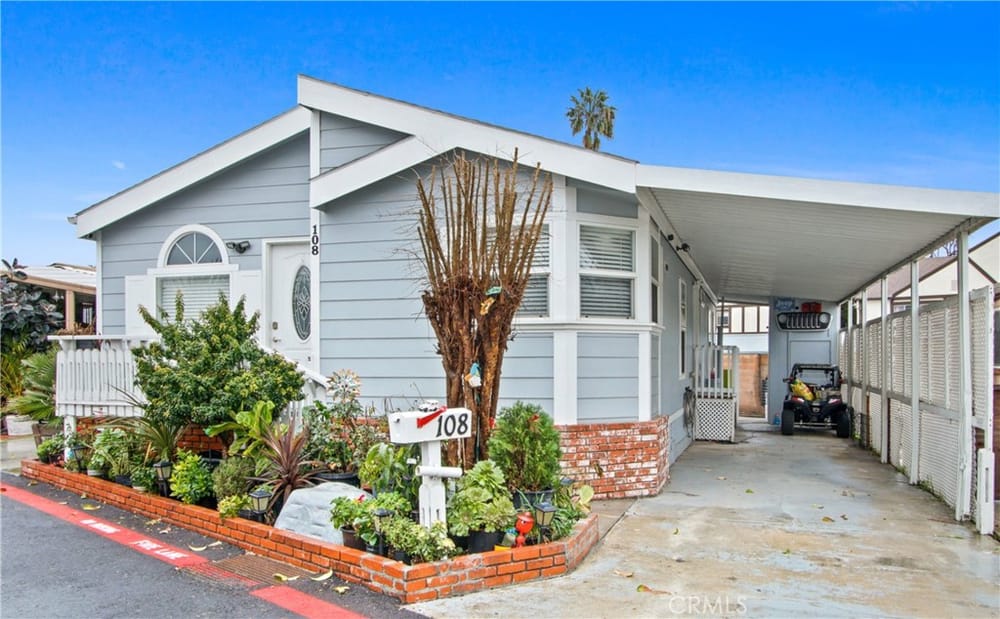 Welcome to Tustin Village Mobile Home Park. Beautiful, manufactured home located in a quiet community. This property features 3 bedrooms and 2 full baths in an open floor plan. The kitchen is open to the living room with enough room to entertain guest. The kitchen has stone countertops with sufficient counter cabinets space, large island and plank wood flooring throughout the home. The Skylight an...d vaulted ceilings bring natural light in the home. Spacious bedrooms, ceilings fans, recessed lighting. Carport with long driveway and storage shed. Front porch to sit back and relax and enjoy your cup of tea. Backyard has a cozy lovely private space for BBQ. This home it's located minutes away from parks, freeway 5-55, restaurants, etc. This home at this price won't last!!!