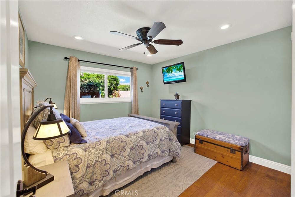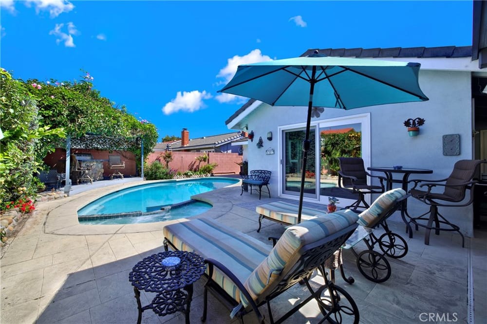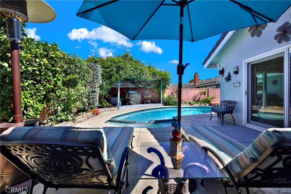 PRICE IMPROVEMENT & JR. ADU POTENTIAL! Front Primary Bedroom Has A Private Entrance & Full Bath Which Could Easily Become a Jr. ADU. Welcome to Your Dream Home in Meadow Homes Tract! Rarely On The Market -Exquisite Pool Home. A Rare Gem That Has Been Meticulously Cared for and Boasts a Multitude of Upgrades and Designer Touches With Elegant Double Front Doors. This One-Story Home Includes 3 Bedr...ooms, 2.5 Baths and a Versatile Den or 4th Bedroom Option. Ceramic Tile in a Versailles Pattern in the Dining Room, Kitchen, and Entryway, Complemented By Stunning Wood Flooring In Hallways, Guest Bedrooms & Den. Repainted Interior & Features Updated Windows, Sliding Glass Doors & Upgraded Insulation, Recessed Lighting & Hunter and Casablanca Ceiling Fans Throughout. Designer Sconces & Artwork Highlighting Lights in Living Room & Remodeled Remote Control Gas Fireplace. The Kitchen is a Chef’s Paradise! Complete Remodel with Chef Bayless Professional FIVESTAR Range, Panasonic Microwave, Granite Countertops, Custom Vent Hood, Hand-Blown Glass Hanging Bar Lights, Custom Backsplash of Glass & Slate Tile. Picturesque Bay Kitchen Window & Wall Pass-Through Window. Water Filter & Instant Hot Water. Under counter lighting. Ample Cabinet Storage Space in Kitchen & Hallway. Open Beam Ceiling Dining Room with Striking Red Back Wall Accent Color. Slat Blinds Add a Touch of Style and Functionality. The Den Includes Roman Shades, Updated Cabinetry, Shelving and Glass Doors. Feel the Breeze from the Beautiful Private Garden Area Right off the Primary Bedroom. Primary Bath Completely Remodeled, Whirlpool Tub in Shower, Marble Vanity, Porcelain Tile Floors, Hand-Forged Bath Tiles & Spacious Walk-In Closet with Storage Shelves. Guest Full Bath & Half Bath Have Been Updated with Shaker Cabinet Doors, High-End Mirrors, Tile Flooring, & Modern Fixtures. Slate Tile Roof, Driveway Tile Upgrades, Professional Front & Back Landscaping with Sprinkler Systems & Landscape Drains. New Solar Sidewalk Lighting. Pool & Spa Resurfaced & added Cooling Coating on Surrounding Deck. Entertain Guests on the Patio with New Alumiwood Patio Cover & New Porcelain Tile. Separate Small Covered Patio for Barbecue. Updated Garage Door, Floor Coating, Painted Walls, & Attic Storage with Pull-Down Stairwells & Flooring. Conveniently located near top-rated schools, parks, shopping, dining, freeway access, beach, theme parks & more. This Home Combines Luxury, Style & Functionality in a Tranquil Setting.