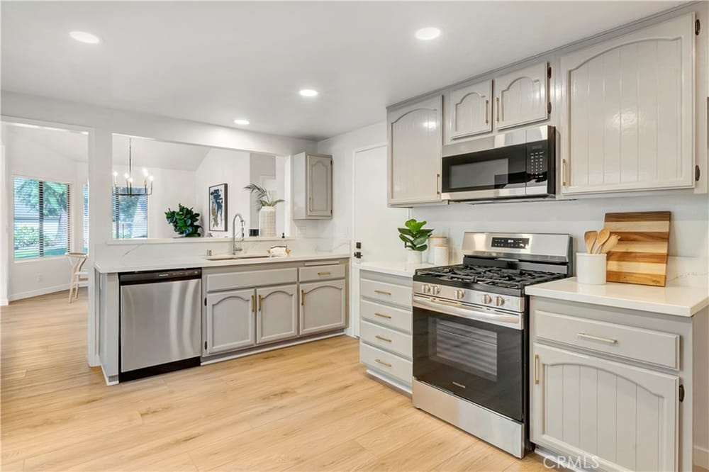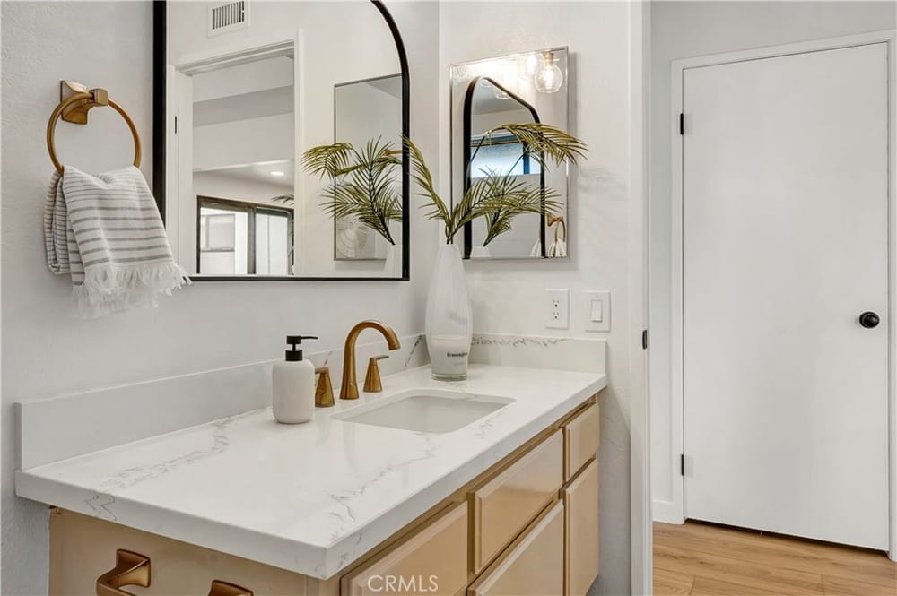 Completely updated single-story home two bed, two bath home in the highly desirable Shady Hollow Community. Spacious open floor plan with 1,425 square feet of living space and a 3,375 sq ft lot. This homes layout features a bedroom and bathroom on each side, giving the feel of two masters. Recently renovated with luxury vinyl flooring, custom quartz countertops, designer paint, designer light fix...tures & window treatments. The kitchen has a cozy breakfast nook and is open to the dining room with a bar top. The spacious family room features a gas fireplace with high ceilings. The spacious primary bedroom features loads of natural light, a large closet and opens into a private atrium.The en-suite bathroom has been updated with new quartz countertops& custom lighting. The second bedroom is also spacious and features a double closet. Walking distance to a community pool and spa with easy access to schools, shopping, grocery, and dining. Located on the border of Tustin and Santa Ana in a quiet neighborhood off the 55 and 5 freeways. Direct access Two-car garage with laundry hookups. Plenty of guest parking and low HOA. Close to Award winning schools, including Foothill High School.
