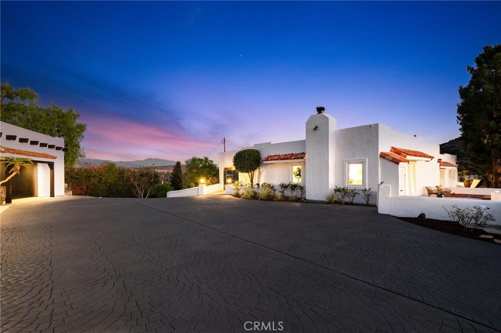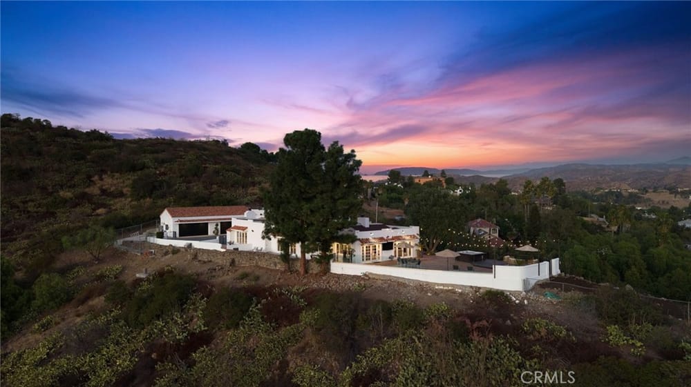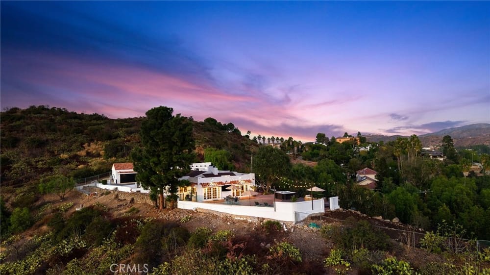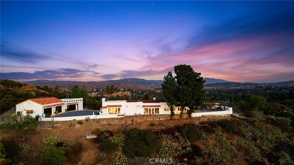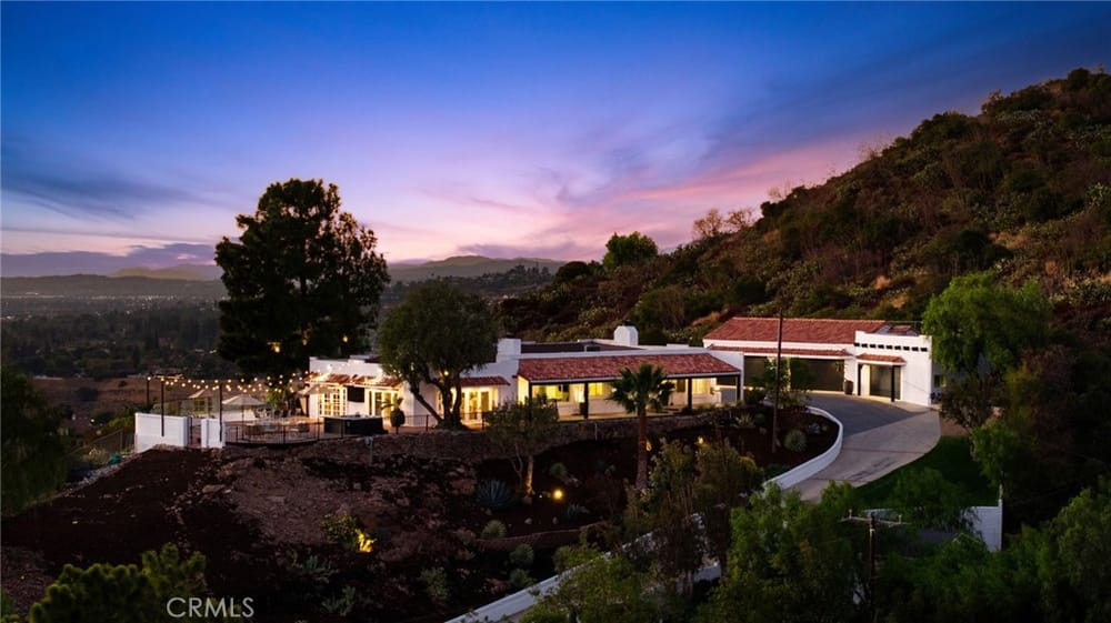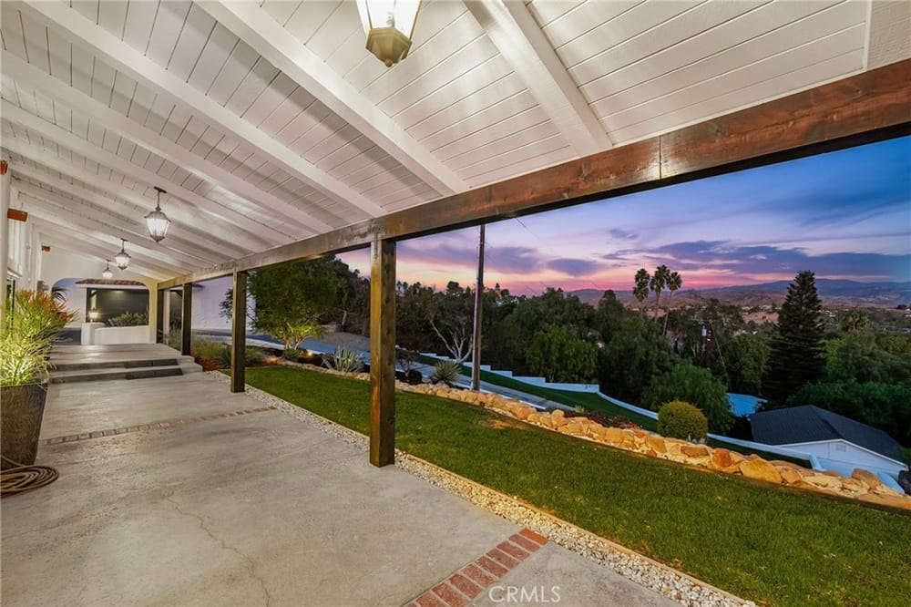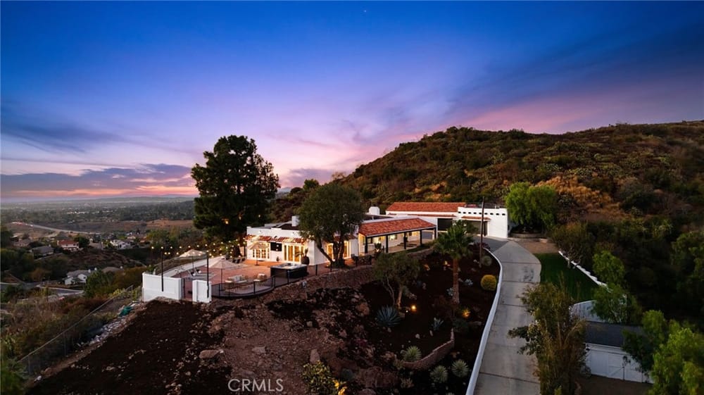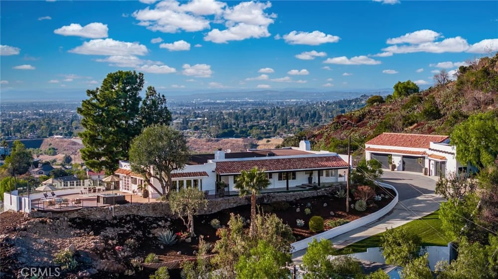 Welcome to an Idyllic California Spanish Style Estate with classic architectural charm and spectacular panoramic views! This sprawling home sits beyond automatic iron entry gates at the end of a beautiful meandering driveway. Surrounded by lush greenery, the single story Luxury home capitalizes on the extraordinary views from every room. Several of the spacious rooms offer French doors for easy in...door and outdoor living. At the center of the home is a gourmet kitchen with stone countertops, an island with bar seating, white cabinetry and opens up to the main living room with large windows. The spacious primary suite offers a walk in closet, a fireplace and a private patio. Some of the upgrades include new lighting, Ubiquiti camera system, Lutron smart switches, electric-powered window shades, and a reverse osmosis system. A fully paid-off solar system and low-maintenance professional landscaping provide energy savings and efficiency. Fresh new carpet and new paint make this home move-in ready. Outside, you will find multiple lounging and entertaining areas with elegant glass panel walls for protection. Spanish pavers, Saltio tile, expansive patios, decorative arches, and exposed wood beam details create the timeless Spanish style reminiscent of Santa Barbara living. An above-ground Cal Spa makes for the perfect spot to relax at the end of the day on a TREX deck with TVs and outdoor lighting for ambiance and tranquility. In addition to the main residence, the options are endless with a massive detached six car garage rebuilt with high ceilings, artistically designed with stacked stone, epoxy floors, custom bar with LED backlighting, quarts counter top, a sink and custom wall décor throughout. Other custom built features in this unique garage structure are an EV charger, new insulated garage doors, HVAC, new Patina ducting, laundry/storage room, water heater and a large high-end full bathroom with shower. Bring your car collection, toys, RV, or imagine an ADU. Beyond the garage there is also a detached structure that could be used for a barn, a yoga studio, an office, an art room, storage, or anything you need space for. Whether you're enjoying your mornings in privacy or spending your evenings gazing at the sunsets & Disneyland fireworks, this Private Mountain-Top Resort home brings the best of Orange Park Acres living to Life! With easy access to wonderful schools, shopping, horse and biking trails, parks, and major freeways, this location offers it all!
