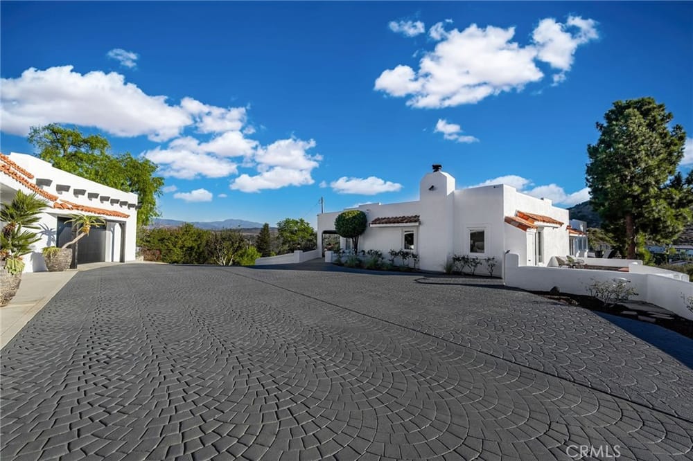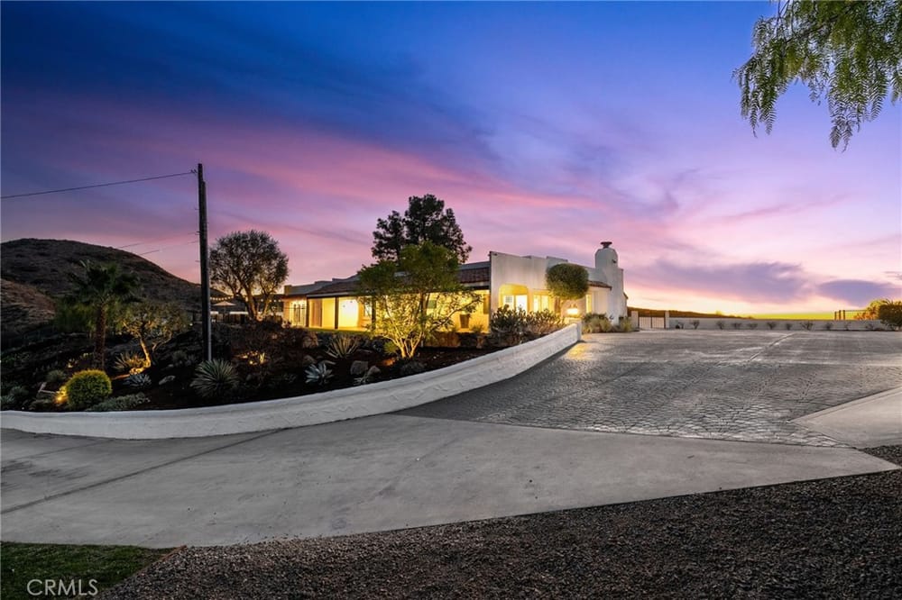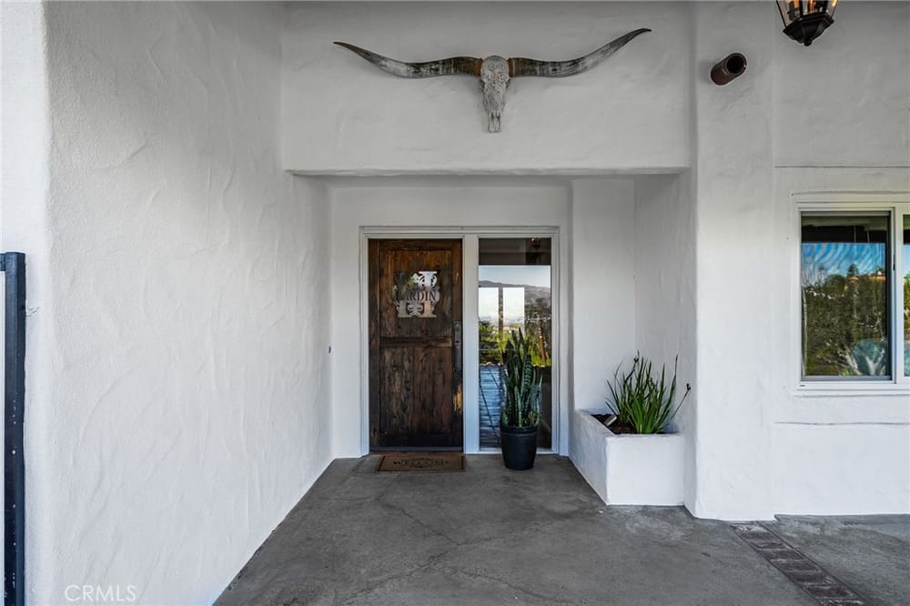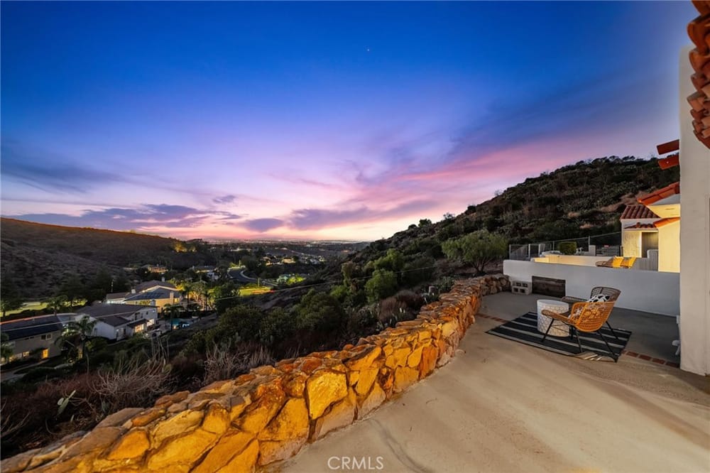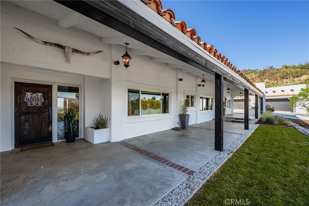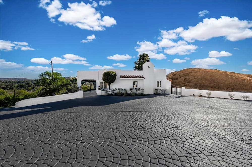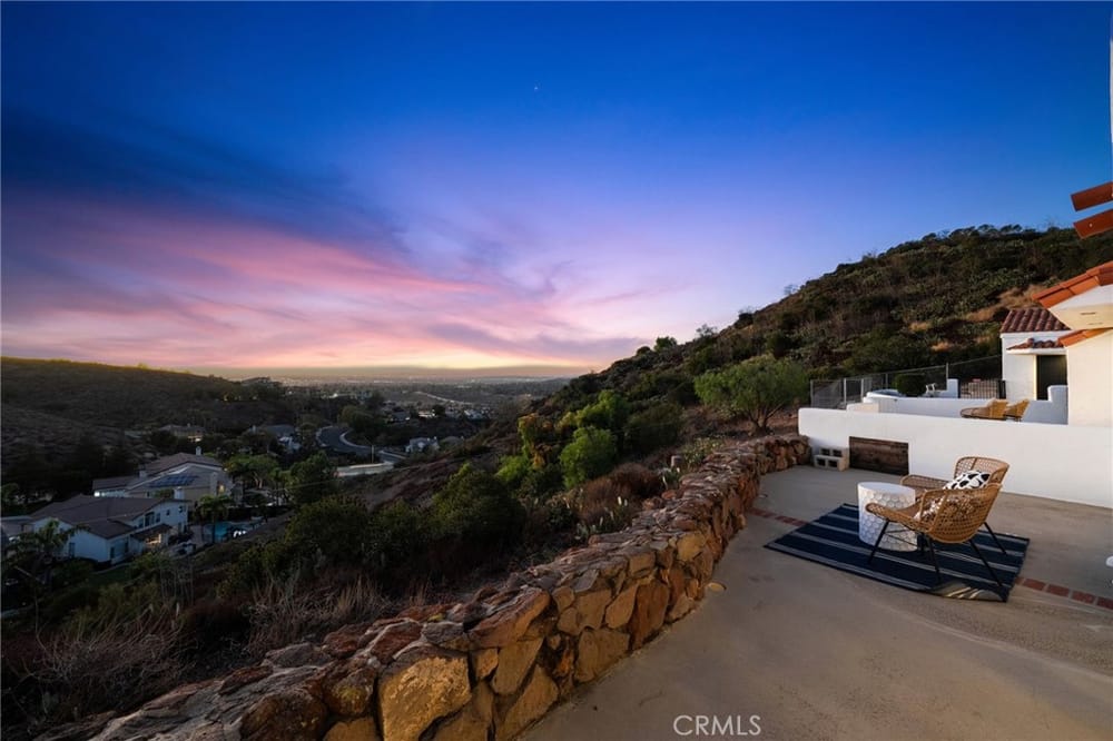 Welcome to an Idyllic California Spanish Style Estate with classic architectural charm and spectacular panoramic views! This sprawling home sits beyond automatic iron entry gates at the end of a beautiful meandering driveway. Surrounded by lush greenery, the single story Luxury home capitalizes on the extraordinary views from every room. Several of the spacious rooms offer French doors for easy in...door and outdoor living. At the center of the home is a gourmet kitchen with stone countertops, an island with bar seating, white cabinetry and opens up to the main living room with large windows. The spacious primary suite offers a walk in closet, a fireplace and a private patio. Some of the upgrades include new lighting, Ubiquiti camera system, Lutron smart switches, electric-powered window shades, and a reverse osmosis system. A fully paid-off solar system and low-maintenance professional landscaping provide energy savings and efficiency. Fresh new carpet and new paint make this home move-in ready. Outside, you will find multiple lounging and entertaining areas with elegant glass panel walls for protection. Spanish pavers, Saltio tile, expansive patios, decorative arches, and exposed wood beam details create the timeless Spanish style reminiscent of Santa Barbara living. An above-ground Cal Spa makes for the perfect spot to relax at the end of the day on a TREX deck with TVs and outdoor lighting for ambiance and tranquility. In addition to the main residence, the options are endless with a massive detached six car garage rebuilt with high ceilings, artistically designed with stacked stone, epoxy floors, custom bar with LED backlighting, quarts counter top, a sink and custom wall décor throughout. Other custom built features in this unique garage structure are an EV charger, new insulated garage doors, HVAC, new Patina ducting, laundry/storage room, water heater and a large high-end full bathroom with shower. Bring your car collection, toys, RV, or imagine an ADU. Beyond the garage there is also a detached structure that could be used for a barn, a yoga studio, an office, an art room, storage, or anything you need space for. Whether you're enjoying your mornings in privacy or spending your evenings gazing at the sunsets & Disneyland fireworks, this Private Mountain-Top Resort home brings the best of Orange Park Acres living to Life! With easy access to wonderful schools, shopping, horse and biking trails, parks, and major freeways, this location offers it all!