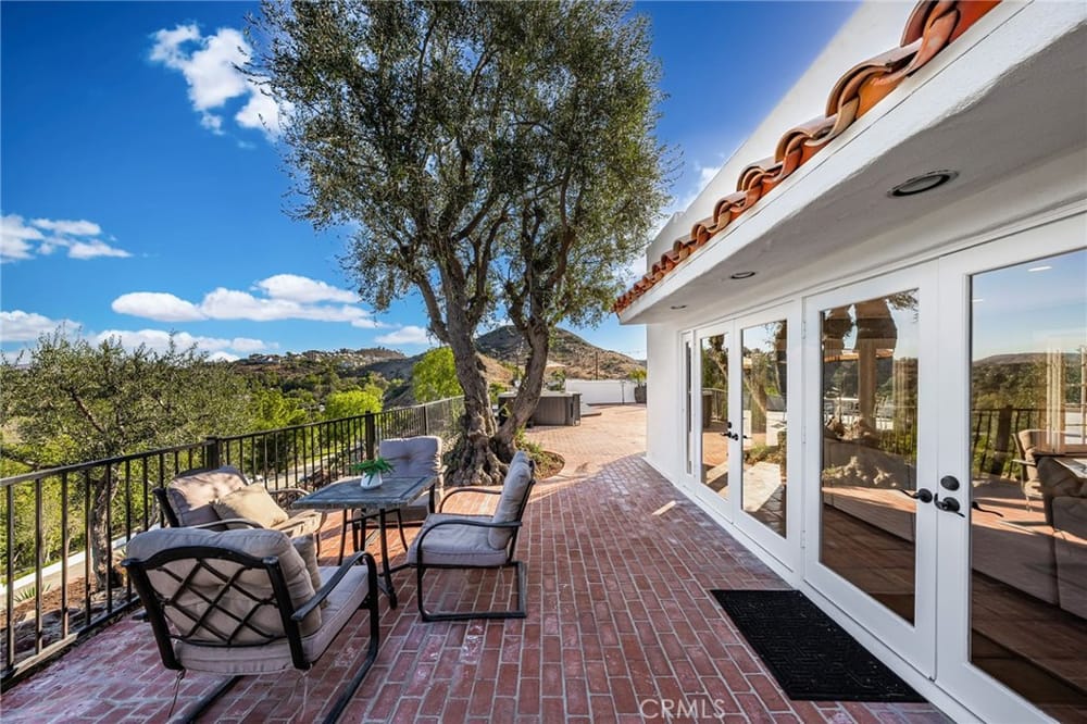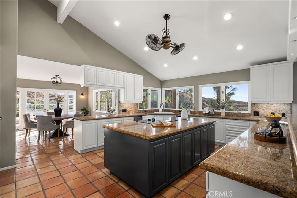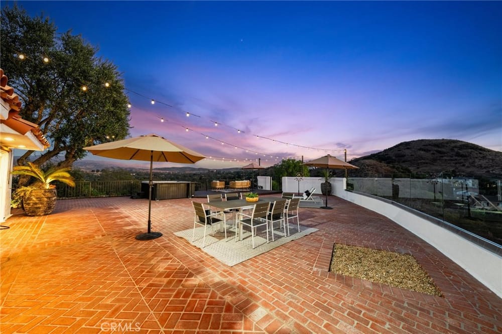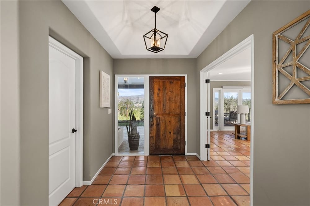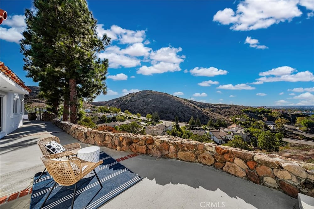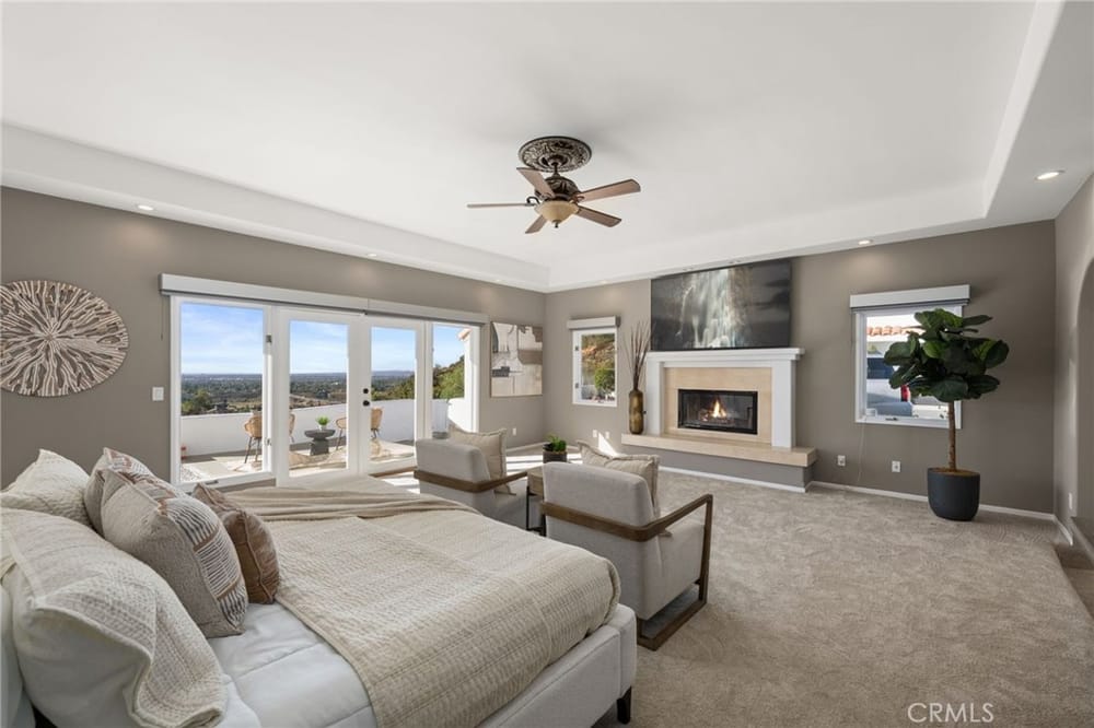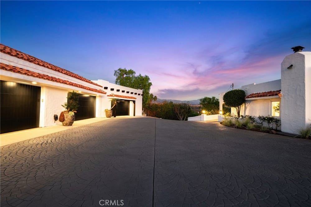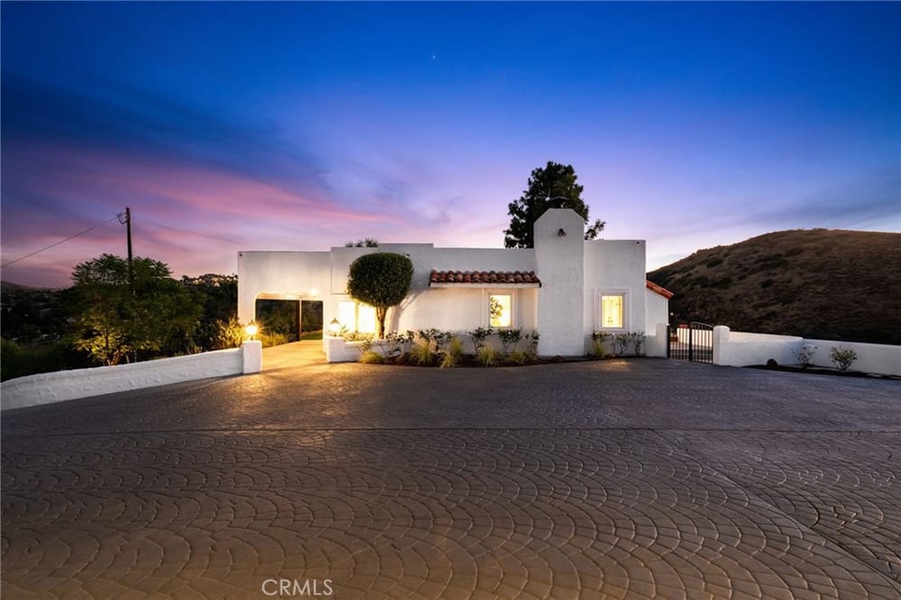 Welcome to an Idyllic California Spanish Style Estate with classic architectural charm and spectacular panoramic views! This sprawling home sits beyond automatic iron entry gates at the end of a beautiful meandering driveway. Surrounded by lush greenery, the single story Luxury home capitalizes on the extraordinary views from every room. Several of the spacious rooms offer French doors for easy in...door and outdoor living. At the center of the home is a gourmet kitchen with stone countertops, an island with bar seating, white cabinetry and opens up to the main living room with large windows. The spacious primary suite offers a walk in closet, a fireplace and a private patio. Some of the upgrades include new lighting, Ubiquiti camera system, Lutron smart switches, electric-powered window shades, and a reverse osmosis system. A fully paid-off solar system and low-maintenance professional landscaping provide energy savings and efficiency. Fresh new carpet and new paint make this home move-in ready. Outside, you will find multiple lounging and entertaining areas with elegant glass panel walls for protection. Spanish pavers, Saltio tile, expansive patios, decorative arches, and exposed wood beam details create the timeless Spanish style reminiscent of Santa Barbara living. An above-ground Cal Spa makes for the perfect spot to relax at the end of the day on a TREX deck with TVs and outdoor lighting for ambiance and tranquility. In addition to the main residence, the options are endless with a massive detached six car garage rebuilt with high ceilings, artistically designed with stacked stone, epoxy floors, custom bar with LED backlighting, quarts counter top, a sink and custom wall décor throughout. Other custom built features in this unique garage structure are an EV charger, new insulated garage doors, HVAC, new Patina ducting, laundry/storage room, water heater and a large high-end full bathroom with shower. Bring your car collection, toys, RV, or imagine an ADU. Beyond the garage there is also a detached structure that could be used for a barn, a yoga studio, an office, an art room, storage, or anything you need space for. Whether you're enjoying your mornings in privacy or spending your evenings gazing at the sunsets & Disneyland fireworks, this Private Mountain-Top Resort home brings the best of Orange Park Acres living to Life! With easy access to wonderful schools, shopping, horse and biking trails, parks, and major freeways, this location offers it all!