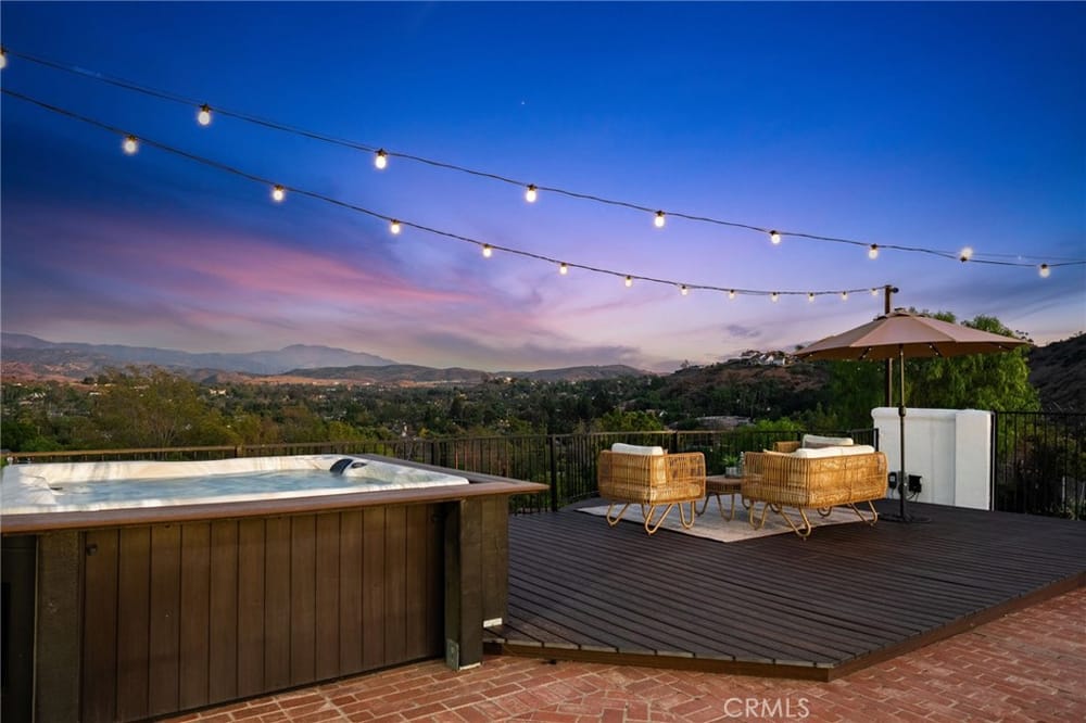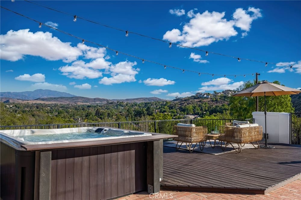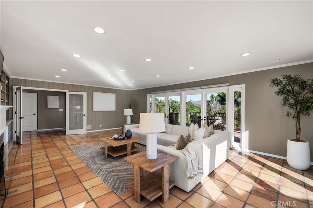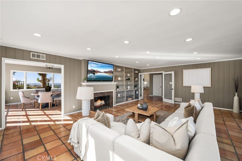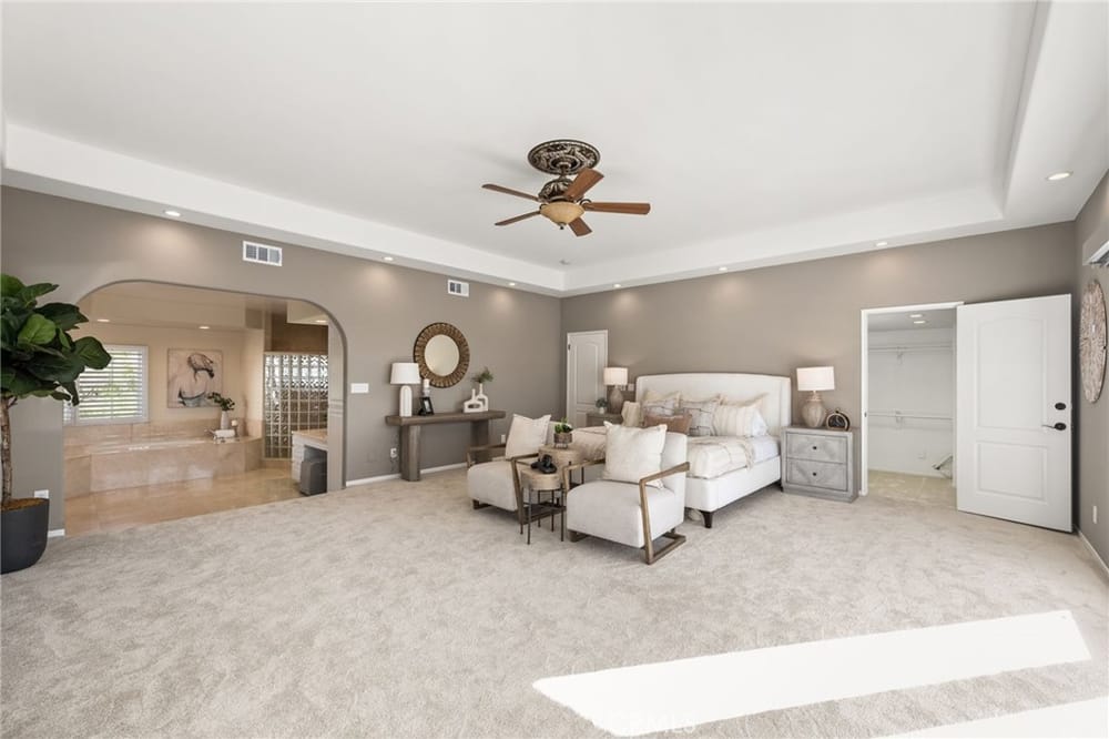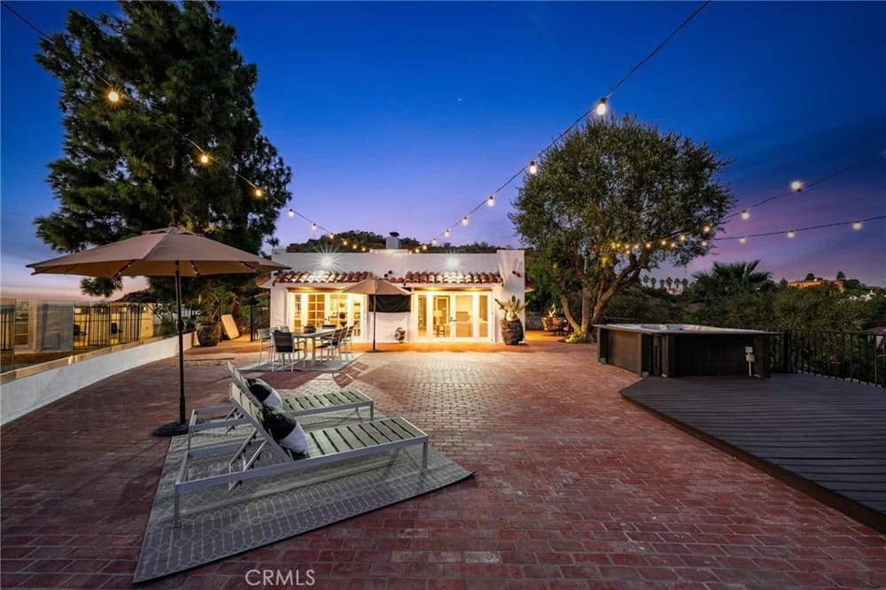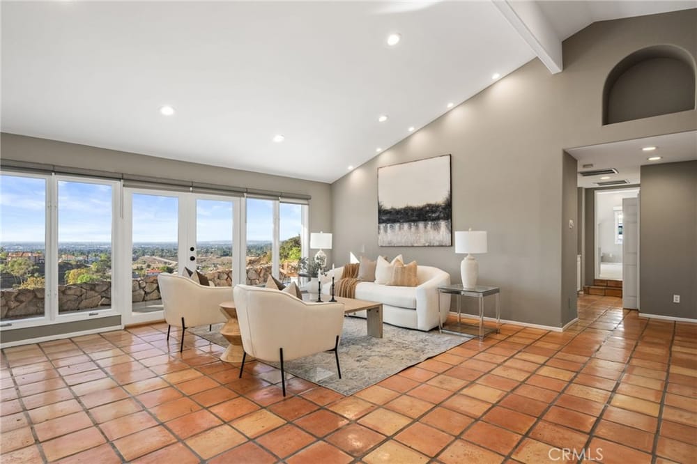 Welcome to an Idyllic California Spanish Style Estate with classic architectural charm and spectacular panoramic views! This sprawling home sits beyond automatic iron entry gates at the end of a beautiful meandering driveway. Surrounded by lush greenery, the single story Luxury home capitalizes on the extraordinary views from every room. Several of the spacious rooms offer French doors for easy in...door and outdoor living. At the center of the home is a gourmet kitchen with stone countertops, an island with bar seating, white cabinetry and opens up to the main living room with large windows. The spacious primary suite offers a walk in closet, a fireplace and a private patio. Some of the upgrades include new lighting, Ubiquiti camera system, Lutron smart switches, electric-powered window shades, and a reverse osmosis system. A fully paid-off solar system and low-maintenance professional landscaping provide energy savings and efficiency. Fresh new carpet and new paint make this home move-in ready. Outside, you will find multiple lounging and entertaining areas with elegant glass panel walls for protection. Spanish pavers, Saltio tile, expansive patios, decorative arches, and exposed wood beam details create the timeless Spanish style reminiscent of Santa Barbara living. An above-ground Cal Spa makes for the perfect spot to relax at the end of the day on a TREX deck with TVs and outdoor lighting for ambiance and tranquility. In addition to the main residence, the options are endless with a massive detached six car garage rebuilt with high ceilings, artistically designed with stacked stone, epoxy floors, custom bar with LED backlighting, quarts counter top, a sink and custom wall décor throughout. Other custom built features in this unique garage structure are an EV charger, new insulated garage doors, HVAC, new Patina ducting, laundry/storage room, water heater and a large high-end full bathroom with shower. Bring your car collection, toys, RV, or imagine an ADU. Beyond the garage there is also a detached structure that could be used for a barn, a yoga studio, an office, an art room, storage, or anything you need space for. Whether you're enjoying your mornings in privacy or spending your evenings gazing at the sunsets & Disneyland fireworks, this Private Mountain-Top Resort home brings the best of Orange Park Acres living to Life! With easy access to wonderful schools, shopping, horse and biking trails, parks, and major freeways, this location offers it all!