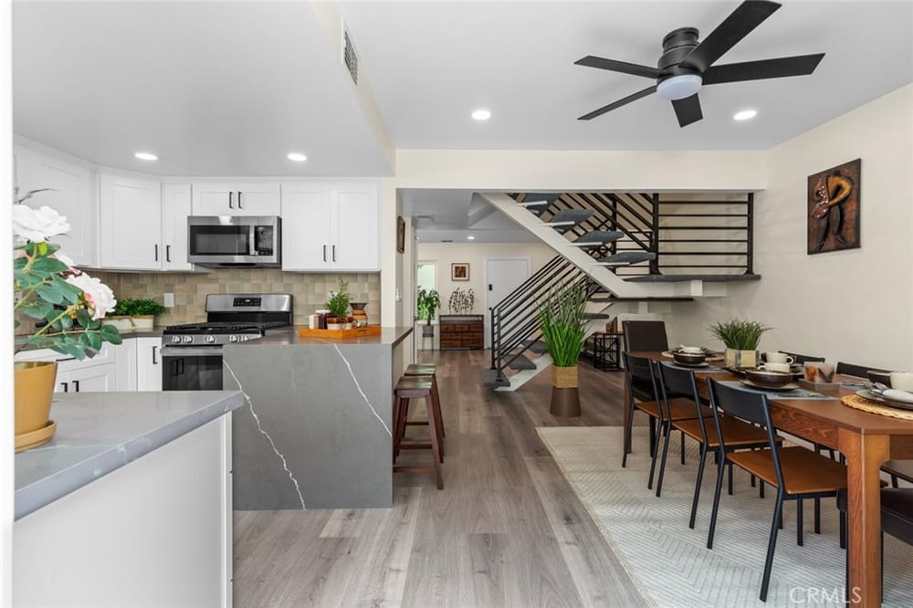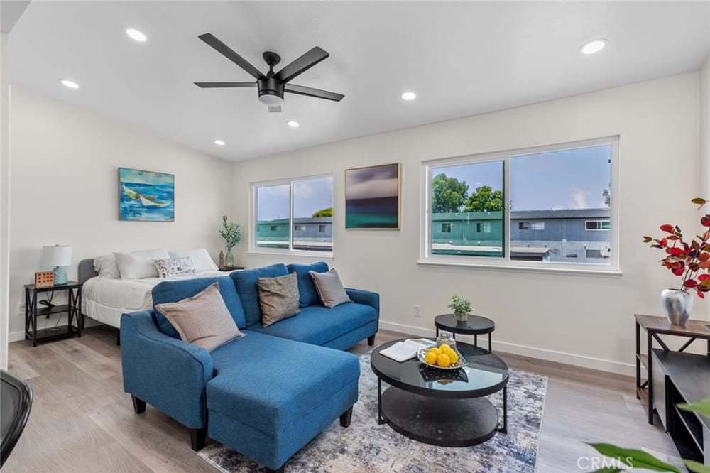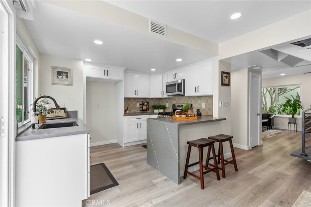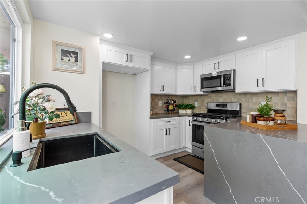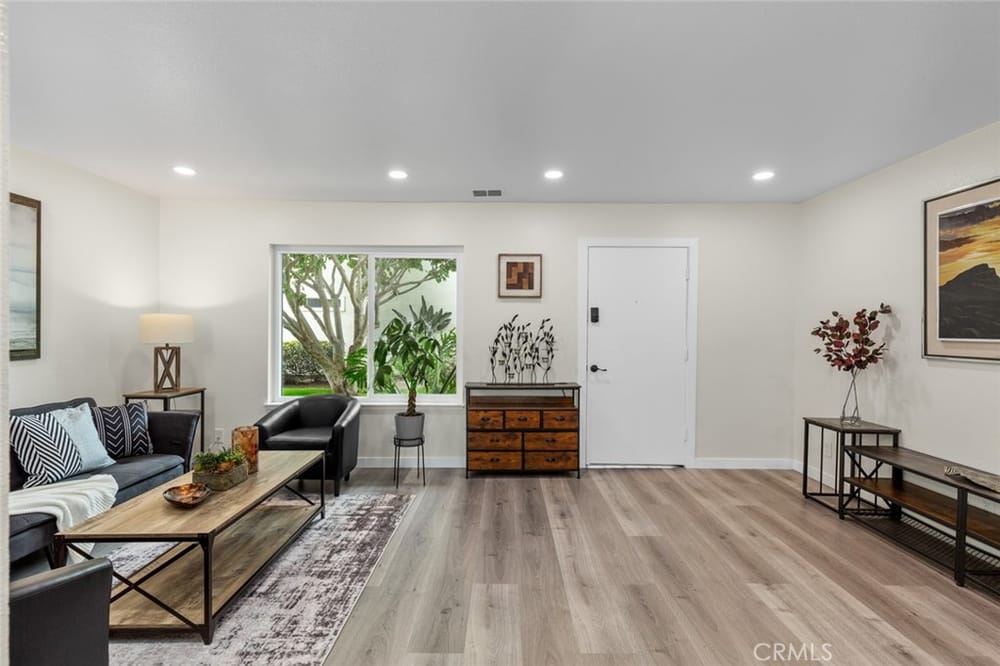In Fountain Valley stands a newly remodeled three-bedroom townhouse. This residence reveals its secrets, offering not only optional rooms but also an additional gem—a separate one-bedroom, one-bath rental unit, ready to extend its warmth and hospitality while providing additional income. Enhancing beauty and value are new neutral paint throughout, recessed lighting, and an inviting living area wit...h plantation shutters. The remodeled kitchen boasts quartz countertops, a breakfast bar, and new stainless steel appliances, including a refrigerator, built-in microwave, stainless gas range, dishwasher, and a single-basin sink. Adjacent to the kitchen is a cozy dining alcove. The main floor bath heightens the excitement with new quartz counters, modern fixtures, a stylish mirror, and designer lighting. Luxury vinyl floors ensure ease of maintenance. Ascending the newly crafted staircase leads to the private quarters. Here, beauty meets comfort in the Queen’s lair, featuring an ensuite bath with dual vanities and a walk-in closet with built-in drawers. Two secondary bedrooms and another bath with a tub/shower combination add to the charm of this desirable residence. The Paradise Manor community is centrally located, close to shops, restaurants, health clubs, and two golf courses, as well as Mile Square Park, and offers easy access to the 405 freeway. Good fortune follows those who earn it. Welcome home.