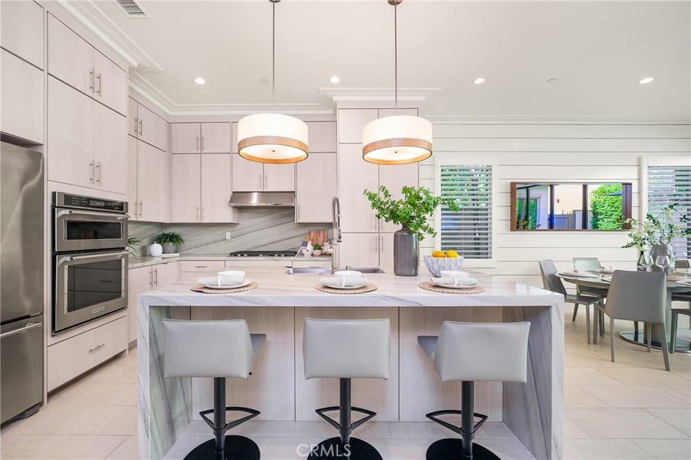 Discover the epitome of luxury living in this stunning FORMER MODEL HOME located in the exclusive Reserve Orchard Hills community of Irvine. With elegance at every turn, this residence features a well-designed floor plan that combines convenience and sophistication. The master bedroom and office are thoughtfully placed on the main level for easy access, while two private bedrooms upstairs provide ...ample space for family or guests.Step inside to a world of high-end finishes, where the main level showcases elegant limestone flooring and a designer kitchen outfitted with Quartz countertops, a waterfall-edge island, upgraded Metro Oregon Pine cabinetry, and sleek pendant lighting—ideal for any culinary enthusiast. The master bathroom invites you to unwind in style, featuring a luxurious soaking tub, dual sinks, an upgraded shower, and a custom walk-in closet. Main floor Office is easy to convert to 4th bedroom.The backyard offers the perfect retreat for outdoor entertaining, complete with a built-in BBQ, pizza oven, fire pit, and a serene ambiance under the stars. Additional highlights include a soft water system, barn doors, custom window treatments, and a garage with built-in cabinetry and epoxy flooring.Residents of this prestigious community enjoy access to resort-style amenities, including two pools, a clubhouse, playgrounds, and sports courts. Plus, the home feeds into the award-winning Irvine Unified School District, including Canyon View Elementary and Northwood High School.This is a rare opportunity to own a home that perfectly balances luxury, comfort, and convenience. Don't miss your chance to experience it for yourself—this property is a must-see!