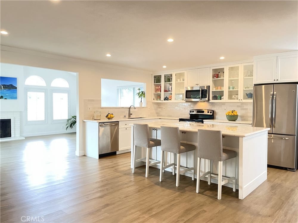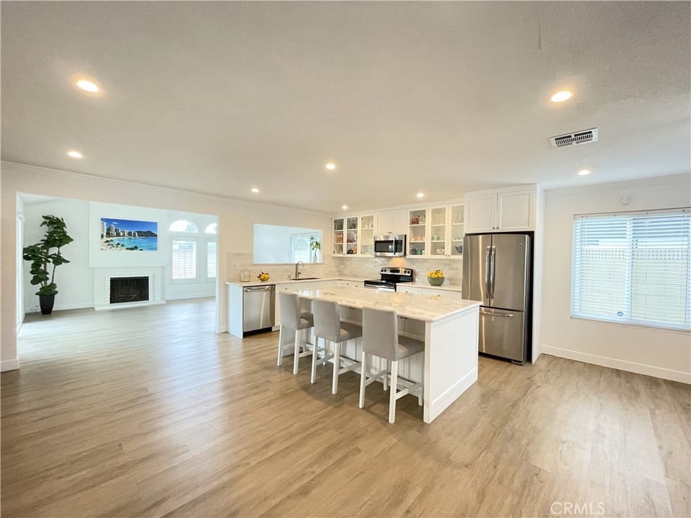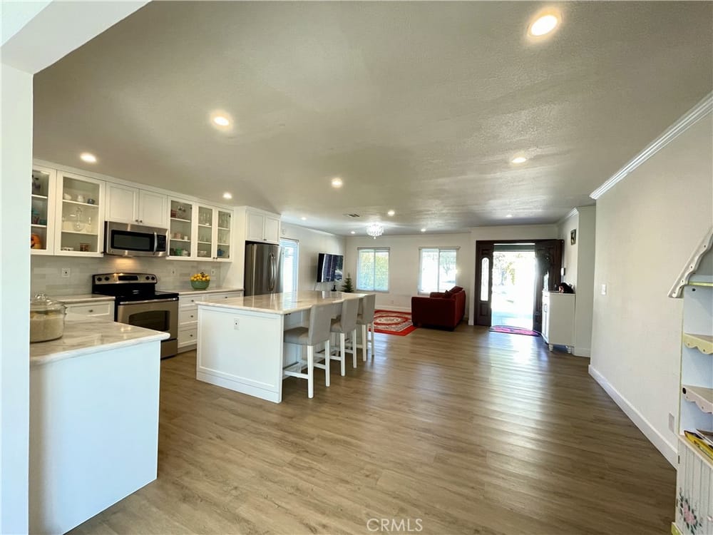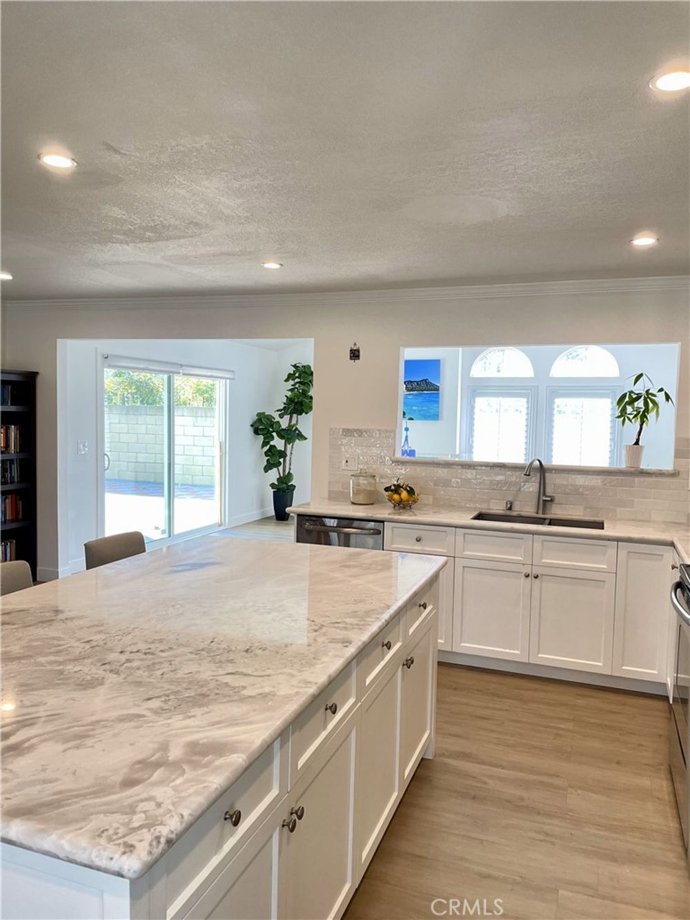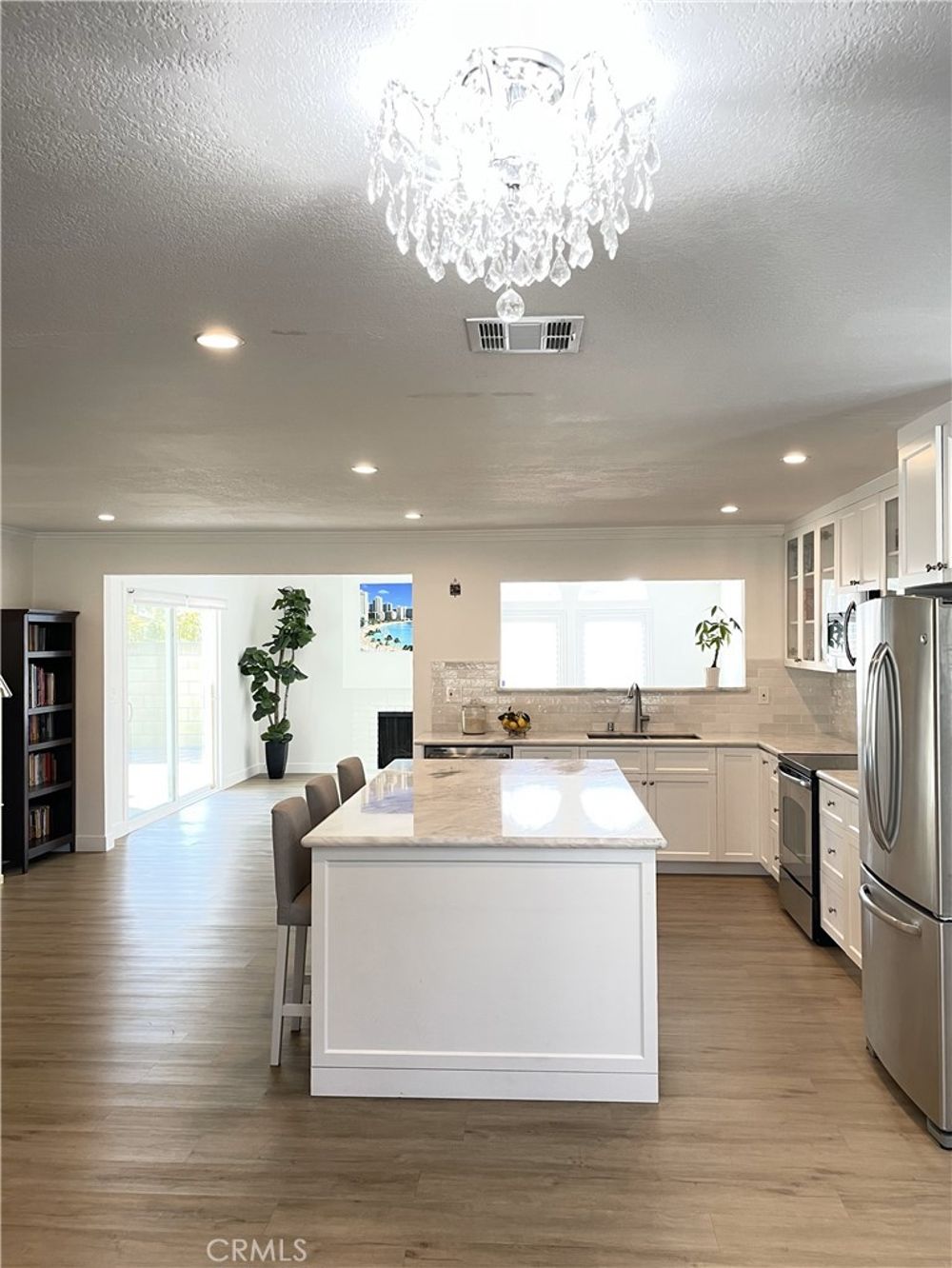 OPPORTUNITY KNOCKS!!! Nestled in this Prime Location of Cerritos with its well-manicured homes and tree lined streets, this Fabulous home boasts both tasteful updates and meticulous attention to detail. The home was extensively remodeled as recently as 2022. Highlights of the Master Bedroom and Bath include an Oversized bathtub with nook, Two Custom Vanities with Natural Quartzite Countertops f...rom South Africa and crystal drawer knobs, Italian Marble Vessel Sink, CB2 Marble sconce lighting, Maria Theresa Chandelier, Oversized Walk-in Closet. The Hallway Bath features Rain shower faucet, Marble Vanity Countertop, Oversized Tiles throughout. Enjoy cooking in the kitchen with its oversized island and surrounding countertops of Natural Quartzite from South Africa, KWC Faucet, Custom kitchen cabinets with glass features for the displaying of fine china or for the avid decorator's creative imagination, as well as extra backsplash throughout the countertops and sink area. The kitchen opens up to the Living room, creating a greater sense of space while promoting intimacy with family members or guests. The living room is also tastefully topped off with a Maria Theresa Chandelier and recessed lighting. The family room exhibits high ceilings, a fireplace. Mandalay style window shutters. Located in the highly sought after ABC School district. Conveniently close to Restaurants, Shopping centers.