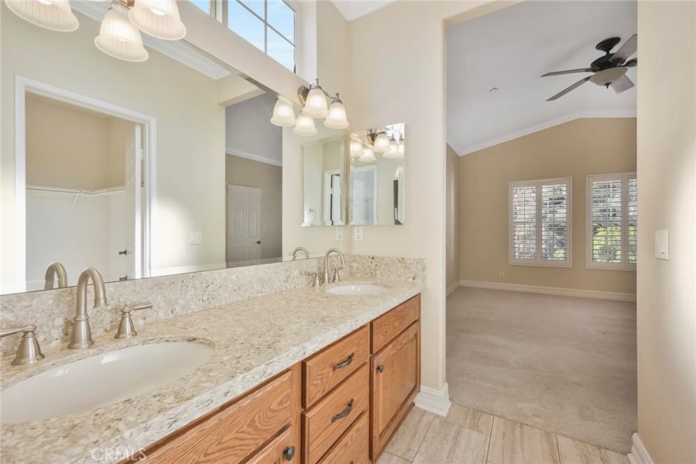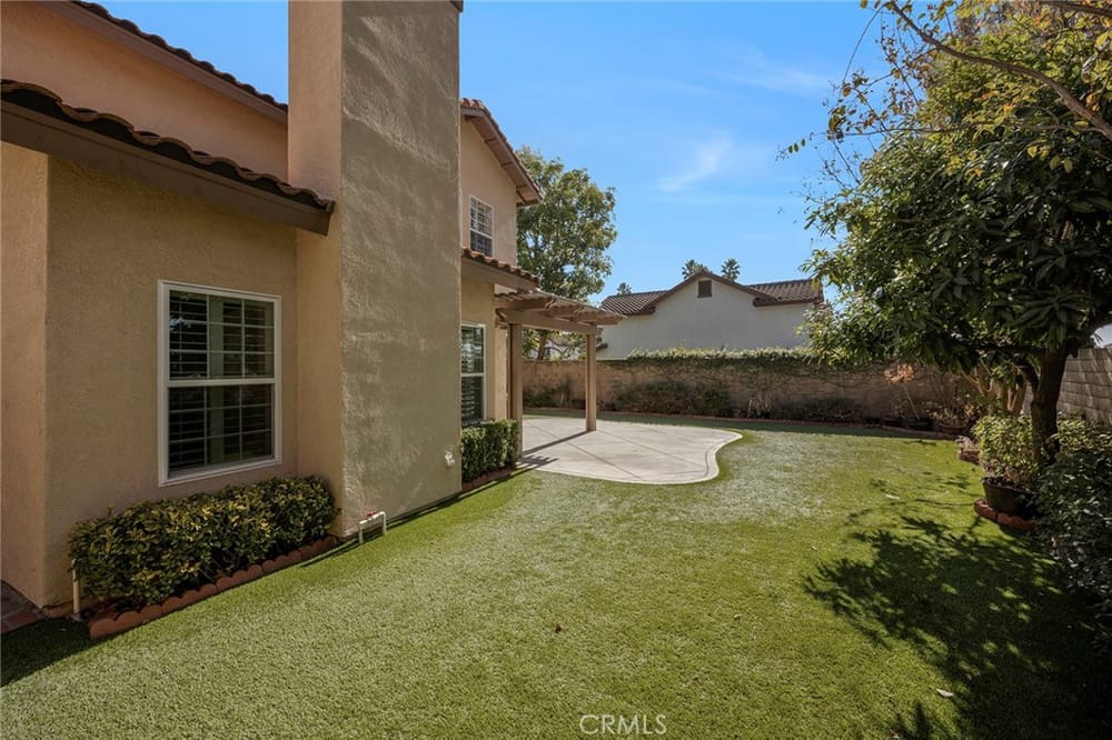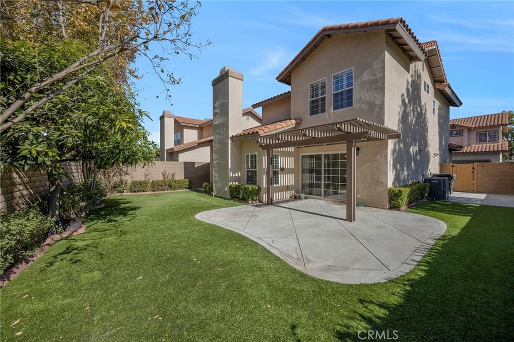 Welcome to 1131 Via Palma located in the lovely Las Brisas community of Placentia. Not only is this 3 bedroom 2 and a half bathroom home one of the very few DETACHED homes in the community it also offers a highly desirable end of cul-de-sac location. It features a 2 car attached garage with room for storage. Step inside to find a separate dining room and family room with tile flooring, a beautifu...l brick fireplace and plantation shutters. Just off the dining area, step outside into your large, private backyard with covered, concrete patio, low maintenance artificial turf and 2 large side yards-great for a barbequing and extra storage. Walk upstairs to the three spacious bedrooms. Upstairs bathrooms have updated flooring and countertops. The primary bedroom offers a walk in closet and beautiful tree and peek a boo views of the Alta Vista golf course. The primary bath offers dual sinks, shower and a private toilet area. This community offers very low HOA dues and many amenities including a well maintained pool/spa and the potential for RV parking. The Las Brisas community is located in the award-winning PYLUSD and close to shopping centers.