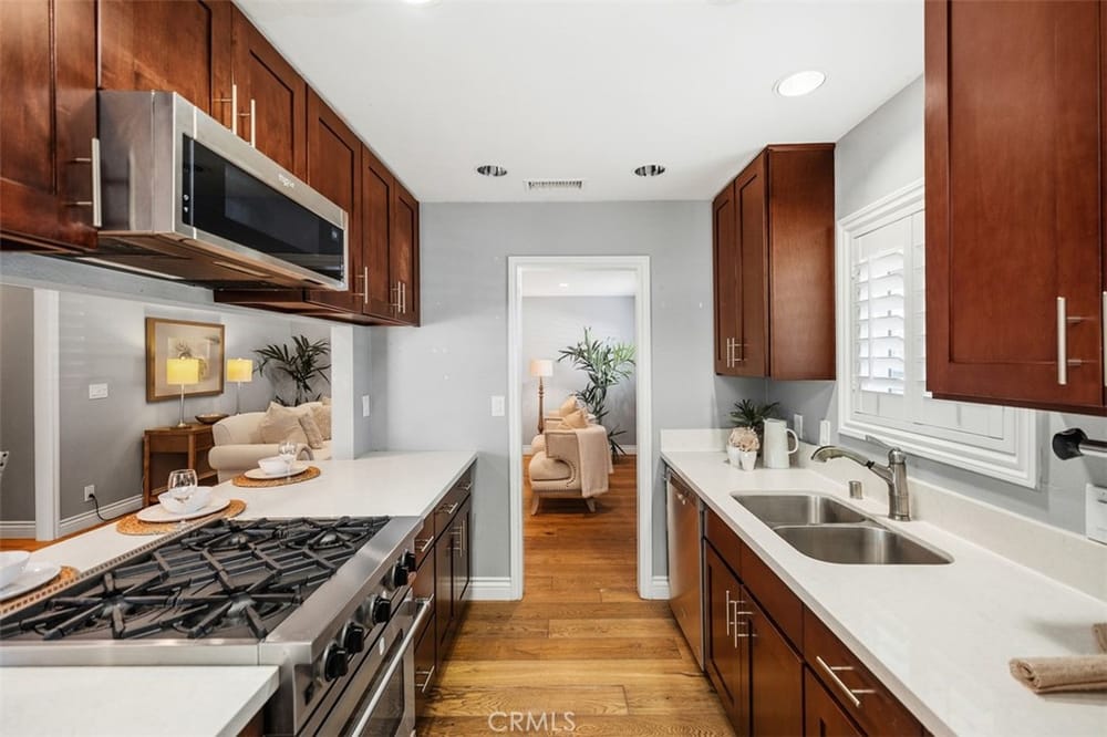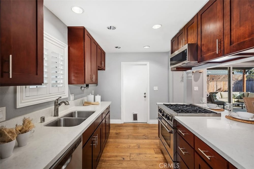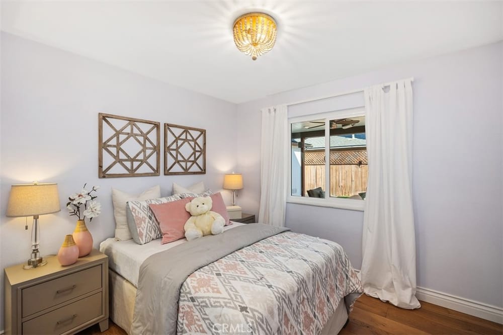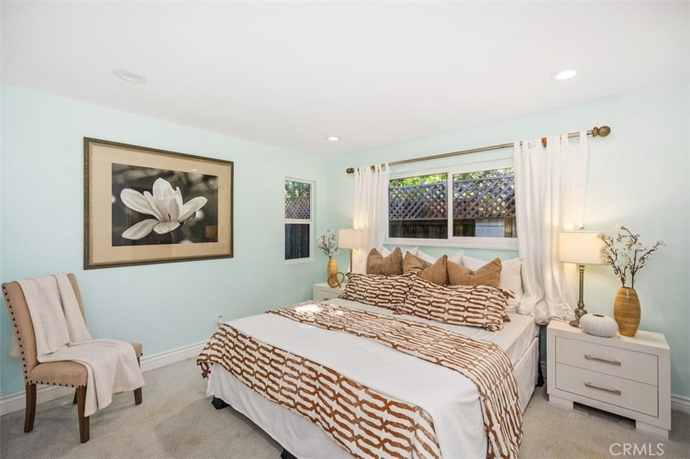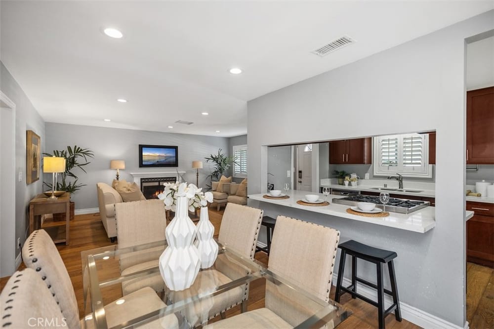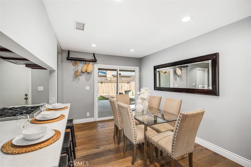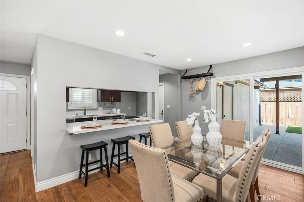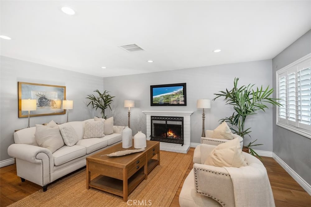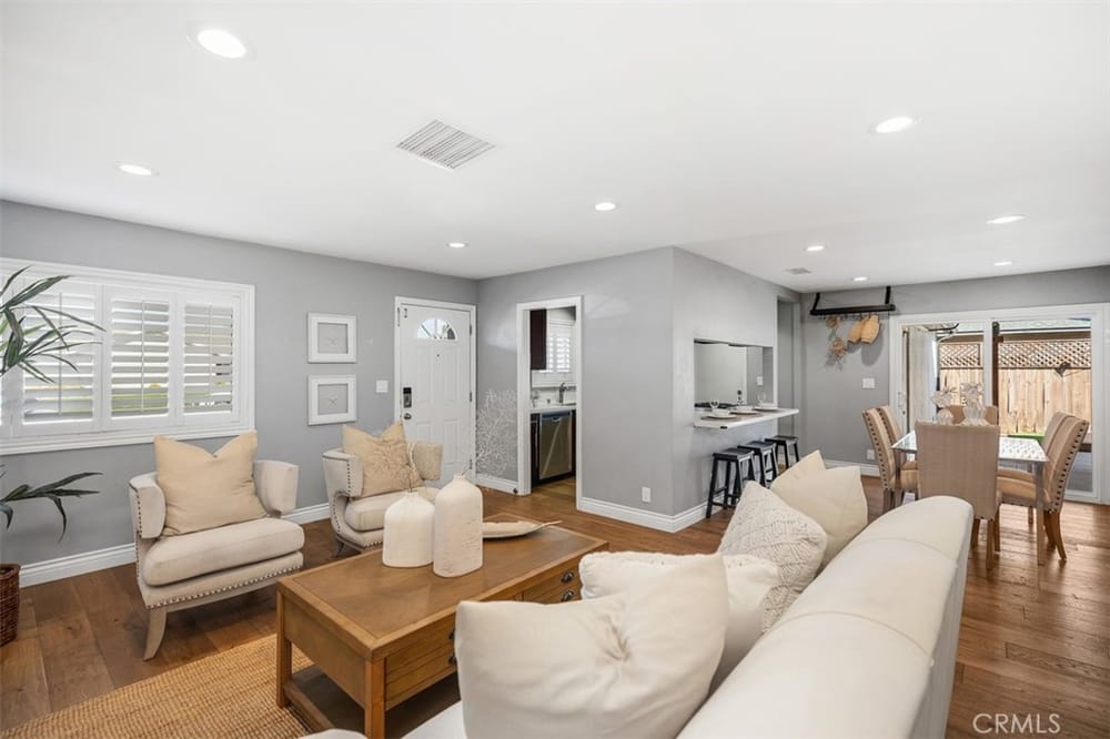 Opportunity Knocks! Own a stunning single-story detached home in a prime location. This beautifully updated home offers an open floor plan, perfect for modern living. The remodeled kitchen shines with quartz countertops, rich dark-stained cabinets, stainless steel appliances, and a spacious dining area ideal for gatherings. The inviting living room boasts a cozy brick fireplace. Four generously si...zed bedrooms and two updated bathrooms provide comfort for all. There is stunning wood flooring throughout the main areas and carpeting in the bedrooms. Enjoy the convenience of dual-pane vinyl windows, recessed lighting, and modern climate control with a Nest thermostat managing the newer AC and furnace. The backyard is an entertainer’s dream, featuring a paved, covered patio with ceiling fans and premium turf for relaxation or play. Additional perks include a Tesla solar system (transferable or removable) and a location that can’t be beaten—minutes from golf courses, trails, beaches, South Coast Plaza, top dining, and shopping. Easy access to the 405, 55, and 73 freeways makes commuting a breeze. Don’t miss this gem—schedule your showing today!