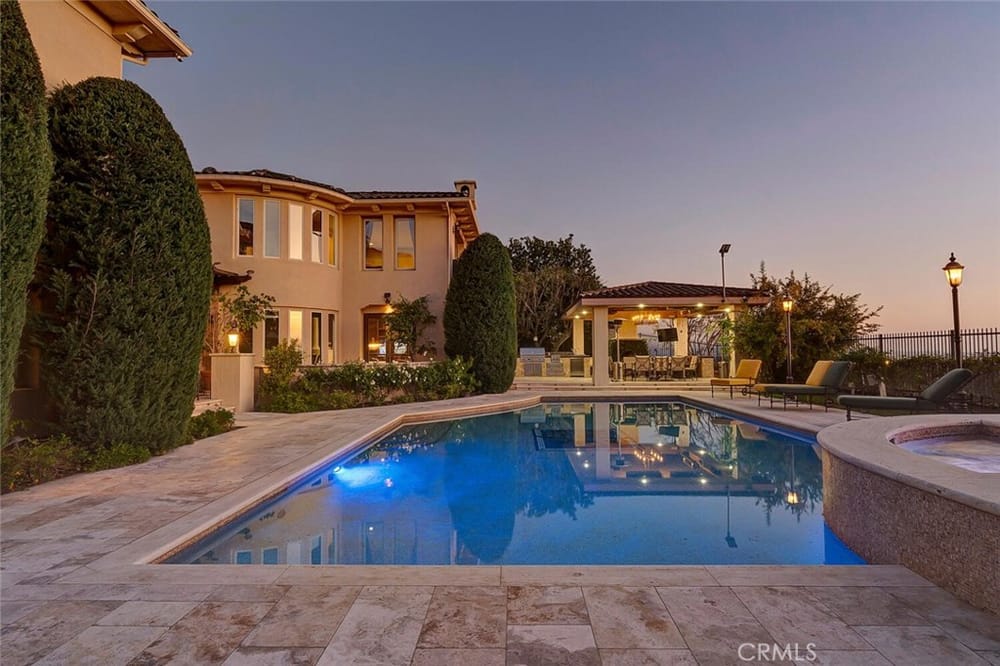 Welcome to 11755 Collar Ave. This luxurious oasis is nestled in one of the most coveted locations within the prestigious 24-hour guard-gated community of Tustin Ranch Estates. This stunning 5,900+ sq. ft. residence offers breathtaking views, mesmerizing sunsets, and picturesque vistas of Catalina Island, all from a peaceful, single-loaded cul-de-sac street. Situated on a sprawling 16,000 sq. ft. l...ot, the home boasts a seamless blend of elegance and privacy. With its spacious layout, upscale finishes, dual staircase, and panoramic surroundings, this estate invites you to experience an unparalleled lifestyle of comfort and sophistication. This former builder’s model home was thoughtfully designed with premium upgrades, offering a luxurious yet comfortable living space. Every detail has been meticulously crafted to elevate the home's elegance, from high-end finishes to custom features, providing an exceptional blend of style and functionality. Whether enjoying the expansive indoor areas or the breathtaking outdoor views, this home delivers an unparalleled living experience. The kitchen is a chef's dream, featuring custom-made cabinetry and ample storage. Equipped with a double oven, built-in refrigerator, and a 6-burner cooktop, this space is designed for both cooking and entertaining with ease. On the first floor, you'll find a primary en-suite, a formal study with a fireplace, a bright family room, a breakfast nook, and a formal living room with an astonishing wood-carved fireplace and cathedral ceilings. A formal dining room and a bar enhance the home's entertainment capabilities. The master suite on the second floor boasts its own viewing balcony, offering stunning ocean and city views. 3 additional en-suite bedrooms & a large playroom cater to the needs of the whole family. The mature front & rear gardens offer a year-round spring-like atmosphere. Additional amenities include a covered patio with stone fireplace, overhead heaters, a ceramic-tiled swimming pool, hot spa, and a fully equipped BBQ area offering a massive grill. The long driveway provides parking for multiple cars. The gold-ribbon award-winning schools, world-class dining and shopping, John Wayne Airport, and freeways are all in close proximity.