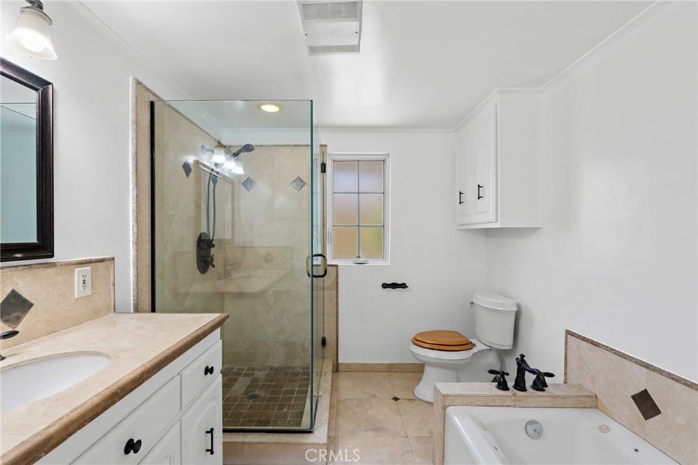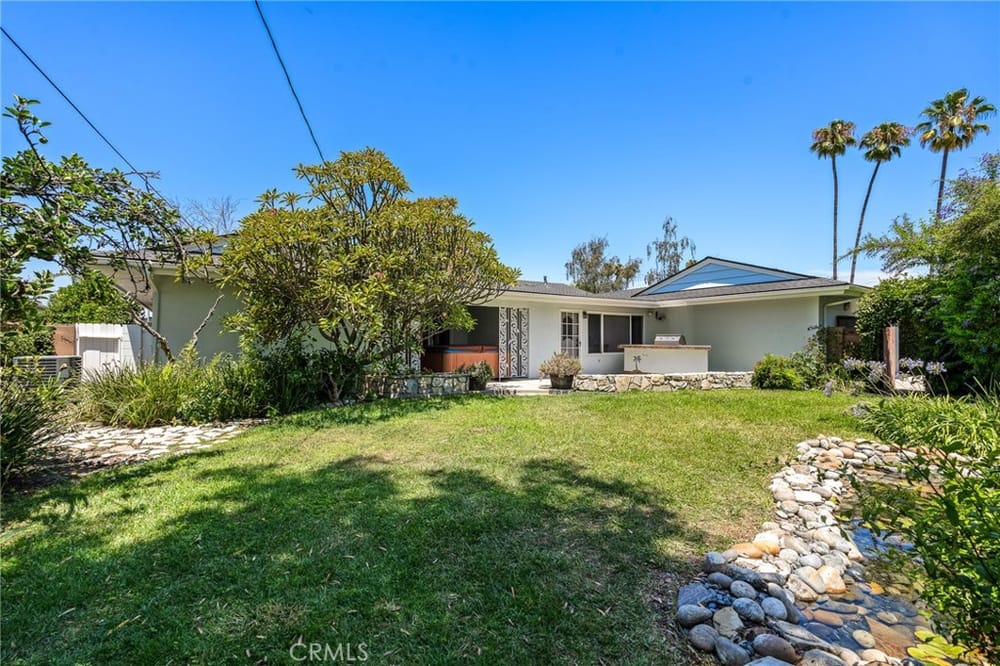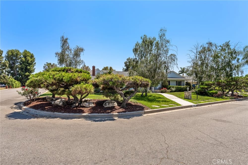 Located on a large corner lot within the prestigious Westmont neighborhood. All homes in this tract were custom built when this area was developed. Large living area spaces for guests and entertaining. The country kitchen style layout allows for an in-room eating area surrounded by corner windows with lots of natural light. Kitchen appliances include wall oven and microwave, 4 burner gas range w...ith custom hood, stainless steel refrigerator and dishwasher, duel kitchen sinks adjacent to a bay window. Wood cabinets are accented with dark surfaces. There are custom dimming ceiling light fixtures throughout most of the home. Most rooms appointed with crown molding. Both the family room and great room/formal dining room have a commanding fireplace that will accent any gathering. Plenty of storage within the house. 2 car garage with custom flooring has additional storage cabinets. The primary bedroom is privately located along the back of the house with doors opening to an secluded above ground spa with backyard access. The primary bathroom has been upgraded to include a separate large shower and bath with spa jets. Two secondary bedrooms are spacious with one using a trick customized usable built-in bookshelf as a door to the closet. There is a tankless water heater in a utility area next to the inside laundry area and a “new” second tank water heater along the other side of the house. According to tax records the property is approximately 2,487sqft. with a lot size of 10,379sqft. With back house windows open you can hear the serene sounds of water splashing from the koi pond from the large backyard. There is a large secured enclosed side patio allowing driveway access. Backyard includes an entertaining area with built-in free standing propane BBQ with refrigerator and a large grass area meeting up to the koi pond. Fruit trees include: avocado, lemon, apple and orange. The front of the house faces Rowan Street and around the corner the driveway and garage faces Dwyer Drive. Plenty of street parking for this corner property. Recent major improvements in 2024 include: new roof, exterior and interior paint and new wood vinyl flooring in most living areas, hall and bedrooms accented with 5 inch base boards. Property is located almost 3 miles from Disneyland and closer to shopping, restaurants and more. Low tax base, No Mello-Roos, No HOA. The property has only 1 single step at the front porch entry and 1 single interior step towards back of the house..