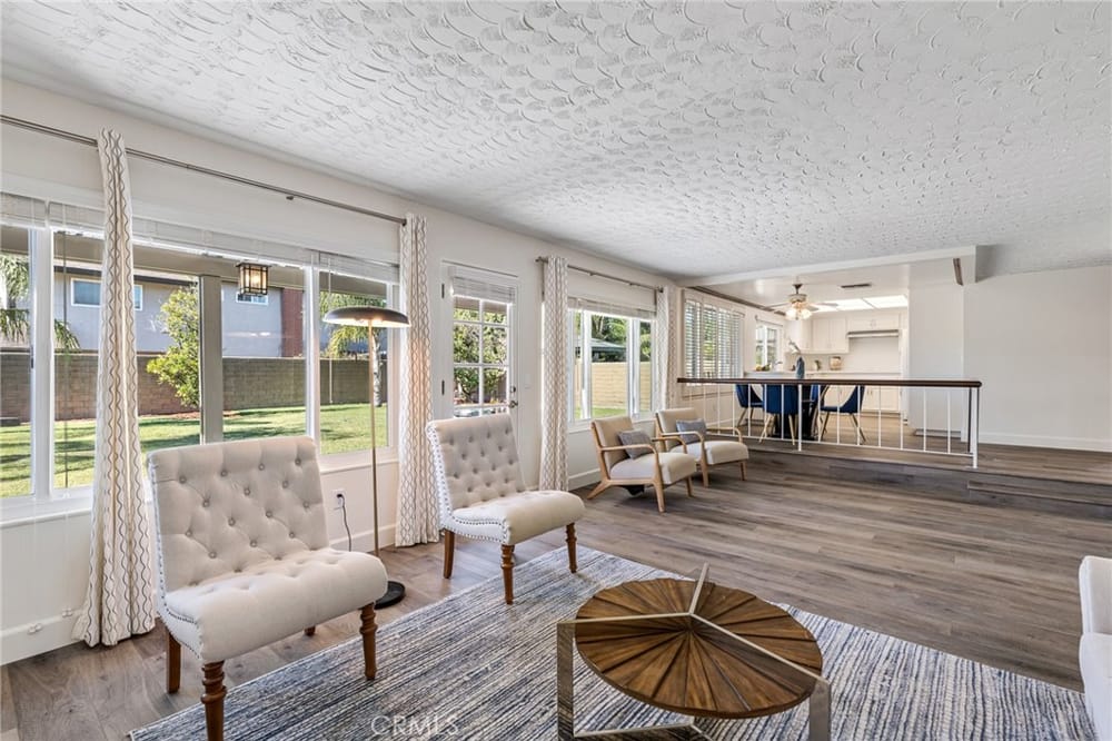 Welcome to this meticulously maintained, renovated two-story home nestled on a generous 6,960 sq ft lot in a highly sought-after neighborhood. Owned by the same family since new, this home showcases pride of ownership at every turn, blending timeless design with modern upgrades.Newer double pane windows, fresh interior and exterior paint, new flooring and carpet, an updated kitchen and a new alumi...num-covered patio are just a few of the many upgrades. Additional highlights include a brand-new driveway, new main water line and updated irrigation system. Newer central air conditioning and heating for year-round comfort. Updated kitchen and bathrooms plumbing fixtures. New light fixtures have been updated as well, including recessed lights in the bedrooms.As you approach, a grand double-door entry welcomes you into a spacious, light-filled living room with soaring ceilings, new premium flooring, a fresh coat of paint, and large double-pane windows that create an open, airy space flooded with natural light, offering an inviting and welcoming atmosphere.Step further into the heart of the home—a cozy yet expansive family room with a classic fireplace, perfect for unwinding with loved ones. From here, enjoy sweeping views of the impressive backyard, complete with a large vinyl-covered patio ideal for hosting gatherings or simply soaking up the California sunshine.The updated kitchen is both elegant and functional, featuring quartz countertops, refacing, new soft closing drawers, brand-new appliances and dual oven making it a joy to cook and entertain. You’ll have a formal dining room for memorable dinners, plus a sunny breakfast nook for morning coffee.Upstairs, all bedrooms are carpeted for comfort, including the master suite, which is a true retreat. The master offers a generous walk-in closet, a second wall-to-wall closet and window shutters for added privacy and style. The master bath is thoughtfully designed with double sinks and a separate vanity area, offering plenty of space.The spacious backyard, complete with fruit trees and a large patio, offers endless potential for outdoor fun and relaxation. With its prime location near Katella and Tustin Avenue, you’ll have easy access to shopping, dining, businesses, and more. Just minutes from major highways (55, 91, and 57), this home makes commuting and daily errands a breeze.This home truly offers everything you need and more, must come see for yourself!