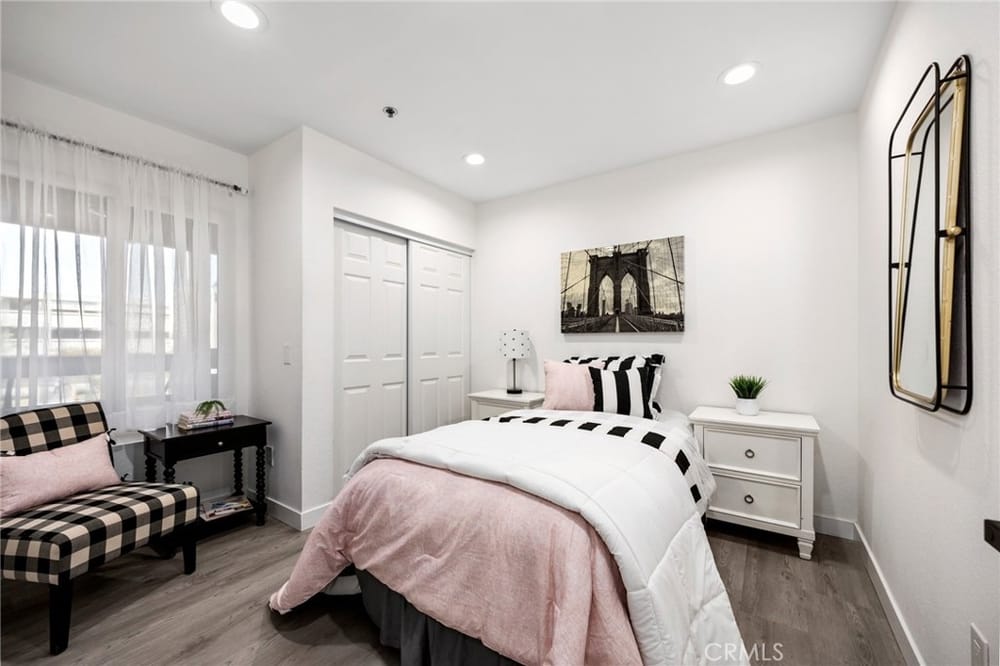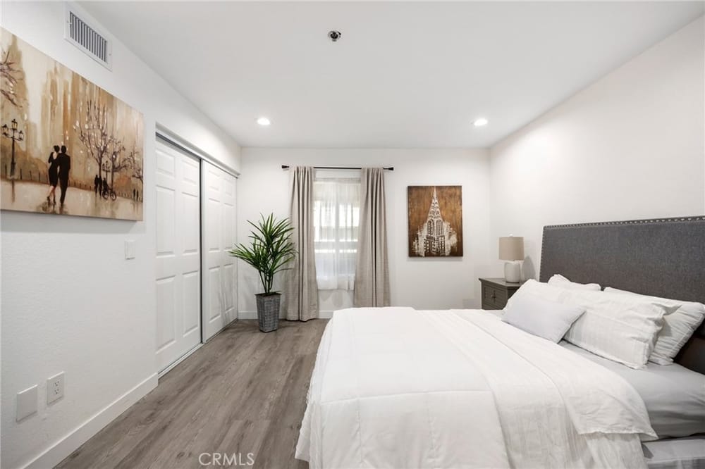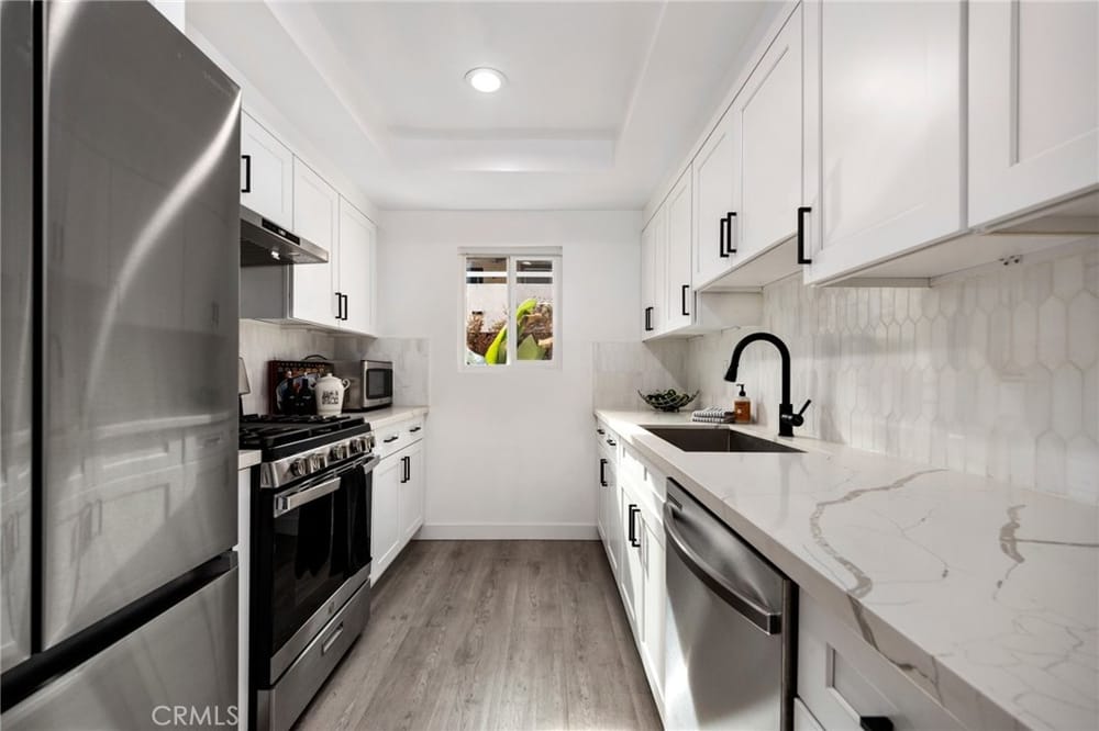 Welcome to this beautifully updated condo in the heart of Lakewood! The open layout includes a spacious living room, perfect for entertaining or relaxing, with sliding doors that flood the space with natural light and lead to a private balcony. The dining area is large enough to accommodate a generous table for hosting guests. At the same time, the sleek kitchen boasts white cabinets, a stunning w...hite honeycomb backsplash, quartz countertops, and stainless steel appliances—perfect for the home chef. The primary suite is a tranquil retreat, complete with an attached full bathroom, while the guest bathroom has been fully remodeled with a modern glass shower and white cabinetry. Enjoy the convenience of in-unit laundry and the extra storage space on the private balcony. This home is stylish and functional with durable vinyl plank flooring and recessed lighting. This condo offers the perfect blend of modern updates, thoughtful design, and comfortable living. Some amenities include a pool, spa, outdoor dining area, and a large game/meeting room. Don't miss your chance to call it home!