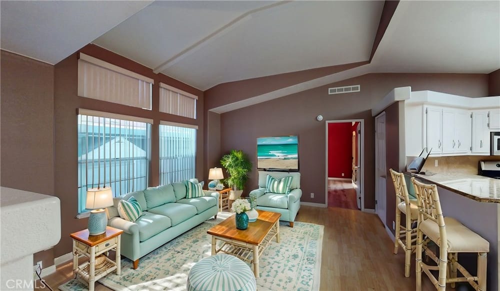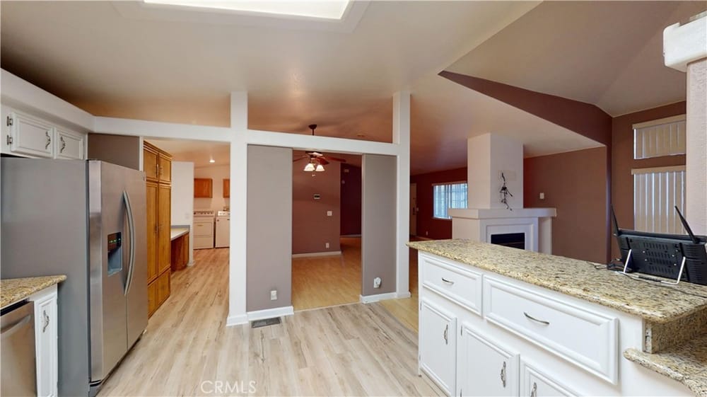 Very upgraded custom 1997 BARON 1674 sq ft 3 LARGE BRIGHT Bedrooms, LED Lighting Under Kitchen Cabinets, Custom Paint Throughout, Brand New Primary/Master Bathroom Cabinets, Sink, Faucets, Shower & Roman Jetted Tub. Brand New Waterproof Vinyl Flooring Primary/Master Bedroom, Bathroom & Walk In Closet Brand New Waterproof Flooring Kitchen, Back Hall (See Floorplan) & Laundry Room. WIFI Video Camer...as Smart App Controlled at BOTH Front & Back Porches. Custom Private Patio Enclosed w/Lockable GATE, 6' Vinyl Fence & Top of the Line Artificial Turf. Granite Counters In Kitchen, Rare GAS room-dividing Fireplace, Upgraded Windows, Faux wood blinds throughout, Circular Kitchen with Pantry & Small Office, Extra large utility room with built-in desk, Central Air, Custom Brickwork, Fenced Backyard, 3 Car Parking All Ages Space Rent $2563A wonderful family friendly community which features five star amenities. This community is located within walking distance to F.V.H.S. Why buy a condo with higher monthly expenses and have to share a wall with your neighbor, when you can purchase a newer home with more square footage??? And Park 3 Vehicles in Covered Attached Carport.All Age CommunityFountain Valley High SchoolClubhouseHeated Saltwater PoolJacuzzi/Basketball Cts1 Small Pet Okay (dogs under 22 lbs)