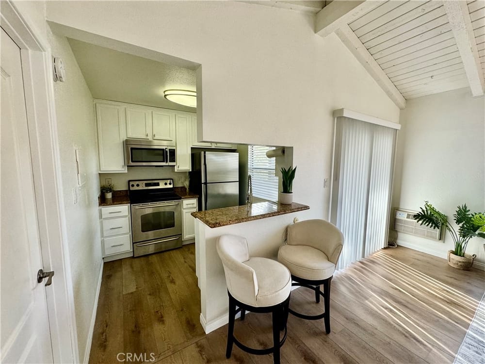 Welcome to this TURNKEY, highly desirable CORNER-END unit in a resort-style gated community! The second-floor condo features new updates throughout including BRAND-NEW vinyl plank flooring, freshly painted walls and cabinetry, all new hardware, faucets, and a freshly reglazed bath! This charming junior one-bedroom unit also boasts stainless steel appliances, granite countertops, a/c wall unit in l...iving room, and a convenient ceiling fan in the bedroom. Parking for two cars within the gated community is included, one as a designated carport (with small storage space), and one parking permit for unmarked spaces, though ample street parking is conveniently available just outside the gates of the unit. Huge perk, steps from the unit!LOCATION, LOCATION, LOCATION! The view exclusive to the corner unit from the oversized deck/patio is a MUST-SEE; no neighbors to block your side view! Visitors will have ease of access entering through the ideally located direct-access pedestrian entry gate on the quaint and tranquil Williams St, while residents enjoy one of the most private units—tucked away in a charming and quiet corner of the community with minimal foot traffic. This unit is PERFECT for those seeking a relaxing, secluded oasis with the comfort of resort amenities including a resort-style pool and spa, sauna, gym, multi-room clubhouse, well-maintained laundry facilities…and all within the convenience of a walking distance to premier shopping centers, dining, and more!