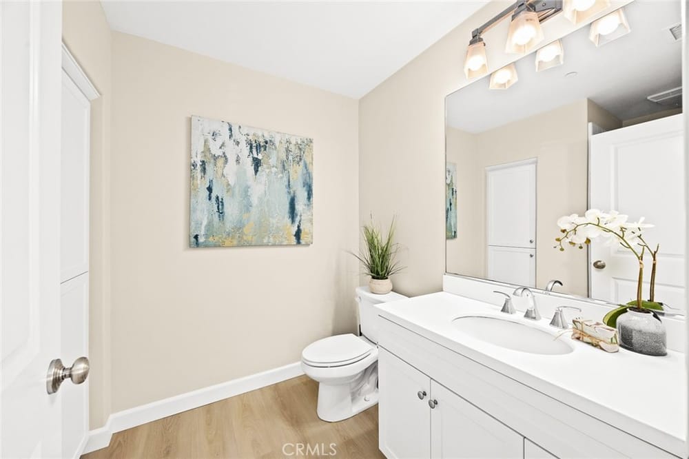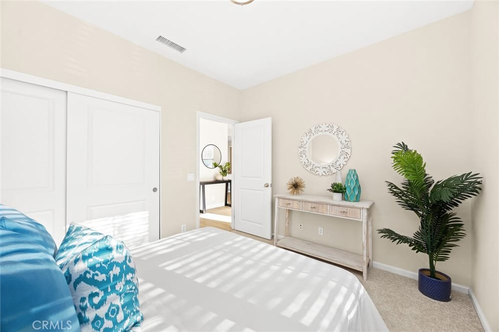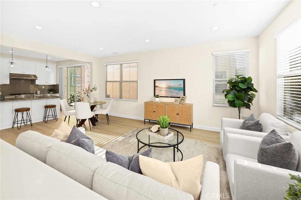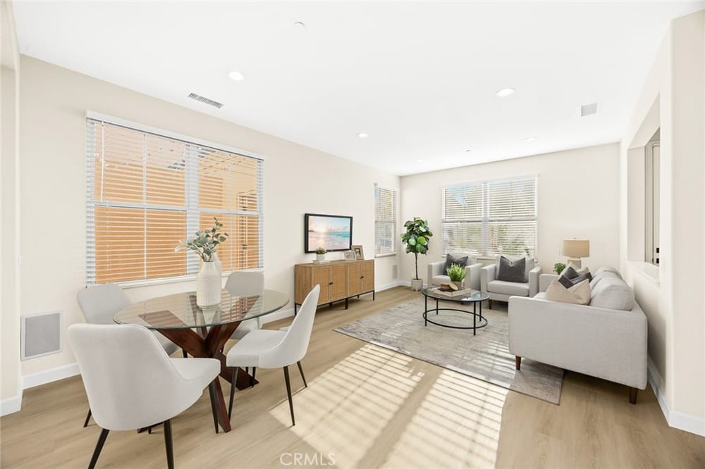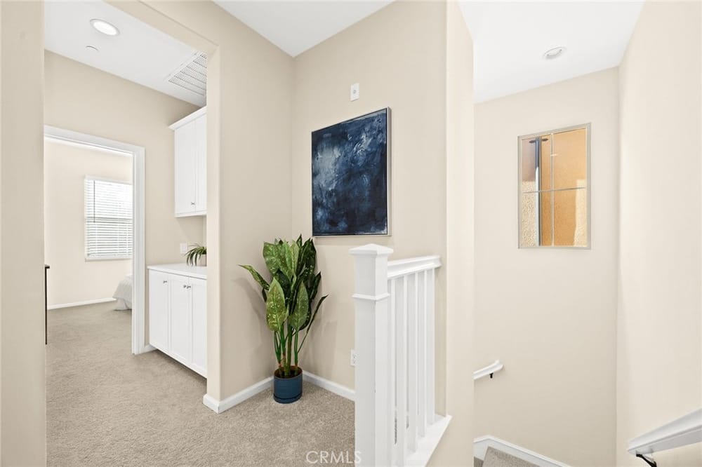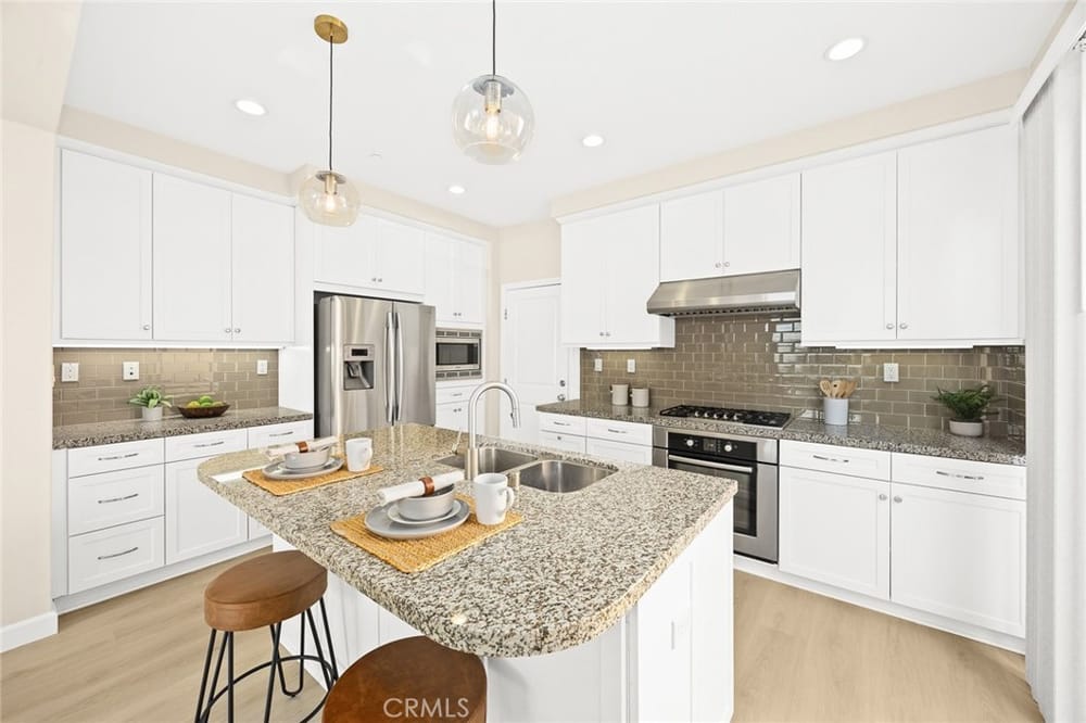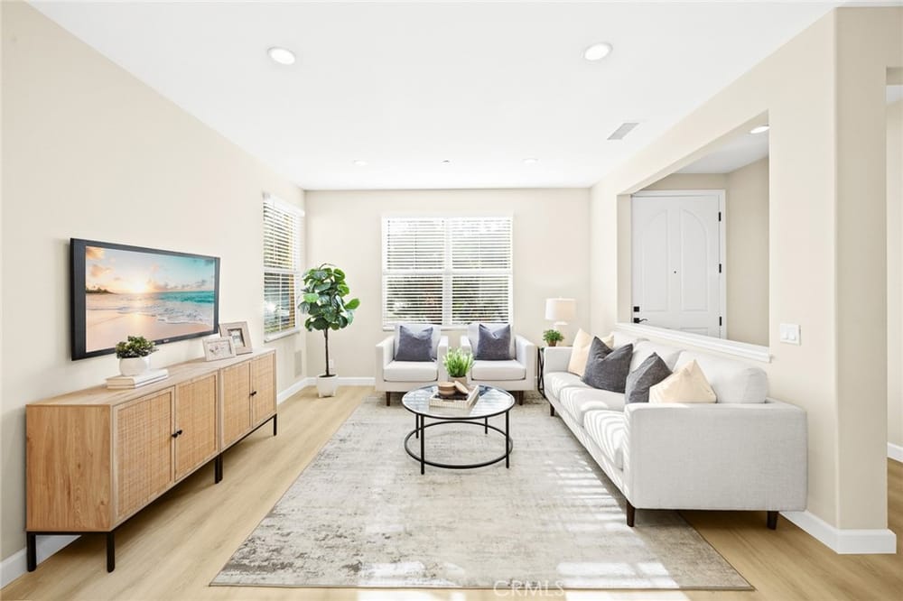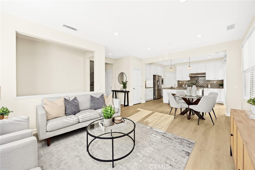 Indulge in love at first sight with this contemporary haven in Cypress Village. FIRST LEVEL BEDROOM + FULL BATH. It’s a rare 3 bed + 3 full bath home with attached 2 car garage. BRAND NEW luxury vinyl floors and INTERIOR PAINT. Lots of light! The sleek kitchen boasts a generous size island, granite countertops, full backsplash, Bosch appliance package with gas stove, oven, dishwasher and hood. Lar...ge master suite has large walk-in closets. Master bath has dual vanities, a separate shower stall, and a bath. Inside laundry room on the second level. Washer & dryer are included. Recent upgrades include a BRAND NEW insulated garage door (2023), new carpet (2023), new light fixtures in the bedrooms and storage room (2024), new kitchen pedant lights (2024), custom interior paint (2024) and white cordless blinds (2024). Low maintenance side yard with a separate storage room. The storage room next to the side yard can also be used an office. Brand new flooring in the storage room as well. Irvine Unified. Cypress Village Elementary School is nearby. Cypress Village HOA offers world-class pool, spa, tennis court, playground and multiple parks. Walk to Jeffrey Trail Open Space, Cypress Village Shopping Center, and many great restaurants. 5 freeway, 133 toll road, OC Great Park and Laguna Beach are within easy reach. Come and enjoy this holiday season at this gorgeous home!