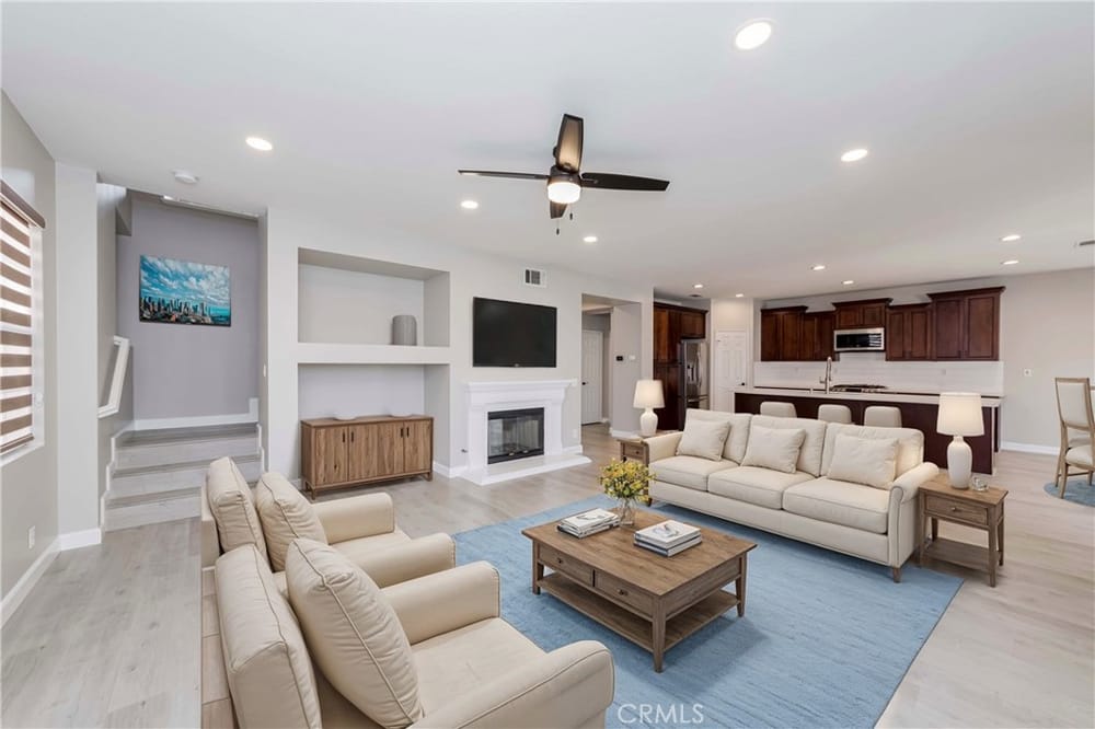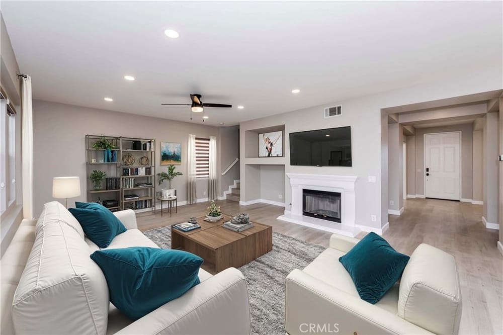 Beautiful home in highly desirable Amerige Heights Community. Built in 2003, KB Home Silverleaf Model with carriage unit above 2 car garage.  Main house features 4 Bedroom 3 Bathroom plus a loft. Main floor downstairs bedroom with a 3/4 bath, perfect for guest or office.  Family room with a cozy fireplace and recessed lighting. Hardwood floor throughout. Open stunning gourmet kitchen with quartz ...countertops, oversize island, stainless steel appliances including microwave,gas cooktop and spacious walk-in pantry and large center island with breakfast bar.  Large loft for great entertainment, play area. All bedrooms have ceiling fans. French doors that lead to the backyard. Primary suite with high ceiling, walk-in closet and  primary bathroom with double vanities,separate tub and shower The inside laundry room upstairs w/cabinet. Each bedroom offers walk-in closets for ample storage. Dual central air conditioning systems. French door opens to the just perfect back and side yard for the perfect outdoor entertaining. Professionally designed backyard, artificial grass in backyard for easy care and clean, perfect for relaxation or entertaining.   There is also a carriage unit (One bedroom with closet, newly remodeled shower in bathroom, living room) located above the detached 2-car garage .   The unit above the garage is perfect for a guest room/office or to rent- Tenant will use a different access door.  Two car detached garage and one additional outdoor parking space next to the garage.  HOA amenities include tennis court & club house, high speed internet.  Home is close to award winning  Sunny Hills high school and Robert C. Fisler Elementary and  Jr. High school.  Close to Amerige Heights Town Center with restaurant, supermarket ,shopping, gym, book store.( Washer and Dryer, Refrigerator included)