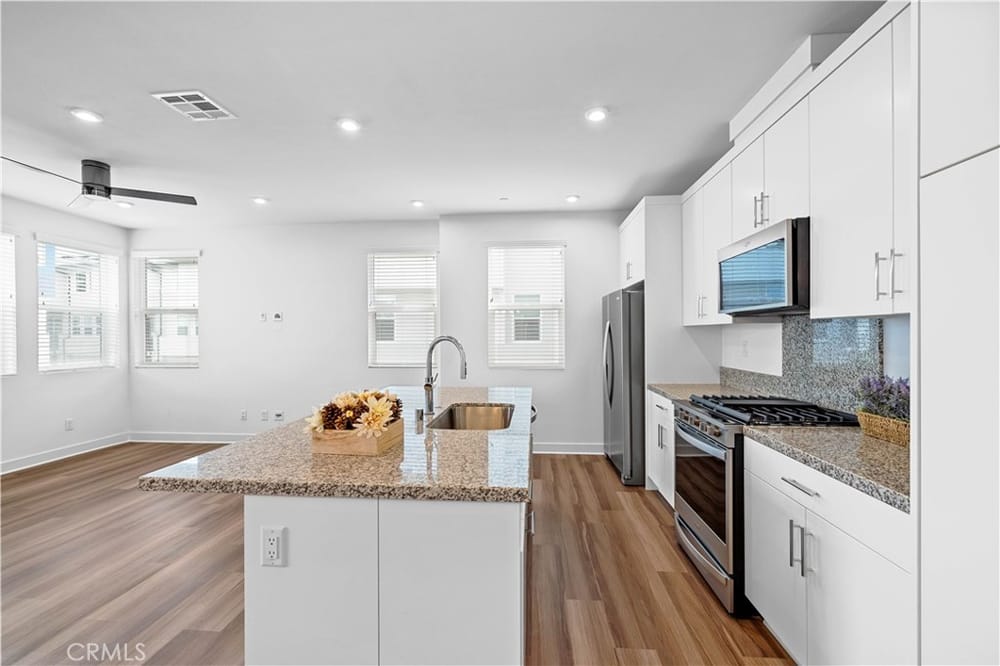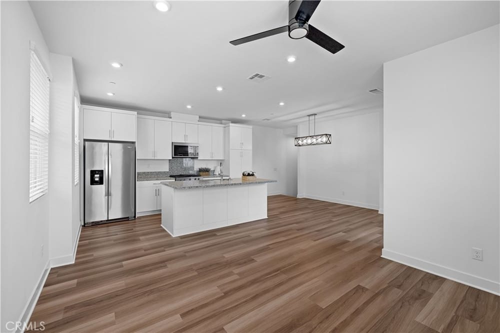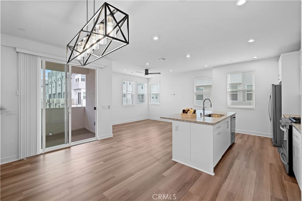 Toll Brothers brand new GATED community at 100 West in Anaheim. Our Towns beautiful Plan 2 Model attached condominium that features three level functional residence. On the first level, you'll find the main entrance, a welcoming foyer with a side entrance to attached spacious 2-Car garage. You'll find brand new beautiful EV Charger on the wall. As you ascend to the second level, you'll discover t...he heart of the home. The open-concept encompasses a well-appointed kitchen, a dining area, and a comfortable living space. The Kitchen has modern Kitchen- Aid appliances including Refrigerator, ample counter space and inviting island with breakfast bar and entertaining space. The living area offers a cozy spot for relaxation and brand new New modern chandelier. The sun and light shines through this beautiful space with the wrap-around windows including an outside balcony for relaxing retreat, where you can enjoy fresh air. Moving up to the third level, you'll find the private quarters of the condo. Stunning Primary bedroom with en-suite bathroom, complete with a shower and vanity sink, a spacious walk-in closet. The two secondary bedrooms share a full bathroom, providing convenience for the entire household. Amenities include a pool, spa, two dog parks, BBQ areas, recreational grass areas, and walk-able paseos interwoven throughout. 100 West is centrally located in the heart of Orange County minutes to major entertainment & shopping centers such as Disneyland, Honda Center, Angel Stadium Walk. Easy & convenient access to many freeways.