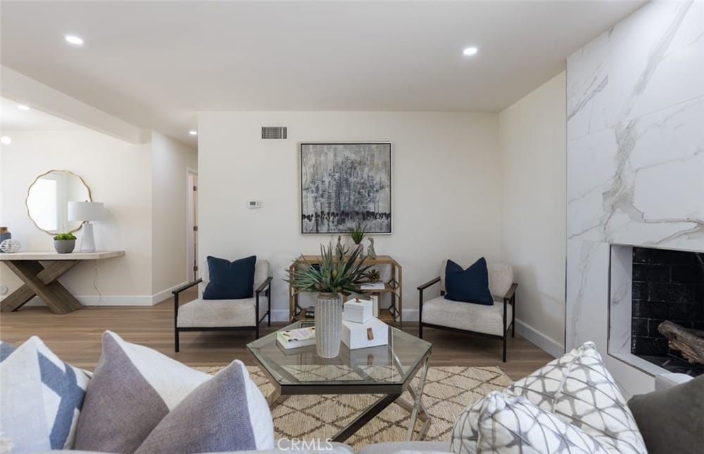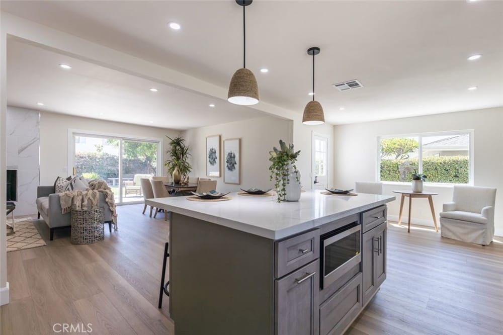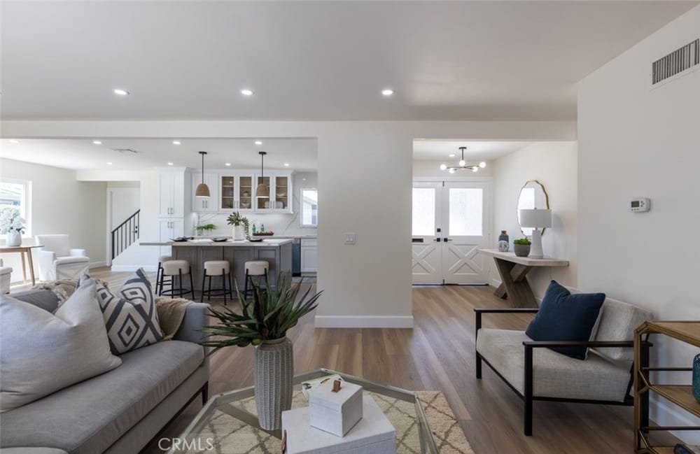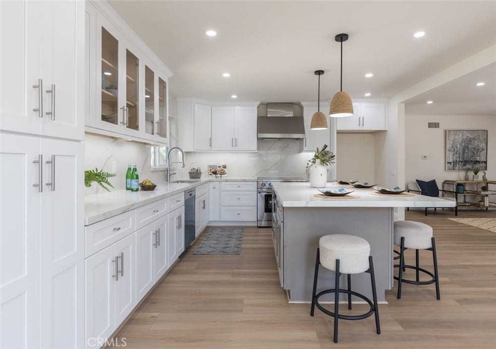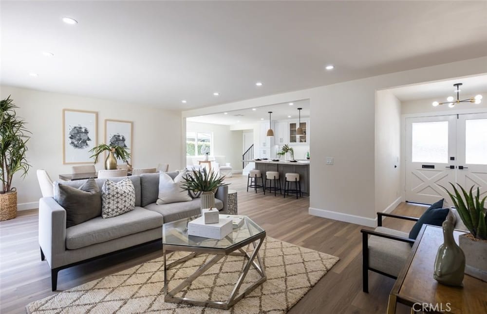 This charming home has so much to offer! Stunning curb appeal and great location. Double door entry invites you in to this Versatile floor plan with so many options for your family. Set up as 3 bedrooms and 2 baths on the main floor. Upstairs Bedroom could be converted to two bedrooms, bonus room or an ideal Master Suite. Plenty of room to add an additional full bath as well. Newly remodeled kitc...hen with center island, stainless appliances and new cabinets. Beautiful bathrooms remodeled top to bottom. Extensive laminate wood floors and new carpet. Light and bright and plenty of windows to let in the natural light. Large backyard with lush landscape, mature trees and privacy. Plenty of room for entertaining and can easily accommodate a pool. Conveniently located close to schools, parks and shopping. Enjoy the lifestyle that Tustin has to offer.