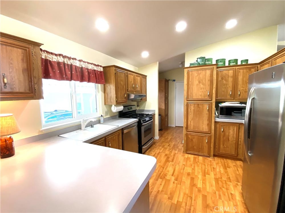 BIG PRICE REDUCTION! COME SEE IT! Three bedrooms - you could use one as an office, craft room, or for a live-in caregiver if needed. This is the largest mobile home currently available in this beautiful 55+ community called The Meadows (by more than 400 sqft!). Quiet location, great breezes! Well maintained and beautifully updated triple wide in an extremely desirable park! This lovely home has r...eceived many improvements just in the last three years: new roof, new AC, new windows, new decks, new light fixtures, new fans, exterior paint. Very inviting floor plan with living room (with fireplace), family room and dining area. Nice high ceilings make it feel even more spacious! Kitchen has breakfast nook and has lots of cupboards and counter space. Master bedroom has retreat area for reading, office space, or daydreaming. En suite bath has two sinks, shower and separate tub. Dedicated laundry room with cupboards. Back yard has very prolific orange tree and framed-in garden areas for growing veggies. See photos - it's a very nice, well-maintained and beautiful home, waiting for you!
