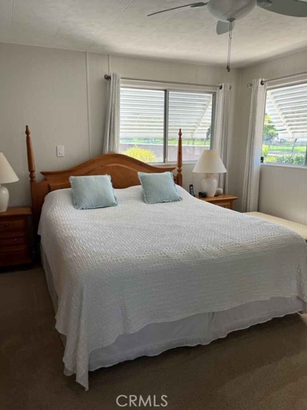 Spacious, light and bright two bedrooms, two bathrooms plus den, about 1,440 SF. Efficient kitchen with newer appliances and good storage space. Slider in den opens to large porch. Primary bedroom suite is in the back of the home, complete with large closet and shower tub. Nice guest bedroom and bathroom with step-in shower. Refrigerator and Washer plus dryer included. Enjoy the great outdoors and... cool breezes on large porch or plant veggies in back yard. Newer, high efficiency air conditioning. Oversized storage shed will hold all extras. Call now to take a look at this great home!