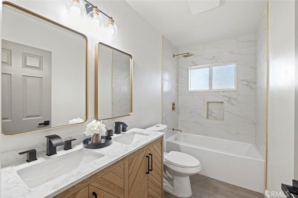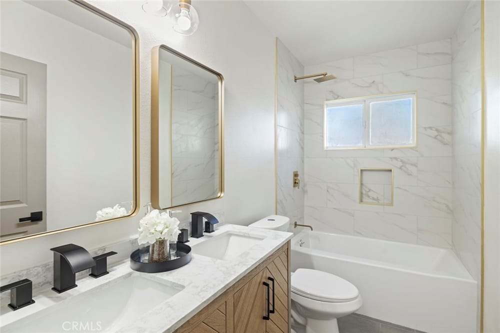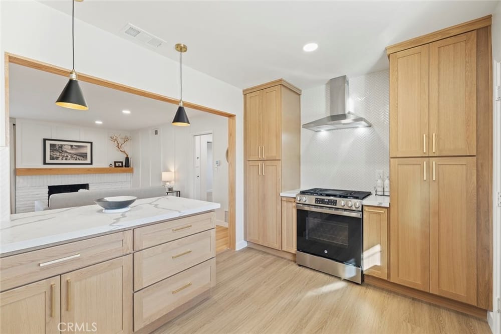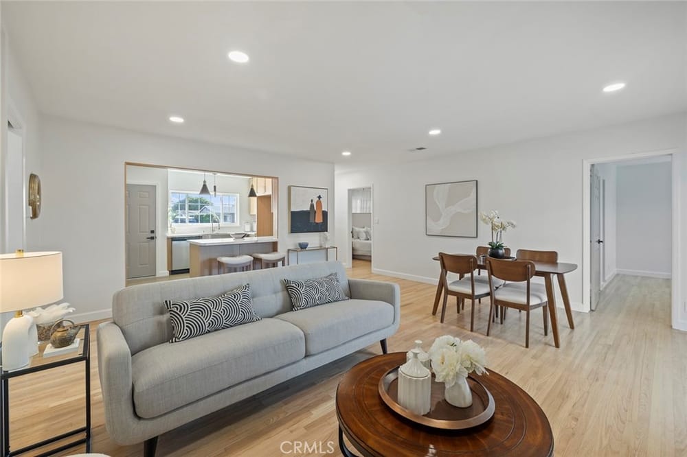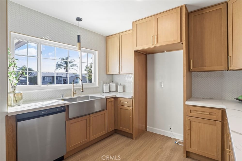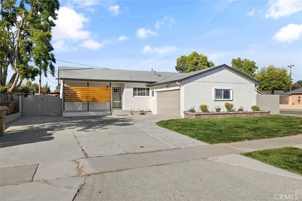 Simply stunning fully remodeled, professionally designed, Modern Ranch style home, located in the heart of Fullerton! Featuring 4 bedrooms and 2 bathrooms, 1416 sq ft and a large lot, at 7,420 sq ft! You will be immediately drawn with the home's brand new Designer Kitchen with high quality, Soft-close cabinets and drawers, a beautiful Kitchen Peninsula with Quartz countertops, brand new Stainless ...Steel appliances, elegant Ceramic tile backsplash, accented with gold hardware and fixtures. Both bathrooms are tastefully remodeled. The Hallway bathroom features New wood finish Vanity, New Bathtub and elegant wall to wall tile. The Living Room is extra special, decked with a Board and Batten wall design and a classic brick fireplace. Beautifully refinished stained Oakwood floors bring out the home's warmth and elegance. The Dining Room is open to the Living room and Kitchen, this Open Floor Plan provides a smooth transition from room to room. Relax and unwind in the Master Bedroom Suite, complete with an Ensuite Bathroom, Double closet feature with a separate Walk-in closet. The Master Bathroom is a statement of its own, boasting of elegant wall to wall tile, Brand New Tub and Vanity. All the bedrooms are sizable and well appointed. Other features include Central air and heat, New fixtures, Dual-pane windows, Recessed lights, Newly painted interior and exterior. The Backyard is an Entertainer's dream! Featuring a Built-in fireplace, concrete patio and a huge sideyard, built with a New Fence for your privacy and enjoyment! The lot size is immense, with flat land rendering so much space to add a room, a pool or build an ADU. The possibilties are endless! Have the convenience of an Attached 2 Car Garage with a very wide Driveway providing plenty of parking, plus an RV parking! Home to Sunny Hills HS, close to Cal State Fullerton, Fullerton College, and Downtown Fullerton. Enjoy the shops, restaurants, amazing parks and hiking trails. Your FOREVER HOME awaits! Welcome to 1501 Woodcrest Avenue and Welcome Home!