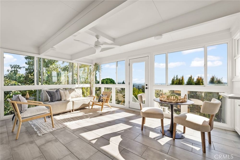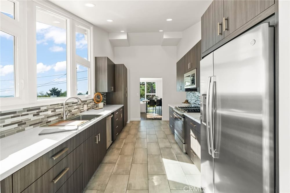 Nestled on a tiered slope in the scenic Raymond Hills of Fullerton, this beautifully updated 3-bedroom, 3-bathroom mid-century modern home offers both style and functionality. The open-concept design features vaulted wood-beamed ceilings and a fully remodeled kitchen, perfect for entertaining and everyday living, while floor to ceiling windows frame spectacular views of Fullerton and beyond.The sp...acious lot is a true standout, with mature fruit and avocado trees that create a serene, private oasis. Whether you're enjoying the natural beauty from the deck or harvesting your own fresh produce, this home's outdoor space offers endless possibilities.A bonus room with a half bath adds flexibility—ideal as an office, home gym, or guest suite. This home also comes with energy-efficient owned solar panels, providing both environmental and cost-saving benefits. Located in a peaceful neighborhood with easy access to parks, and local amenities, this mid-century modern beauty combines classic charm with modern convenience. Don't miss your chance to own this stunning property with unbeatable views and character!