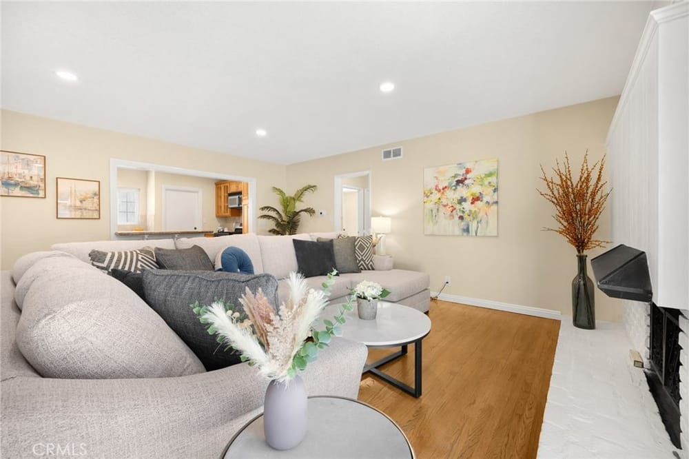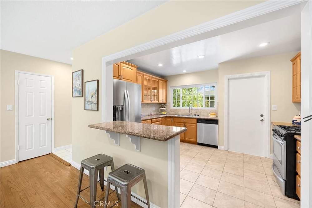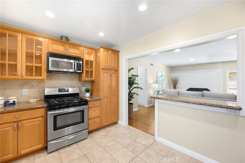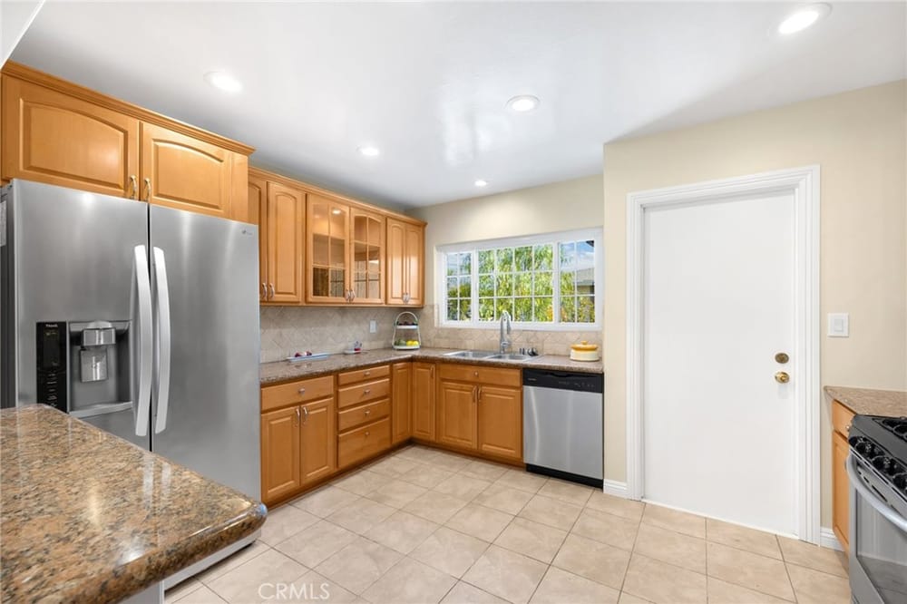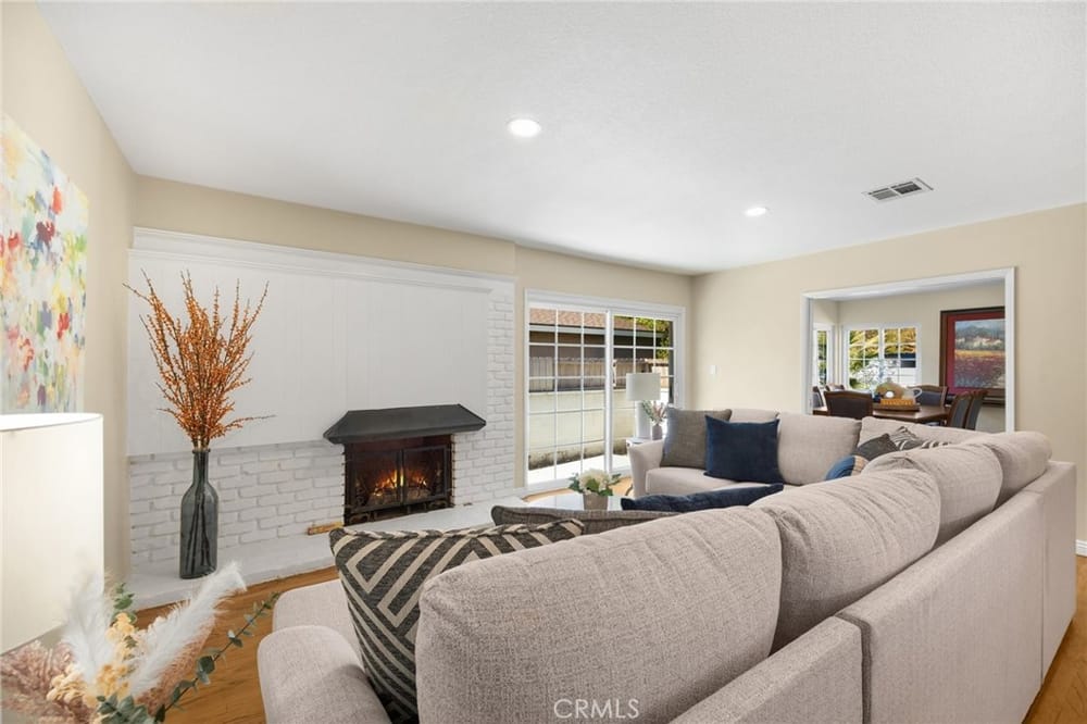 BEAUTIFUL, SINGLE-STORY home WALKING DISTANCE to Pacific Drive Elementary! This home features a bright and open floor plan with 4 bedrooms and 2 bathrooms with 1,432 square feet of spacious living space. Spacious living room features cozy brick fireplace, recessed lighting, large slider to the backyard and is adjacent to the kitchen. The kitchen features plenty of cabinetry for storage, beautiful ...countertops, gas range with microwave overhead, stainless steel appliances, large window for natural lighting and has direct access to the garage. The Primary bedroom includes plenty of windows for natural lighting, ensuite bathroom that includes separate vanity area and is shared with the fourth bedroom that is currently being used as a dining room. Two additional roomy bedrooms include plenty of closet space and large windows. Down the hall is a beautiful bathroom with walk-in shower. This private backyard features a large concrete covered patio area with beautiful landscaping. Additional features of the home include 2 car garage with alley access, plenty of driveway space for extra parking and laundry area in garage. Short distance to Sunny Hills High School, Fullerton College and CSUF. Close to shopping, restaurants and have easy access to major freeways which makes commuting a breeze. This home is one you won’t want to miss!