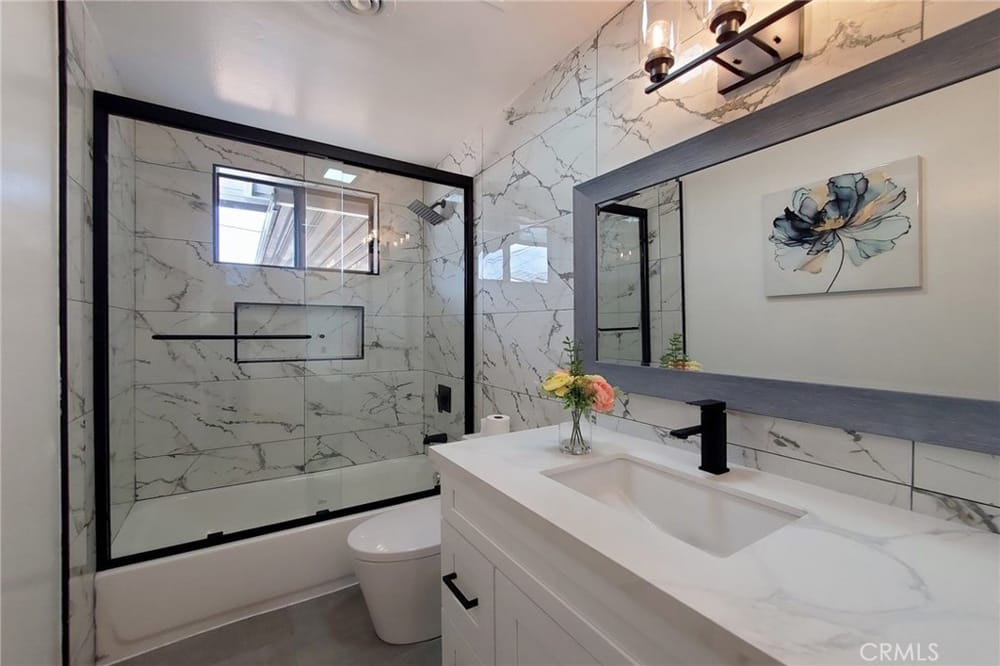 Price Reduction!!! Quiet Huntington Beach neighborhood, newly renovated beautiful 1450 SF (include 1214 living SF, plus 236 Closing Patio SF) one-story home, Spacious and open floor plan w 3bed w 2 full Bath, a separate convenient laundry room. This lovely home is walking distance to award winning schools, several parks, golf, shopping, restaurants and is less than a 5-minute drive to the beach. M...ust see to appreciate!