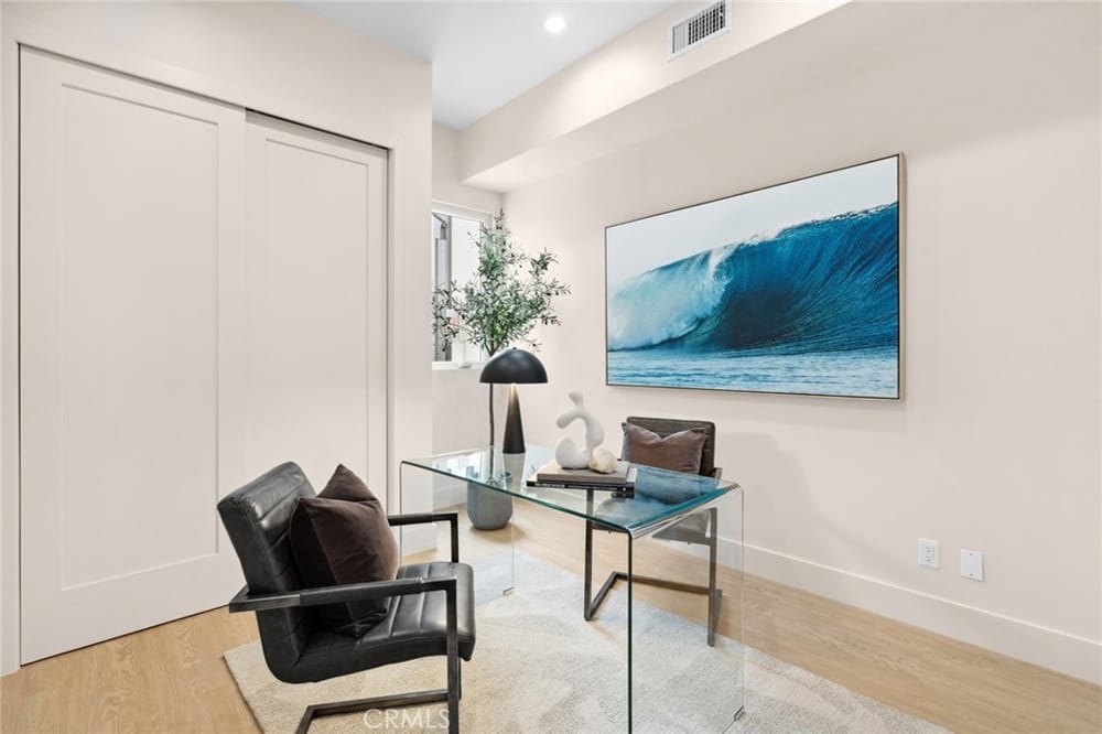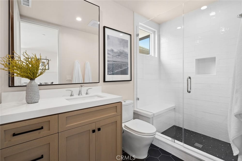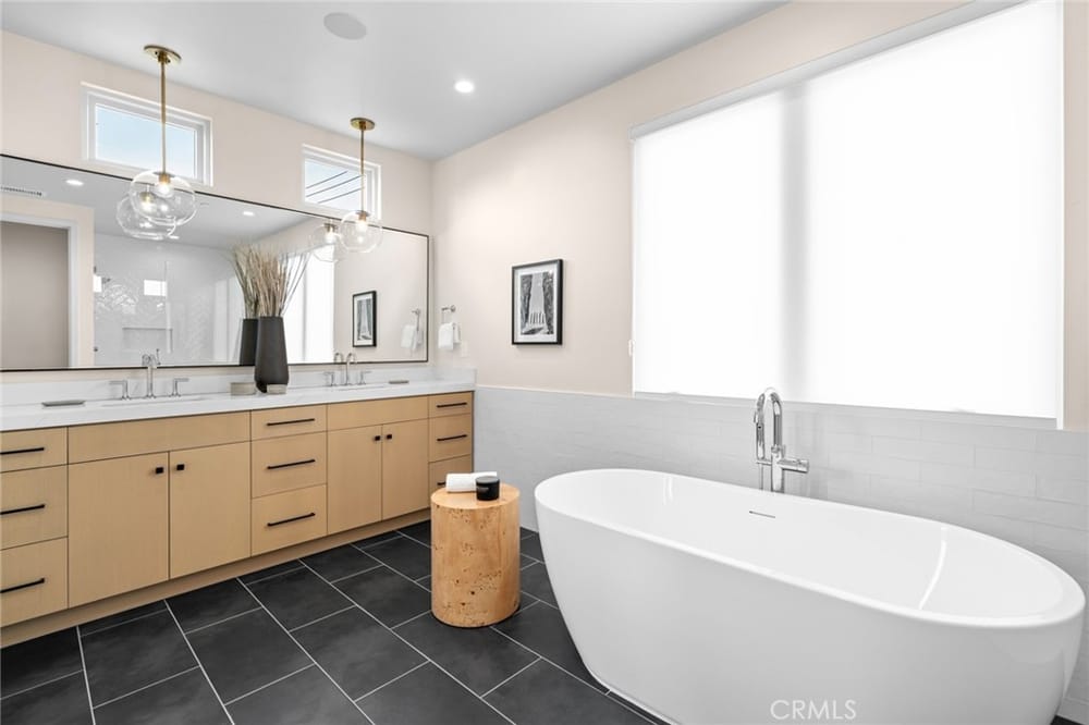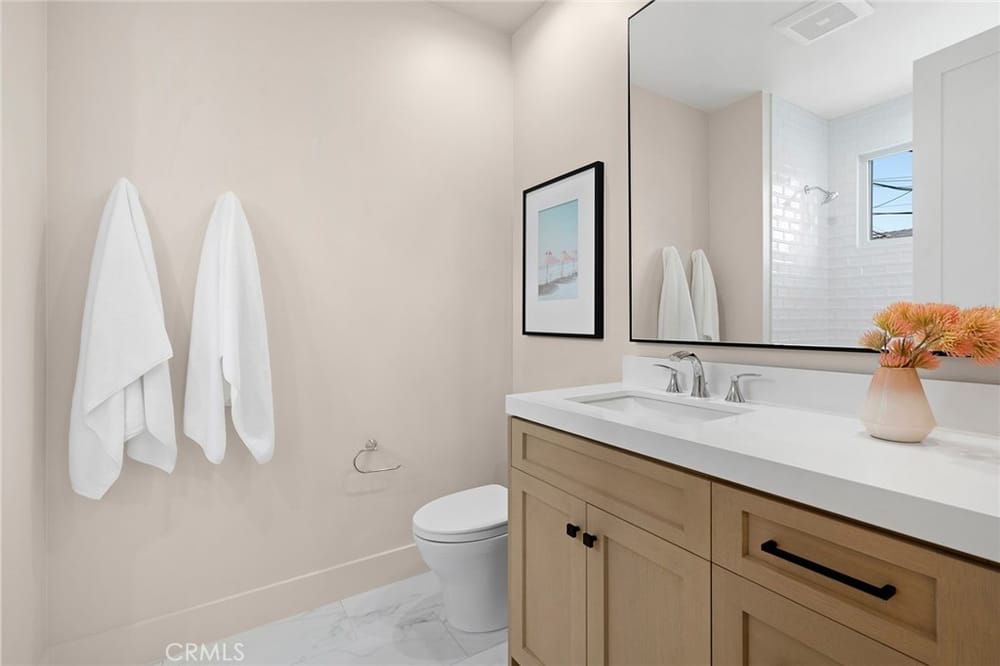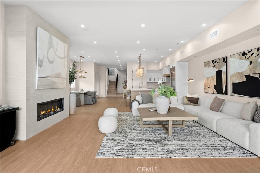Discover a haven of comfort and style at this meticulously crafted single-family home in Costa Mesa. Boasting 2,739 square feet of living space, this 4-bedroom, 4-bathroom residence offers the perfect blend of modern design and functional living. The gourmet kitchen is a chef's delight, featuring an oversized island with bar seating, quartz countertops, a farmhouse sink, and top-of-the-line stainl...ess steel appliances, including a 6-burner Thermador range. Soft-close cabinets and designer pendant lighting add a touch of elegance. Embrace a greener lifestyle with brand new solar panels, providing sustainable energy and reducing your carbon footprint. The light-filled and spacious living room features a stunning electric fireplace, creating a cozy ambiance. Sliding frameless floor-to-ceiling doors seamlessly connect the indoor and outdoor spaces, revealing a fully enclosed, private backyard. Mature trees provide a lush backdrop for relaxation and entertaining. The main level includes a guest bedroom, bathroom, and direct garage access for convenience. Upstairs, three additional bedrooms, each with their own ensuite bathrooms, offer privacy and comfort. The primary suite is a true retreat, featuring a customized walk-in closet, an ensuite bath with dual vanities, a soaking tub, and a separate shower. A secondary sitting area and a private laundry room with a utility sink complete the upper level. Enjoy the best of coastal living with easy access to shopping, dining, top-rated schools, and award-winning beaches.