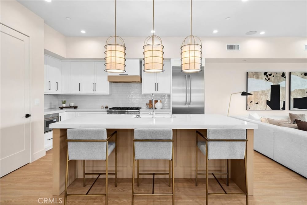 Khám phá thiên đường của sự thoải mái và phong cách tại ngôi nhà gia đình đơn lẻ được chế tác tỉ mỉ này ở Costa Mesa. Với diện tích sinh hoạt 2.739 feet vuông, ngôi nhà 4 phòng ngủ, 4 phòng tắm này mang đến sự kết hợp hoàn hảo giữa thiết kế hiện đại và cuộc sống tiện nghi. Nhà bếp sành điệu là niềm vui của đầu bếp, có đảo bếp lớn với ghế quầy bar, mặt bàn bằng thạch anh, bồn rửa kiểu trang trại và các thiết bị bằng thép không gỉ hàng đầu, bao gồm bếp Thermador 6 lò. Tủ đóng êm và đèn thả thiết kế tạo thêm nét thanh lịch. Tận hưởng lối sống xanh hơn với các tấm pin mặt trời hoàn toàn mới, cung cấp năng lượng bền vững và giảm lượng khí thải carbon của bạn. Phòng khách rộng rãi và tràn ngập ánh sáng có lò sưởi điện tuyệt đẹp, tạo nên bầu không khí ấm cúng. Cửa trượt không khung từ sàn đến trần kết nối liền mạch không gian trong nhà và ngoài trời, để lộ ra sân sau riêng tư hoàn toàn khép kín. Những cây cổ thụ tạo nên bối cảnh tươi tốt để thư giãn và giải trí. Tầng chính bao gồm phòng ngủ dành cho khách, phòng tắm và lối ra vào gara trực tiếp để thuận tiện. Tầng trên, ba phòng ngủ bổ sung, mỗi phòng đều có phòng tắm riêng, mang đến sự riêng tư và thoải mái. Phòng suite chính là nơi nghỉ ngơi thực sự, có tủ quần áo đi bộ tùy chỉnh, phòng tắm riêng với bồn rửa đôi, bồn tắm ngâm và vòi sen riêng. Khu vực tiếp khách thứ cấp và phòng giặt riêng với bồn rửa tiện ích hoàn thiện tầng trên. Tận hưởng cuộc sống ven biển tuyệt vời nhất với khả năng dễ dàng tiếp cận các khu mua sắm, ăn uống, trường học được đánh giá cao và những bãi biển từng đoạt giải thưởng.