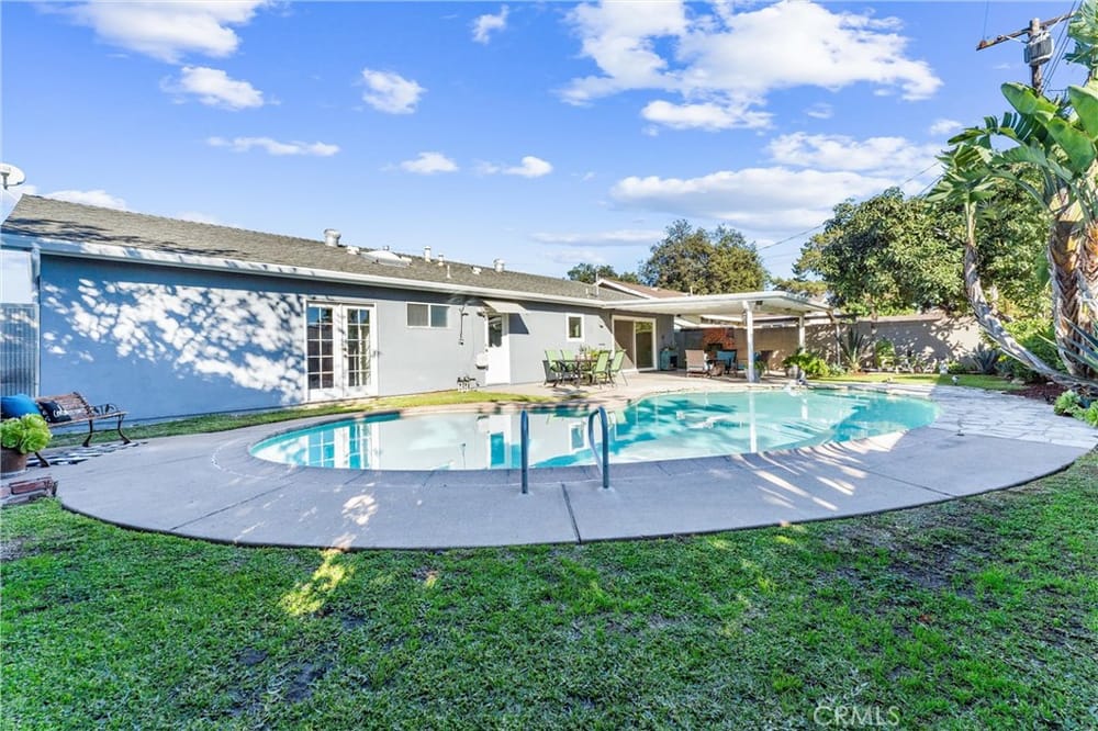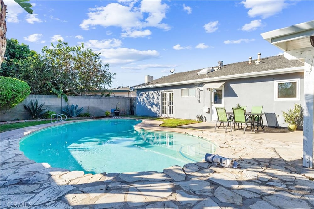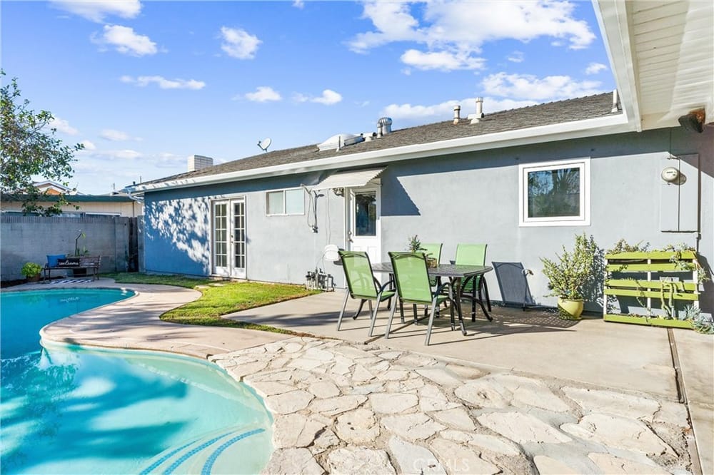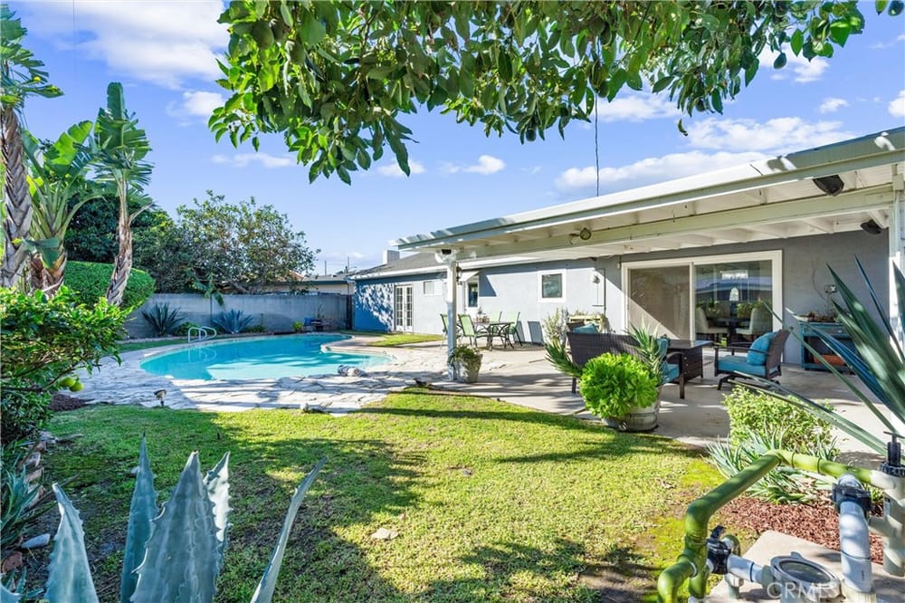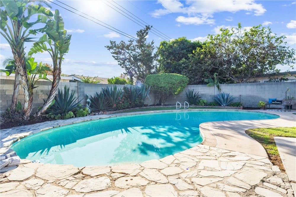 This 1,772 sq. ft.3 bedroom, 2 bathroom - Santa Ana oasis is framed within an established neighborhood, cared for and clean. Curb appeal abounds with planted gardens at each side of the front entrance and ample parking outside the attached two car garage.A newly painted, open floor plan is revealed as you enter the front foyer. A welcoming view from the foyer through the home and extending to th...e covered patio draws you into the home. Subtle earth tones and white accents combine with recessed and contemporary lighting to create clean lines and a visually living uplifting environment. Just to the left of the foyer is the formal living area. Light spills through the windows, creating a warm gathering area. The fireplace and stone floor-to-ceiling surround create a beautiful focal point. The living room has a large ceiling fan to provide a waft of air on warm days. Follow the open floor plan into the home’s culinary center and dining area. The stainless steel appliances feature an under-counter mounted double sink, dishwasher, refrigerator with French doors, microwave and gas range. An elegant, polished quartz countertop is on the breakfast bar and throughout the kitchen. Seemingly unlimited storage is provided by the white kitchen cabinetry. Relaxation is just a few steps away, as you transition from the kitchen’s dining area through sliding doors to poolside covered patio. The laundry area, located just outside of the kitchen, has full-size washer and dryer as well as a sink and storage cabinet.The home’s primary bedroom features double doors opening to the aquatic space in the back yard. A walk-in closet affords storage of hanging garments and shelving to accommodate every need. The bedroom’s en suite is remodeled and has a large walk-in shower with rain shower head and quartz covered shower bench. Mirrored closet doors are an added bonus in each of the two other bedrooms. The shared bathroom has also been remodeled and includes a soaking tub and rain shower head. A ceiling fan cools each of the three bedrooms.This home has a newer HVAC system and whole house fan to ensure comfortable living. The swimming pool is the central attraction in the backyard, with a covered patio, beautiful landscaping and avocado and orange trees, outside shower by back door leading into laundry area.Tustin school district , schools, freeways conveniently located. Make an appointment to tour this treasure today!