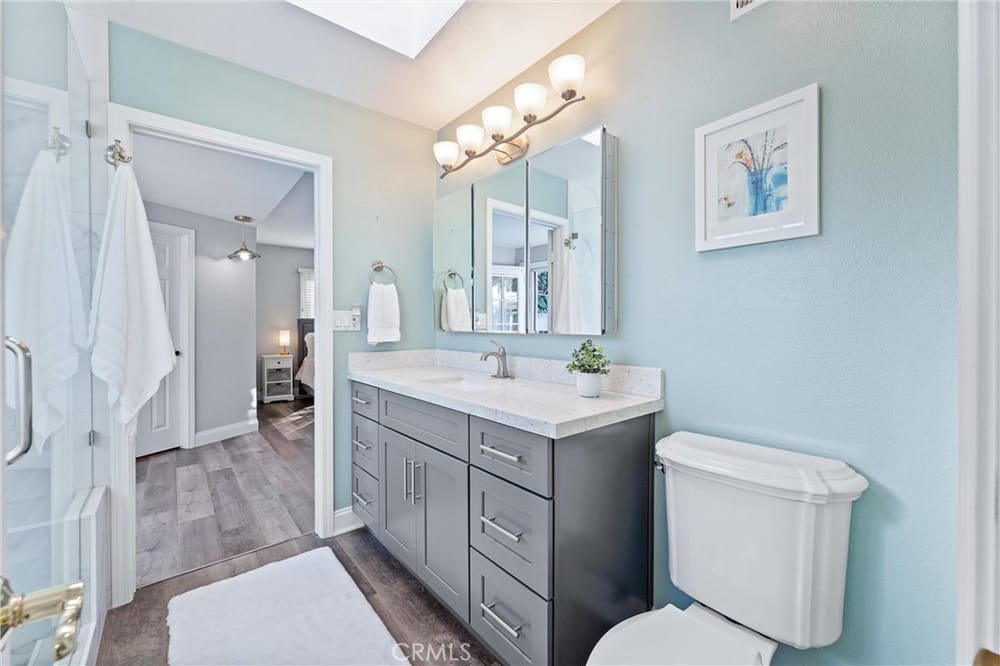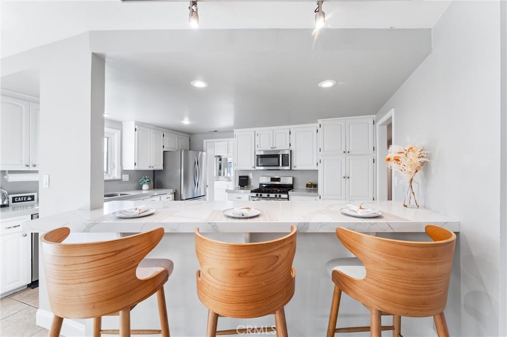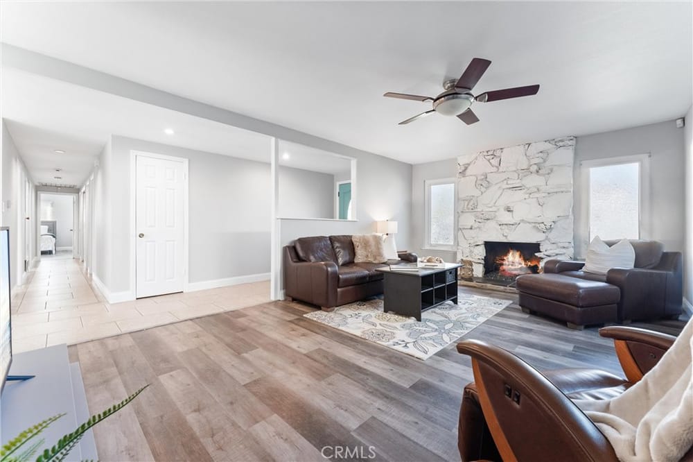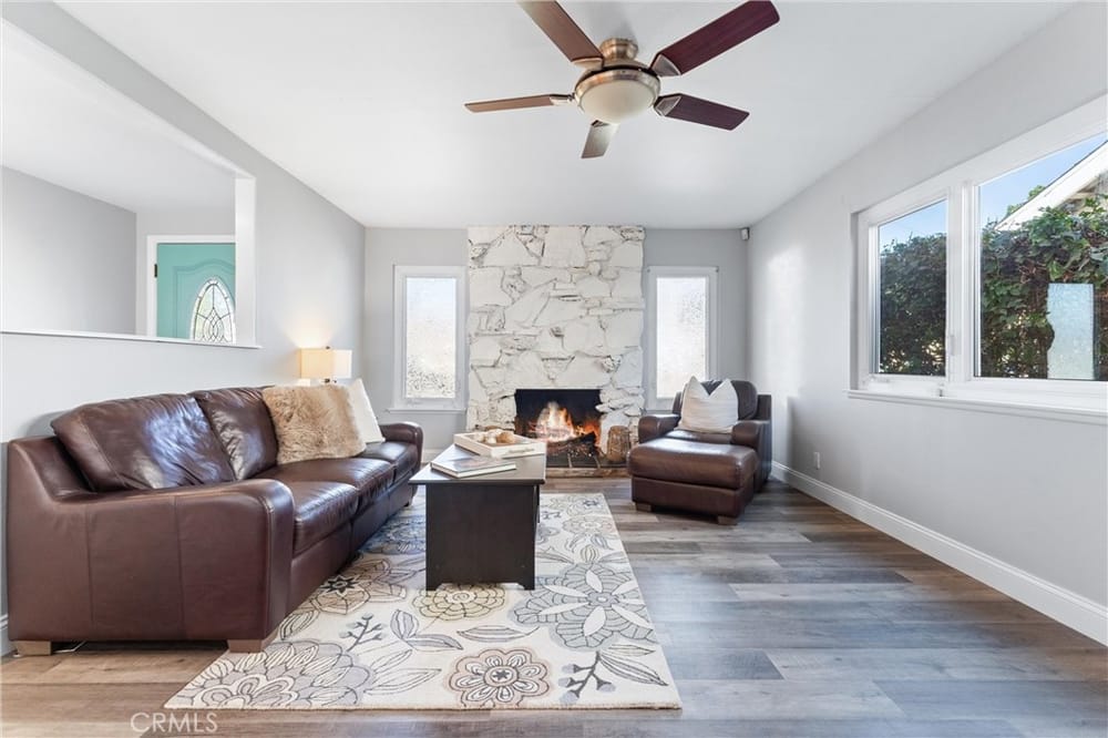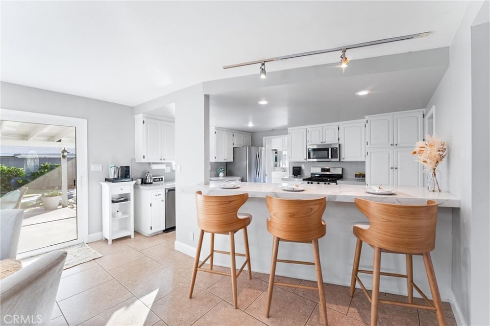 This 1,772 sq. ft.3 bedroom, 2 bathroom - Santa Ana oasis is framed within an established neighborhood, cared for and clean. Curb appeal abounds with planted gardens at each side of the front entrance and ample parking outside the attached two car garage.A newly painted, open floor plan is revealed as you enter the front foyer. A welcoming view from the foyer through the home and extending to th...e covered patio draws you into the home. Subtle earth tones and white accents combine with recessed and contemporary lighting to create clean lines and a visually living uplifting environment. Just to the left of the foyer is the formal living area. Light spills through the windows, creating a warm gathering area. The fireplace and stone floor-to-ceiling surround create a beautiful focal point. The living room has a large ceiling fan to provide a waft of air on warm days. Follow the open floor plan into the home’s culinary center and dining area. The stainless steel appliances feature an under-counter mounted double sink, dishwasher, refrigerator with French doors, microwave and gas range. An elegant, polished quartz countertop is on the breakfast bar and throughout the kitchen. Seemingly unlimited storage is provided by the white kitchen cabinetry. Relaxation is just a few steps away, as you transition from the kitchen’s dining area through sliding doors to poolside covered patio. The laundry area, located just outside of the kitchen, has full-size washer and dryer as well as a sink and storage cabinet.The home’s primary bedroom features double doors opening to the aquatic space in the back yard. A walk-in closet affords storage of hanging garments and shelving to accommodate every need. The bedroom’s en suite is remodeled and has a large walk-in shower with rain shower head and quartz covered shower bench. Mirrored closet doors are an added bonus in each of the two other bedrooms. The shared bathroom has also been remodeled and includes a soaking tub and rain shower head. A ceiling fan cools each of the three bedrooms.This home has a newer HVAC system and whole house fan to ensure comfortable living. The swimming pool is the central attraction in the backyard, with a covered patio, beautiful landscaping and avocado and orange trees, outside shower by back door leading into laundry area.Tustin school district , schools, freeways conveniently located. Make an appointment to tour this treasure today!