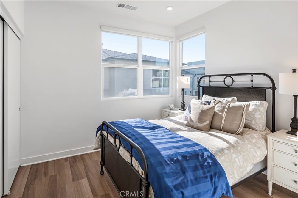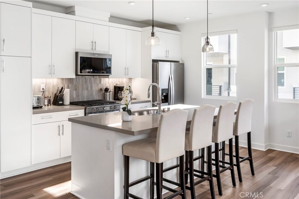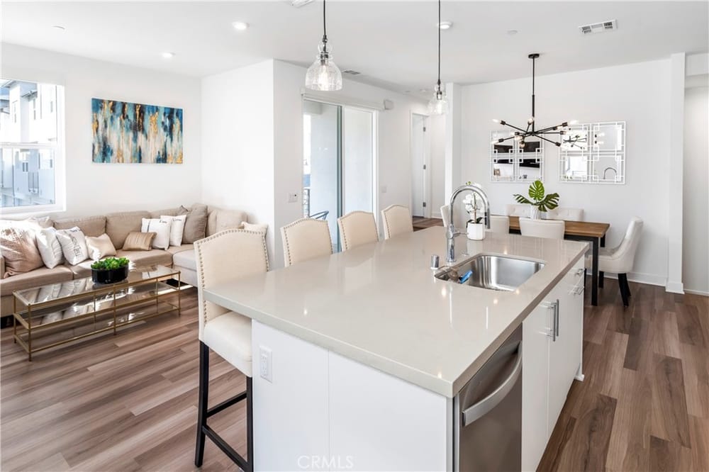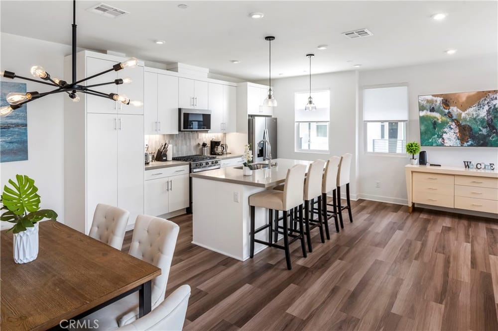 Welcome to this beautiful Toll Brothers home, situated in the highly sought-after gated community of 100 West in Anaheim. This modern 3-bedroom, 2.5-bathroom residence offers 1,296 sq. ft. of comfortable living space, with a prime corner unit location that provides stunning direct views of Disneyland and the nightly fireworks display. The unique position of this unit, combined with the building's ...location, offers an exceptional viewing experience right from the comfort of your home. The home is conveniently located near top attractions such as Disneyland, the Honda Center, Angel Stadium, and the Anaheim Packing District, along with major medical centers, professional buildings, college campuses, and Santa Ana Mall. Upon entering the first floor, you'll find direct access to a 2-car garage. The second floor boasts an open-concept layout featuring a spacious living area, modern kitchen, dining area, and a balcony perfect for outdoor relaxation. A convenient powder room completes the second floor. The third floor hosts all three bedrooms, along with a centrally located laundry closet for added convenience. Additional features include solar panels, an electric vehicle charging station, newer kitchen appliances, a refrigerator, washer, and dryer. This home offers the perfect blend of luxury, convenience, and modern amenities in a prime location.
