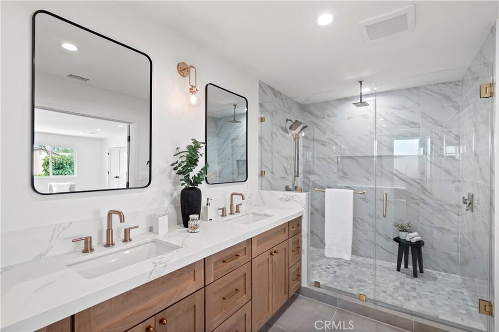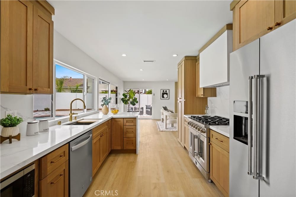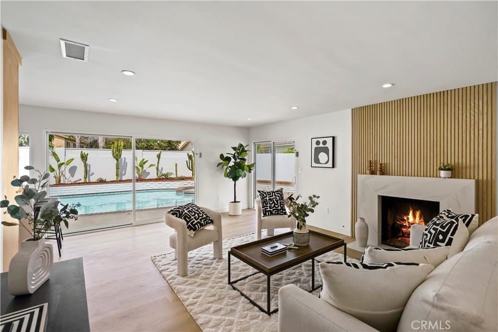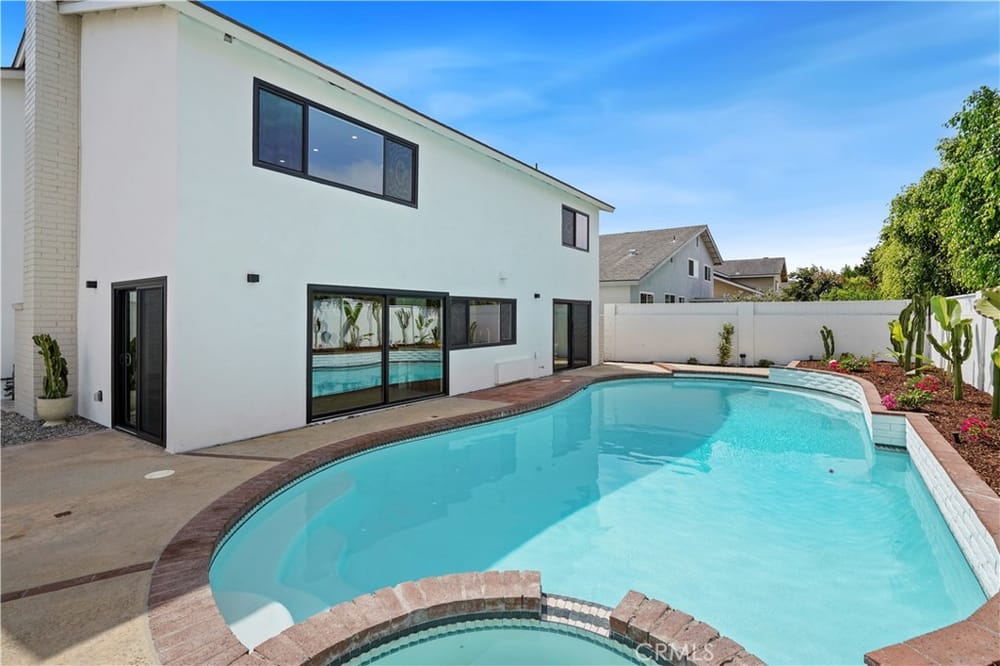 BACK ON MARKET!! Time to make it yours!! An amazing, completely reimagined home in an incredible location. Walk through your gated courtyard and step into the generously sized entry area where you will find a beautifully remodeled powder room and dual coat closets. Step to your left to find a huge living room and formal dining room overlooking the pool and courtyard. Step to your right and find yo...urself in the expansive family room with built in bar and sink. A cozy fireplace completes this room. The kitchen is a culinary dream overlooking the pool, dining room and family room. Complete with abeautiful 36 Forno stove, refrigerator, microwave, and dishwasher. Enjoy eating a quick bite at the breakfast bar, or serve 8 people in the formal dining room. Upstairs you will find 4 bedrooms total. One of them is a massive 300sf (add a wall and make 2)bedroom with an additional 300 sf bonus room could be used as a playroom wing or an amazing space. 2 more generous sized rooms are off the hallway. The oversized master overlooking the pool boasts a huge walk-in closet and completely reimagined master bath complete with dual sinks, huge shower and separate toilet area. There is also a huge storage/gift wrapping room off the stairway. Outside you will find a remodeled pool and jacuzzi with all new plumbing, tile, equipment, and plaster. There are multiple entertaining areas all complimented with new landscaping. The three car garage boasts new doors and openers and an epoxied floor. All new electrical, plumbing, stucco, HVAC, windows doors, and floors. Close to Bella Terra Mall, Goldenwest college, and just a short drive or bike ride to the beach.