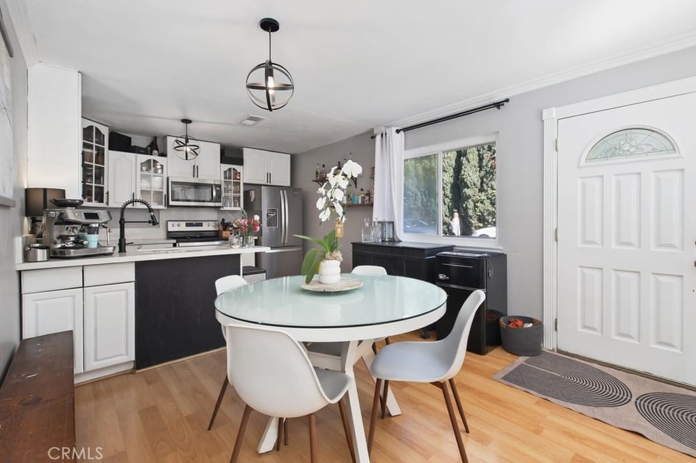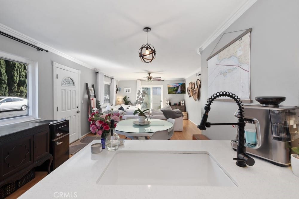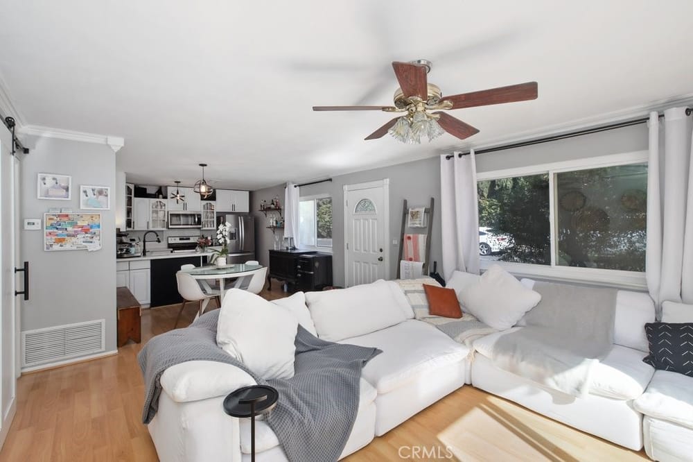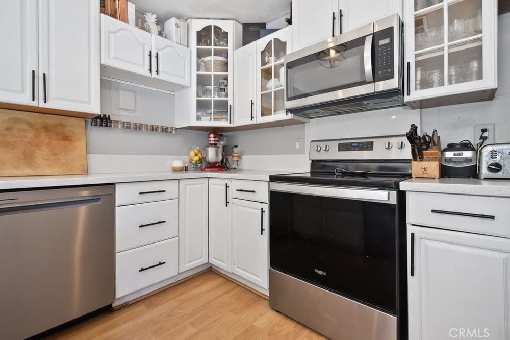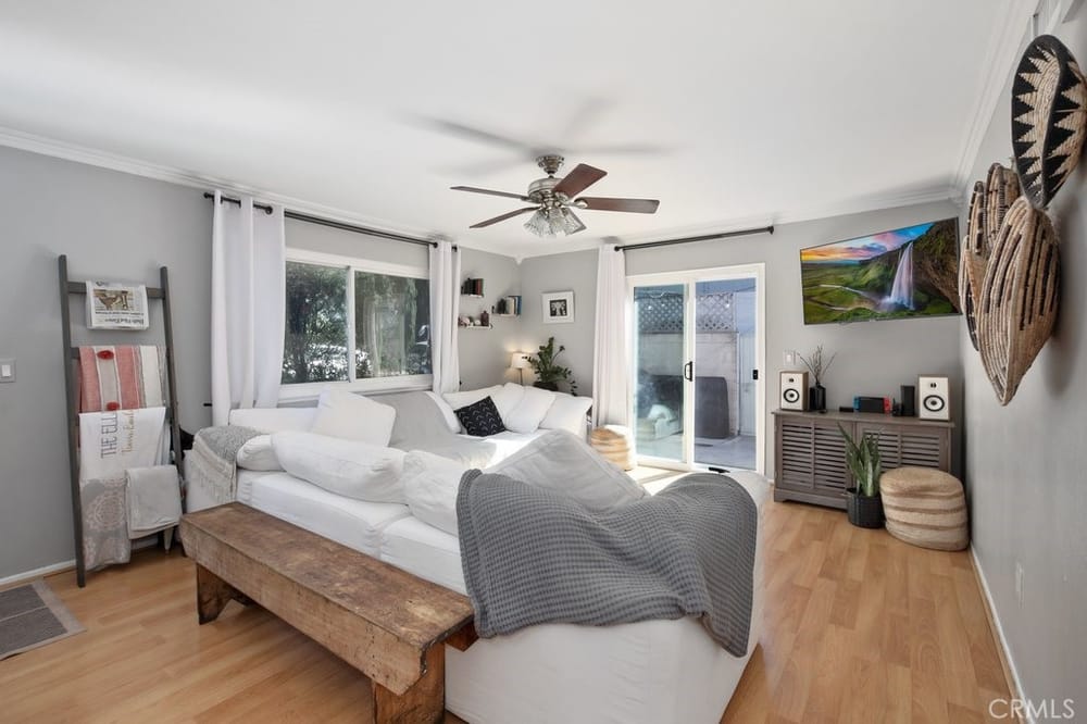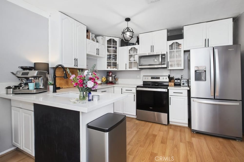 Charming Single-Story Upgraded Condo in the Desirable Harbor Heights Villas in Surf City!Nestled in a prime location in the serene Harbor Heights Villas community, you'll enjoy abundant natural light, a spacious front yard with lush grass, and easy access to guest parking. Upon entering, you’ll be greeted by a bright and open living area featuring gorgeous flooring that flows seamlessly throughou...t the space. Large windows flood the room with natural light, creating a warm and inviting ambiance. The living area opens up to a dining room, ideal for entertaining, and a gourmet kitchen. The kitchen boasts modern white cabinetry, elegant countertops, stainless steel appliances, and sleek light fixtures. The interior design impresses with a sliding barn door leading to the hallway, adding a touch of rustic charm and privacy. The primary suite boasts a spacious layout, mirrored closet doors and a ceiling fan and Air Conditioning for comfort. The secondary bedroom is also generously sized. The bathroom is bright and stylish, completing the home’s modern appeal.A sliding glass door leads you to your private backyard—perfect for enjoying a peaceful morning coffee or evening sunsets. The unit also includes a convenient laundry room located next to the detached garage.Located in the heart of Huntington Harbour, this condo is just minutes away from popular destinations like Trader Joe’s, Harbor Elementary School, and is only one mile from the picturesque Bolsa Chica Beach. Harbor Heights Villas offers residents a variety of amazing amenities, including a sparkling pool,clubhouse, expansive greenbelts, and basketball courts. The community is also near Huntington Harbour, an array of shopping and dining options, as well as PCH, the 405, and 22 Freeways.Don’t miss the opportunity to make this wonderful property your new home!