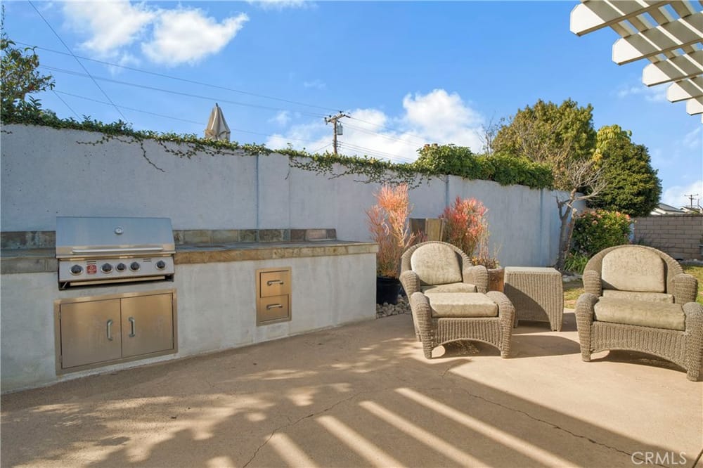 LOCATION LOCATION LOCATION!!! This spacious home is ideally situated on a serene cul-de-sac in the heart of Mesa Verde’, near TOP SCHOOLS, close to shopping, parks, freeways, and MINUTES TO THE BEACH! What's not love? Wonderful curb appeal with lush landscape and pristine hardscape with a PAVERED driveway and front porch. Upon entering you'll love the SOARING CEILINGS and MASSIVE WINDOWS when y...ou step into the spacious living/formal dining room with access to the backyard through FRENCH DOORS and flows right into the OPEN CONCEPT KITCHEN/LIVING room with WOOD BEAM CIELINGS, A COZY FIREPLACE, and FRENCH DOORS that take you to the backyard. You'll be pleasantly surprised down the hall when you enter the PRIMARY bedroom with an ON-SUITE BATH and FRENCH DOORS leading to a PRIVATE COURTYARD. Another bedroom also with HIGH CEILINGS and FRENCH DOORS that take you to the backyard as well where you have EXTENDED OUTDOOR LIVING with a BUILT-IN BBQ, STAMPED CONCRETE, GAS FIREPIT (unsure if operable), and attached pergola/patio, alongside a grassy area. This home has just undergone a FRESH NEW EXTERIOR PAINT job and a NEW HVAC and DUCT SYS. Other features include COPPER PLUMBING and DUAL PANE WINDOWS.