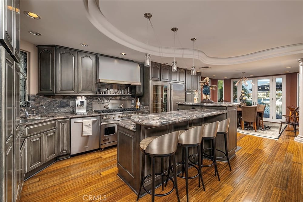 This property located in Huntington Harbor’s most sought after 24 hour guard gated community Coral cay has over a 5,800 sq ft lot. Property was torn down to the studs and completely rebuilt in 2001. This stunning property offers breathtaking views of the Main Channel and the on-water lifestyle. Boasting nearly 4,000 square feet of living space, the residence exudes elegance and comfort, perfect fo...r modern living and entertaining guests. The four-bedroom, three-bath home features an open floorplan creating a spacious and inviting atmosphere. Plenty of windows and glass showcase the picturesque waterfront views, while high ceilings and luxurious finishes such as hardwoods and stone add to the home's charm. A unique curved glass stairway adds a touch of sophistication, leading to a fully-equipped bar with a 175-gallon exotic fish tank, making it an ideal space for entertaining. The gourmet kitchen is a culinary enthusiast's dream, with a Wolf range, Sub Zero refrigerators, and other top-of-the-line appliances. The primary bath offers a custom soaking tub and arced glass shower, providing a spa-like retreat. Additional features include a tankless water heater, new generator, dual-zoned HVAC, and soft water systems for added convenience. Outside, the property is equally impressive a spacious terrace with a plunge pool, spa and a deep-water dock capable of accommodating up to a 45’+ craft. Residents can enjoy access to Coral Cay's private beach, pickleball and tennis courts, creating a resort-like experience right at home. Located within walking distance to Sunset Beach to enjoy beautiful sunsets, dinning or walks on the beach. Whether relaxing with family or hosting Christmas Parade party’s, this property is a rare find, blending luxury, comfort, and unparalleled waterfront living.