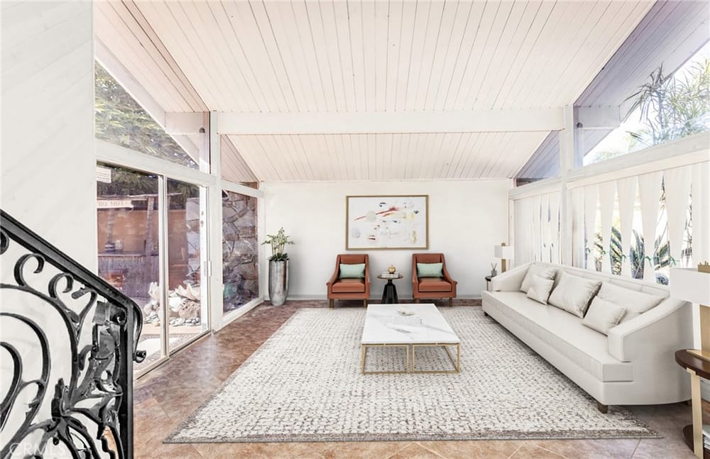 The MIDCENTURY design + PANARAMIC OCEAN VIEWS + highly sought after LOCATION combined with your personal innovation will offer the finest in COASTAL LIVING. From your huge PRIVATE BALCONY off the primary bedroom suite, it offers an OVERLOOKING VIEW of the HUNTINGTON HARBOUR CHANNELS, the MARINA, Pacific Ocean, mountain range, and Bolsa Chica Wetlands. This amazing home is located on the ELEVATED H...ILLTOP (PRIVATE LIKE) STREET with homes only on one side of the street leaving ample of parking spaces and wide-open street. As you enter the home, you will notice the long-paved driveway that could accommodate an RV. This QUIET Street is primarily used by residents. It comes with 4 SPACIOUS BEDROOMS upstairs with option to repurpose 5th BEDROOM downstairs with private patio doors. The EXPANSIVE FINISHED 4 cars GARAGE equipped with central heating and wall to wall carpet. This spacious garage may be utilized as an ADU, man cave, hobby room, or playground. The LARGE DEN is great for family entertainment or a theater room. The light and open-air MIDCENTURY design with VAULTED and WOOD beamed CEILINGS create the perfect flow for the ONSHORE BREEZE straight up the bay! Just steps to YOUR NEW leased BOAT DOCK at the MARINA, BOLSA CHICA WETLANDS, HIKING TRAILS, EV Charging Stations, Banks and Restaurants. Enjoy the Huntington Harbour Christmas Boat Parade, Blue Angels Air Show and July 4th fireworks all in the comfort of your own residence.
