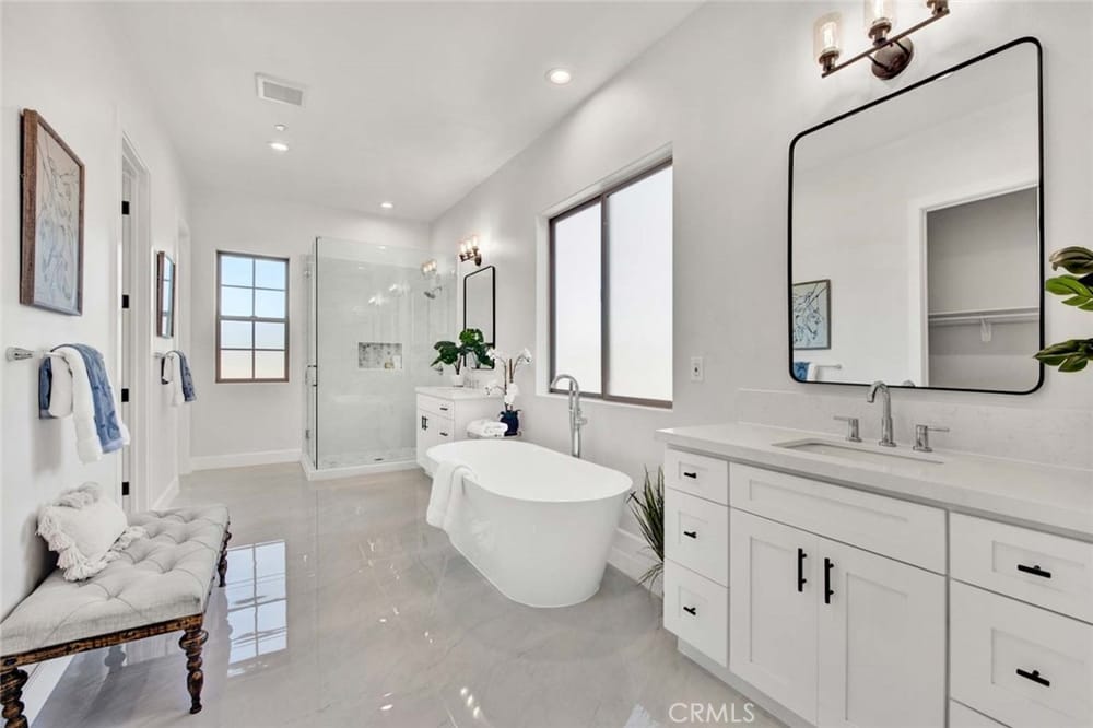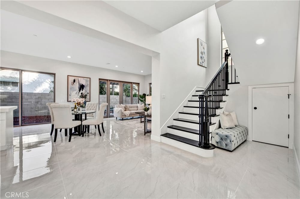 BRAND NEW LUXURY HOME, Built in 2024. One of Only 7 Quality-Built Homes Nestled in an Exclusive Enclave in the Heart of Fountain Valley, Close to Award-Winning Schools, Freeway Access, and Short Drive to Beach. This Magnificent 3.180 Square Foot Home Boasts 4 Bedrooms, 4 Bathrooms with 1 Bedroom and 1 Full Bath Downstairs and 3 Ensuite Bedrooms Upstairs, Plus a Loft/Bonus Room/Office Upstairs. Exp...erience Architectural Elegance with 10-Foot-High Ceilings Across Both Levels, Marble Flooring Downstairs, Wood Vinyl Floors Upstairs, All Dual Pane Windows, LED Recessed Lighting in Every Room, 8-Foot-High Raised Panel Doors, Tall Baseboards, Quartz Countertops, Designer Fixtures, and a Striking 21-Foot-High Staircase with Palladium Window, Creating an Atmosphere of Spacious Luxury. Equipped with Central A/C, Tankless Water Heater, and an Advanced Solar System, Villa Siena Embodies Sustainable Living with Modern Technology. This Remarkable Home is Located at the End of a Cul-de-Sac Street with an Extra Long and Wide Driveway, Beautiful Stacked Stone Exterior Siding, Tile Roof, 2 Car Garage, and Private Backyard with Covered Patio and Block Wall Fencing. It Includes an Elegant Formal Living Room, a Separate Formal Dining Room, and a Chef's Dream Kitchen that is Open to a Large Family Room with Stacked Stone Gas Fireplace. The Quartz Kitchen Features a Large Center Island with Seating, White Shaker Self-Closing Cabinetry, and Samsung Stainless Appliances, Including 5-Burner Gas Cooktop, Built-In Microwave, Oven, Dishwasher, Plus a Xtreme-Air Vent Hood and a Deep Farm Sink. The Primary Suite is Breathtaking with 2 Separate Quartz Vanities, Free-Standing Soaking Tub, Separate Oversized Walk-In Shower, and 2 Giant Walk-In Closets. Motion Censored Lighting in all Bathrooms. There is an Upstairs Inside Laundry Room with Storage Cabinets and Utility Sink. This Gorgeous Home Awaits the Descriminating Buyer.