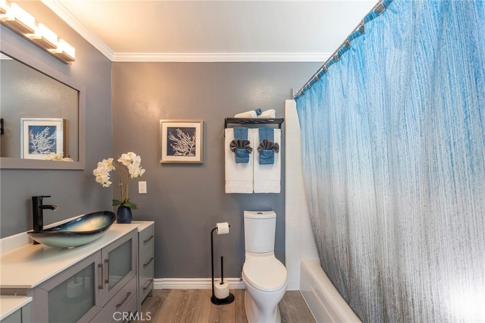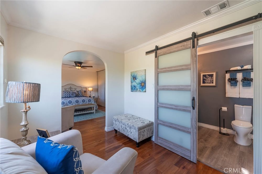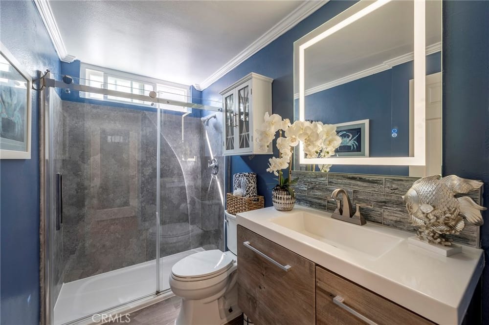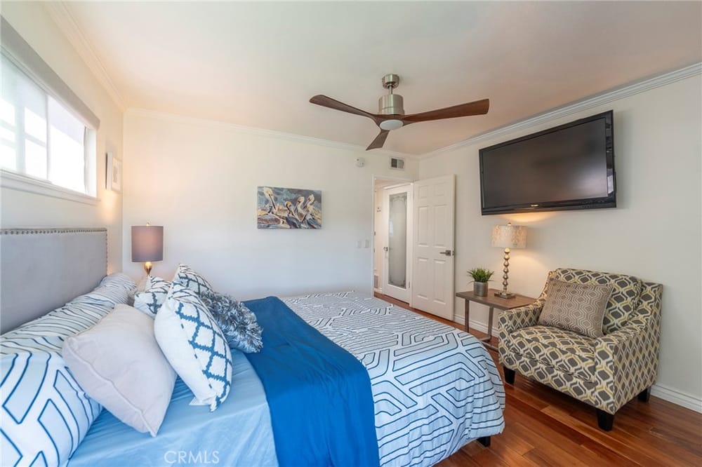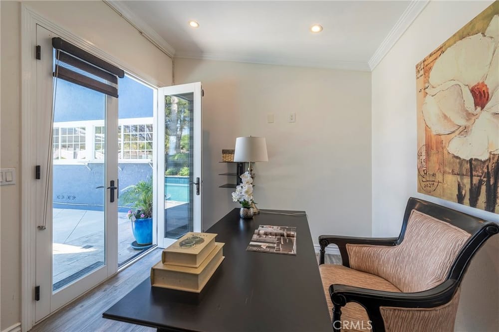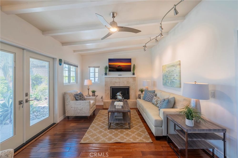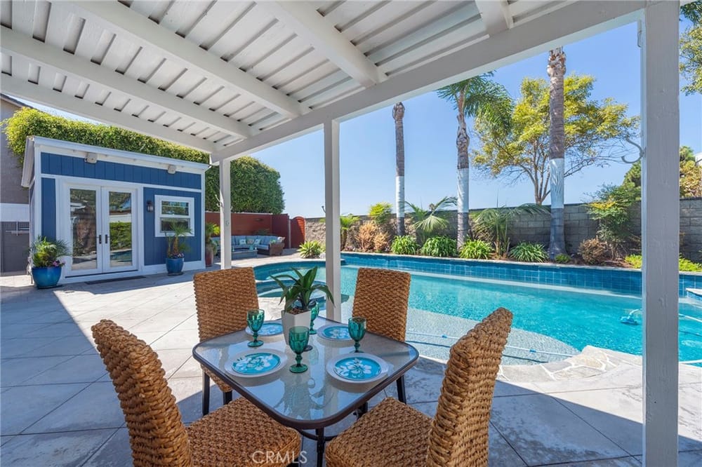 HUGE PRICE IMPROVEMENT! 3 bedroom + detached 119 sq. ft. structure (office, game room, pool house). Inside house could be converted to 4 bedroom. Welcome to your personal, private resort that you can call home. Located in a highly coveted neighborhood, award winning schools and within walking distance of the Bolsa Chica wetlands, walking trails that lead to the beach and public workout equipment ...right out your back private gate. Hardwood floors throughout. If you work from home, step out of your detached, private, structure with 8-foot French doors, fully insulated with air conditioning and heating, and wired for inside and outside speakers. Use as an office, game room or pool house. After a hard day’s work, enjoy your oasis backyard, with sparkling 40-foot pool remodeled in 2019 with pebble-tech, 8-foot Baja step, spa and multi-colored pool lights and water decent fountains. Pool and privacy wall lights controlled on your phone through Aqua Link®. The gas fire pit area with a view of the pool and mahogany lighted privacy wall sets the scene for intimate conversations or a gathering with friends and make the stress of the day disappear. Inside watch the sunsets or the kids play while preparing dinner in the remodeled kitchen featuring Samsung black stainless smart appliances with double oven, full-size refrigerator (included), Tommy Bahama tile, and built in dining area. (Dining table included). After a long day, retire upstairs to your primary bedroom retreat with view of HB sunsets and no neighbors behind you. 3 spacious closets and a separate dressing area overlooking the backyard. House recently painted outside and inside. RV parking, epoxy-coated garage floor with extra storage in rafters and cabinets and a workbench add to the extra features of this stunning home. Dual pane, vinyl windows and fenced front yard. Don’t miss this rare opportunity to make this gem your new home.