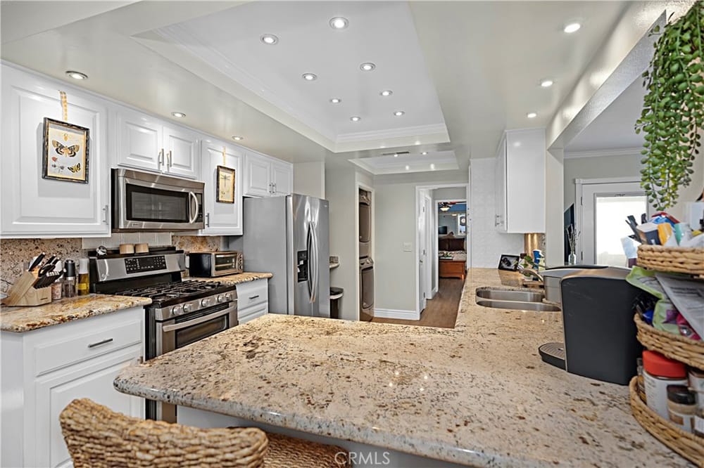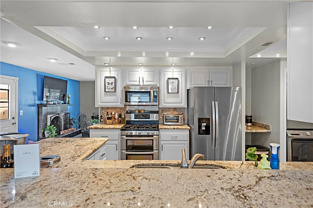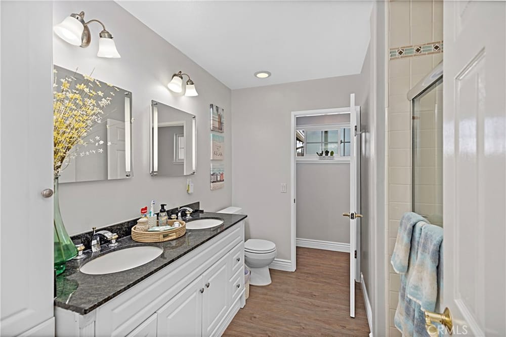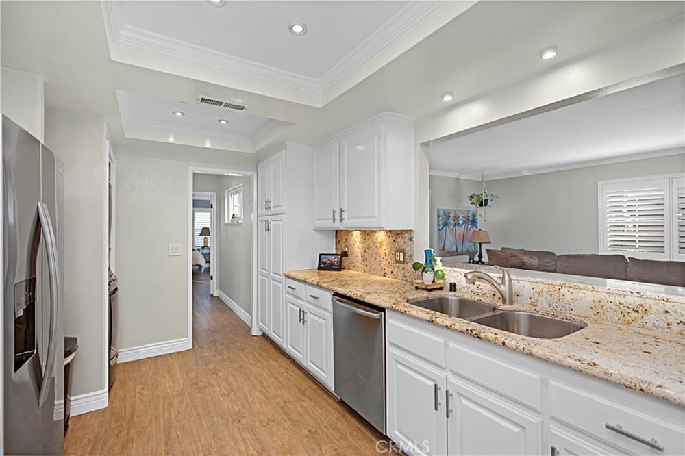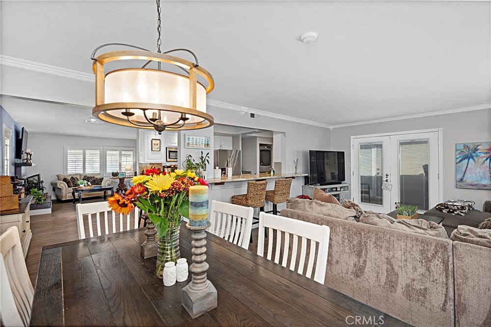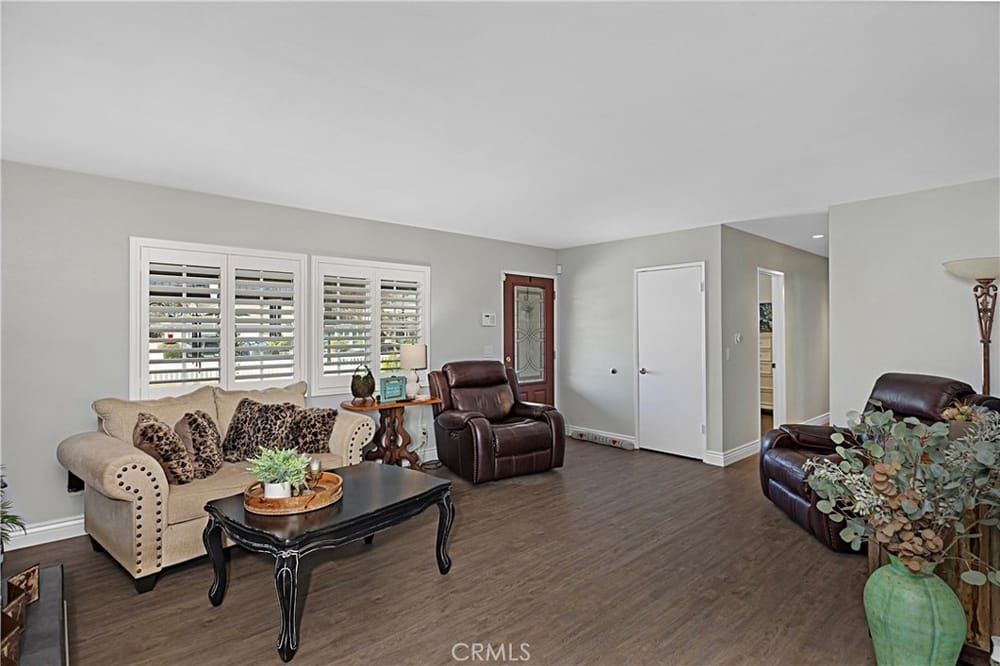 Welcome to this beautifully remodeled single-level home in the heart of Huntington Beach, where elegance meets comfort. This thoughtfully upgraded home features a large master suite complete with a walk-in closet, luxurious walk-in shower, and a spacious soaker tub. Dual sinks provide added convenience in the spa-like master bath, perfect for unwinding.Throughout the home, premium vinyl plank floo...ring and six-inch base moldings create a seamless, modern feel, while plantation shutters offer both style and privacy. The family and master suite boast crown molding, adding sophistication to each room. An open family room with double French doors leads to a private patio, ideal for indoor-outdoor entertaining.The kitchen is a chef’s dream, highlighted by granite countertops, a striking coffered ceiling with LED lighting, and ample space for cooking and gathering. The convenience of an interior washer and dryer space is included, while the A/C system with a Nest programmable thermostat keeps the home comfortable year-round.Environmentally friendly features include an owned solar electrical system and a tankless water heater. For electric car owners, a 220V outlet is ready in the garage, which also features built-in storage cabinets and a new side-mount garage door opener.Additional highlights include a gas fireplace, a new vinyl front yard fence, and an updated garage with a new door, adding both style and functionality. Don’t miss the opportunity to call this impeccable Huntington Beach home your own!