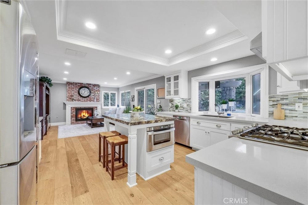 Get ready to fall in love with this stunning, completely remodeled Villa Park gem! This home has been transformed from top to bottom, so all you need to do is unpack your bags and get ready to enjoy the good life in this wonderful community. As you glide past the gated motor court and step through the decorative front entryway, you’ll immediately notice the wide plank wood floors that whisper “lux...ury” beneath your feet and the soaring cathedral ceilings that practically invite you to take flight. The spacious kitchen is a chef’s paradise, featuring a central island where culinary dreams come to life, sleek white shaker cabinets, and upgraded appliances. With quartz and leather granite countertops, this kitchen is not just functional but fabulously stylish. Plus, it flows seamlessly into a cozy family room, complete with a fireplace that’s perfect for those chilly Villa Park evenings. The large formal dining and living rooms boast beautifully crafted built-ins, ready to showcase your favorite treasures and family photos. The main floor bedroom, currently serving as an office, is just a hop away from a full bath—perfect for a late-night snack run or a caffeine fix! Head upstairs to discover two additional bedrooms and a luxurious master suite that feels like your own private retreat. The dual vanity bath and walk-in closet, featuring efficient built-ins, are sure to make your morning routine a breeze. This home is flooded with natural light, thanks to the dual-pane windows that not only invite sunshine in but also keep the noise out, ensuring peace and tranquility. Step outside to your very own resort-style backyard, where you’ll find an exotic rock spool (a delightful combination of pool and spa) that beckons for a refreshing dip. Complete with a soothing waterfall and an outdoor barbecue area, this space is perfect for entertaining friends or simply soaking up the sun. Nestled in the heart of Villa Park, you'll enjoy a charming suburban vibe with excellent schools, beautiful parks, and a tight-knit community atmosphere. Whether you're exploring the local shops or enjoying the scenic beauty that surrounds you, this home puts you at the center of it all. The property comes with a fully paid solar system featuring 29 Panasonic panels with microinverters, plus two 220V outlets in the garage for charging your EVs. Also included are stamped plans for a second story addtion adding two bedrooms and a downstairs office. Don’t miss out—your Villa Park oasis awaits!