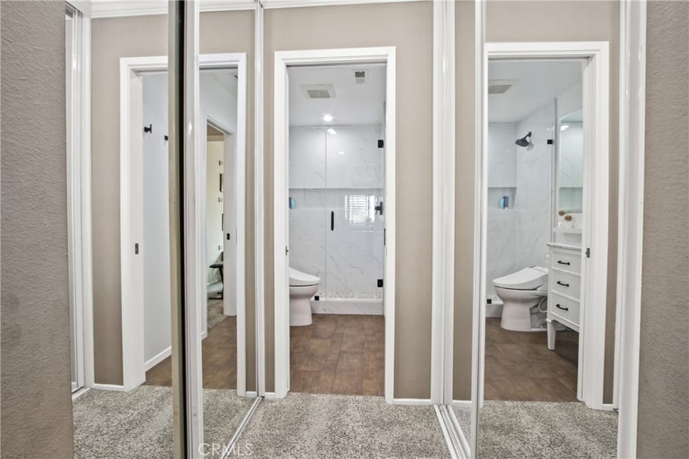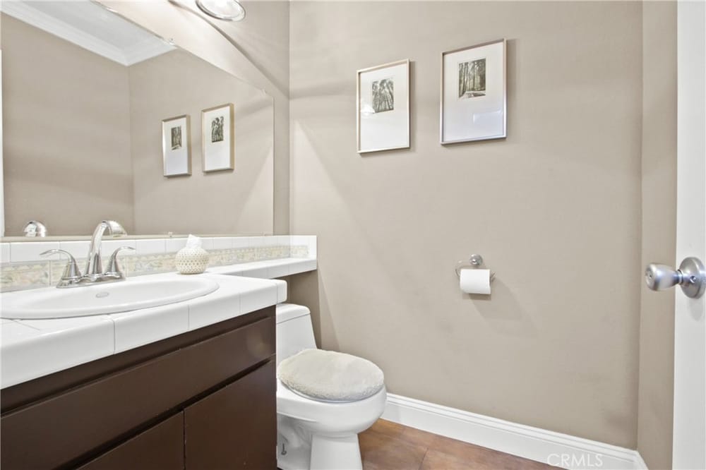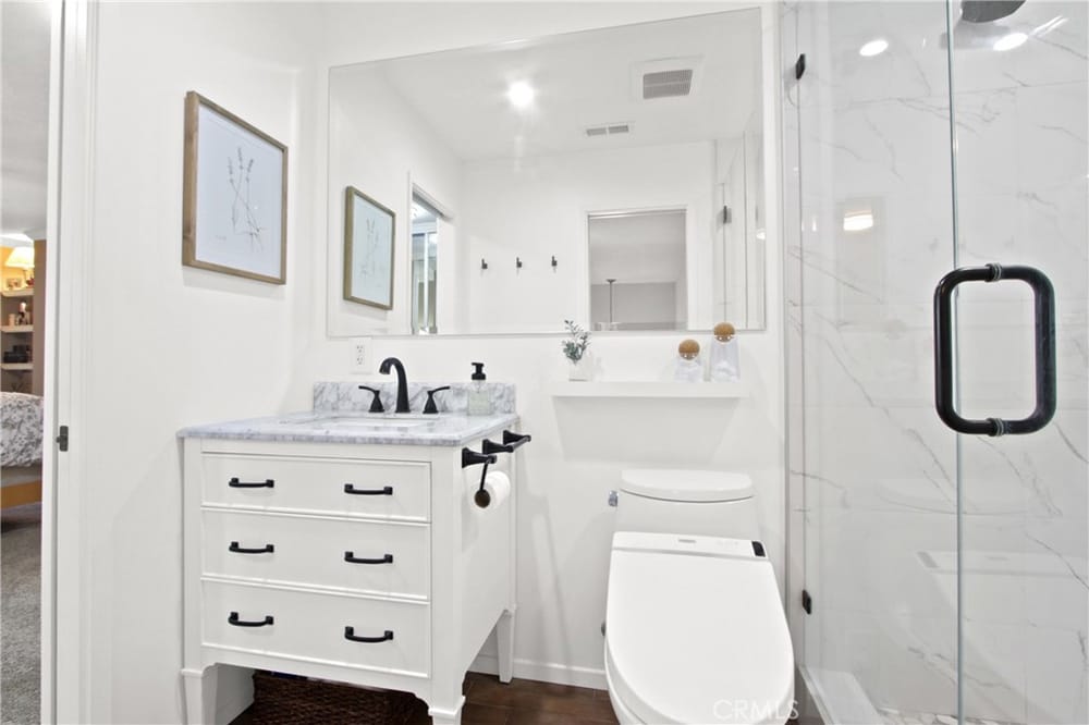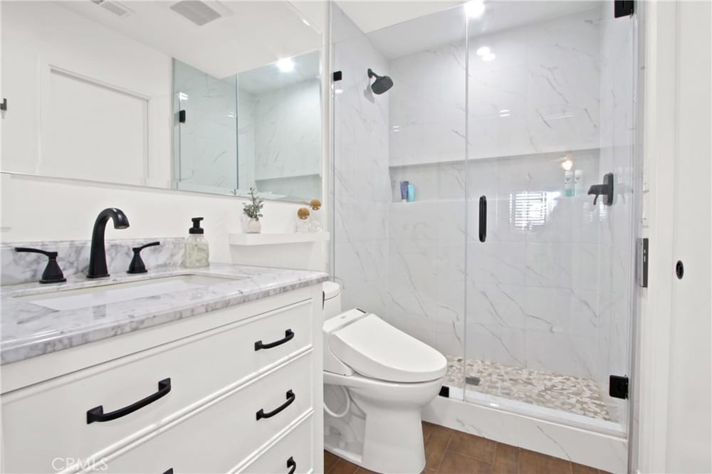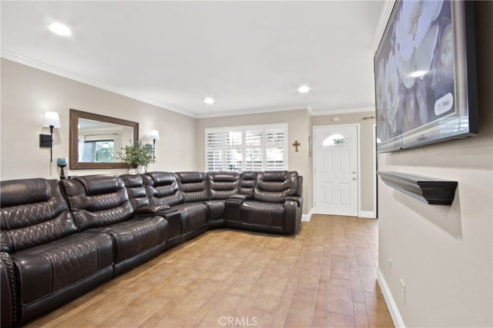 Nestled in the charming Huntington Beach community of Tamarack Village! HIGHLY UPGRADED townhome with a LOW HOA, three-bedrooms, one and a-half-baths, situated nicely within the middle of the community overlooking the pool and clubhouse, with no neighbors in front or behind! This home has been lovingly cared for by the owners for the past 21 years, truly a rare gem waiting for you to discover! Th...e remodeled kitchen (in 2018) is equipped with elegant Viscount white granite counters, 16x4 inch modern white glass back splash, Pro-American recessed shaker style panel cabinets in Java Cherry (lowers) and Linen (uppers) including under lighting, a Kohler stainless sink, five burner KitchenAid gas range with oven, Samsung refrigerator, Bosch dishwasher, and an under mounted microwave above the stove. The dine in kitchen is adjacent to the living room, and a spacious private front enclosed patio connected by a sliding door which makes it perfect for entertaining! Tucked around the back side of the living room is the half bathroom, and the direct access to the garage. All three bedrooms are located on the second level, a nice size primary room with two separate closets (mirrored sliding doors), and a balcony overlooking the pool with expansive views of the community! Across the hall from the primary suite, are the two additional bedrooms. The upstairs bathroom was handsomely remodeled in 2022 includes a Carrara marble vanity, bidet toilet, and a floor to ceiling “marble like” large tiled shower with frameless glass enclosure and a long shelf perfect for all of your toiletries! Other upgrades include: Central AC and heat, a separate 220V outlet for EV charging in the garage, dual pane low e-glass windows, plantation shutters, Gambarelli Atlantis Porcellanato plank tile wood look downstairs and in both bathrooms, crown molding, larger baseboards, dimmable LED recessed ceiling lights, 40 gallon water heater installed in 2023 with a six yr. warranty, diamond cut and polished cement patio slab, and washer and dryer in the garage are included. Residents of this community enjoy the sparkling swimming pool, complimentary use of the clubhouse and green belts! Water and trash are included with the HOA! Just a short four mile drive to Huntington State Beach where the sea meets the sand! This turnkey townhome is a must have!