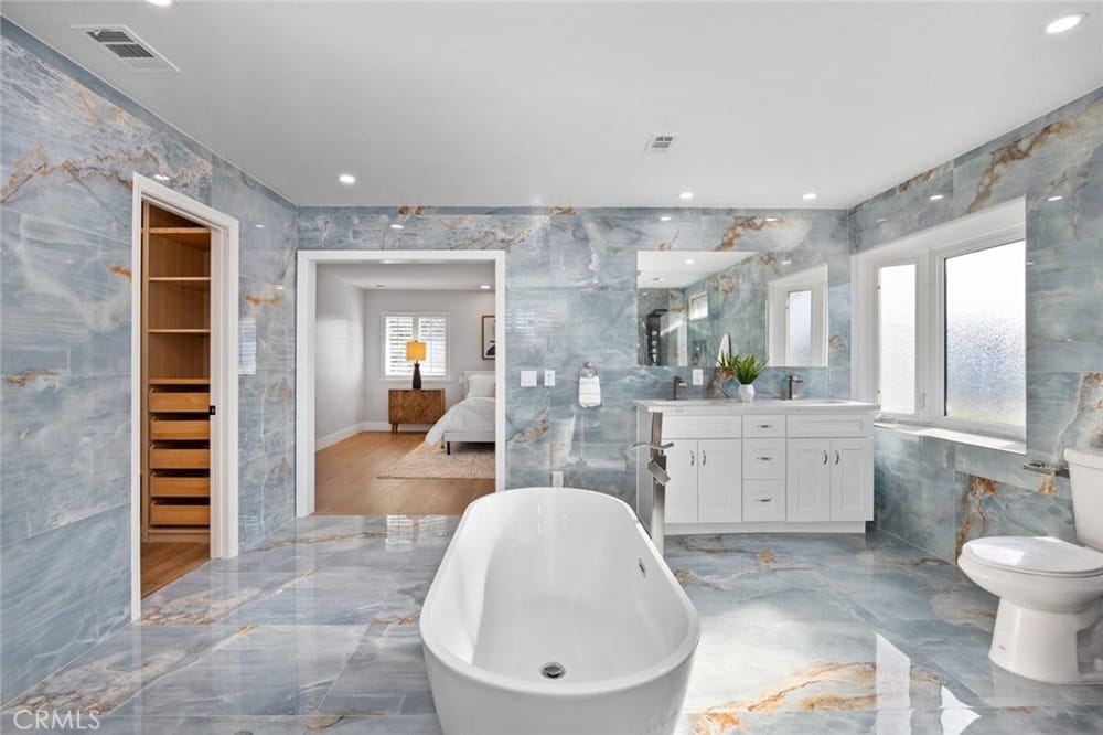 Nhà là nơi trái tim hướng về! Ngôi nhà được cải tạo tuyệt đẹp này nằm trong khu phố Upper Birds của Mesa Verde, cộng đồng độc đáo này chỉ cách Câu lạc bộ đồng quê Costa Mesa và Sân gôn, Công viên Fairview, một khu bảo tồn thiên nhiên với những con đường mòn để đạp xe hoặc chạy bộ đến bãi cát Huntington Beach vài dãy nhà. South Coast Plaza chỉ cách đó vài phút, nơi bạn có thể trải nghiệm cuộc sống về đêm của các nhà hàng được xếp hạng Michelin. Ngôi nhà tuyệt vời này có 5 phòng ngủ và 3 phòng tắm, bao gồm 2 phòng ở tầng dưới có phòng tắm ở giữa; 3 phòng ngủ ở tầng trên có phòng tắm theo phong cách Jack & Jills, một hốc nhỏ để làm phòng làm việc hoặc phòng chơi. Phòng ngủ chính lớn với nhiều tủ quần áo, phòng tắm bằng đá cẩm thạch kiểu Pháp tuyệt đẹp. Lối vào kép dẫn đến phòng khách có thiết kế hiện đại không gian mở. Nhà bếp hiện đại với tủ bếp màu trắng, góc ăn uống. Phòng sinh hoạt chung rộng rãi với lò sưởi ấm cúng dẫn thẳng ra sân sau có hồ bơi lớn, nơi bạn có thể tận hưởng thời gian chất lượng bên gia đình và bạn bè. Ga ra 3 ô tô có sàn ga ra bằng epoxy mới, Hầm rượu cổ. Đừng bỏ lỡ cơ hội trải nghiệm phong cách sống độc đáo của Nam California. Chào mừng về nhà!