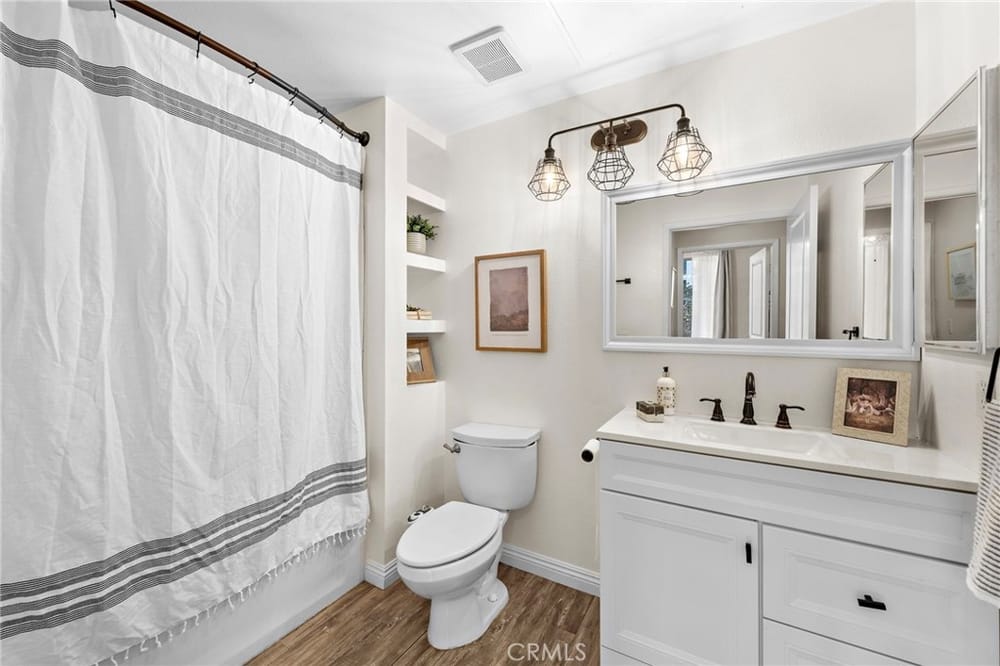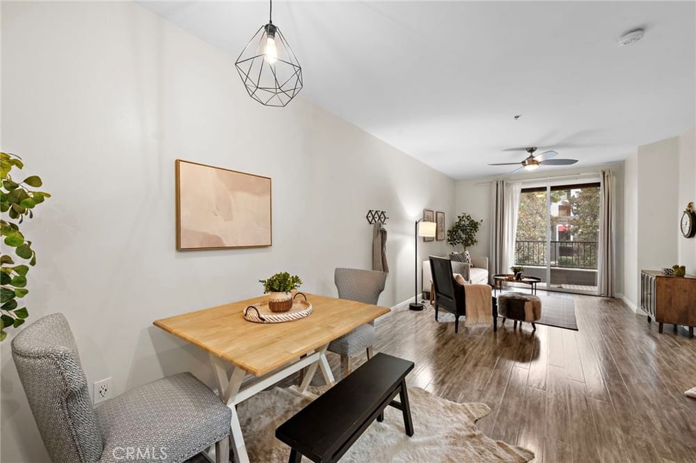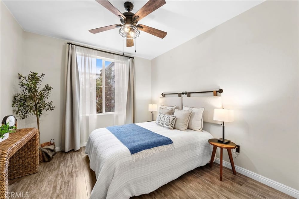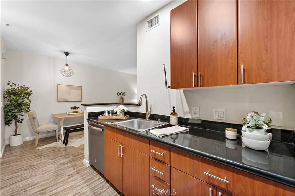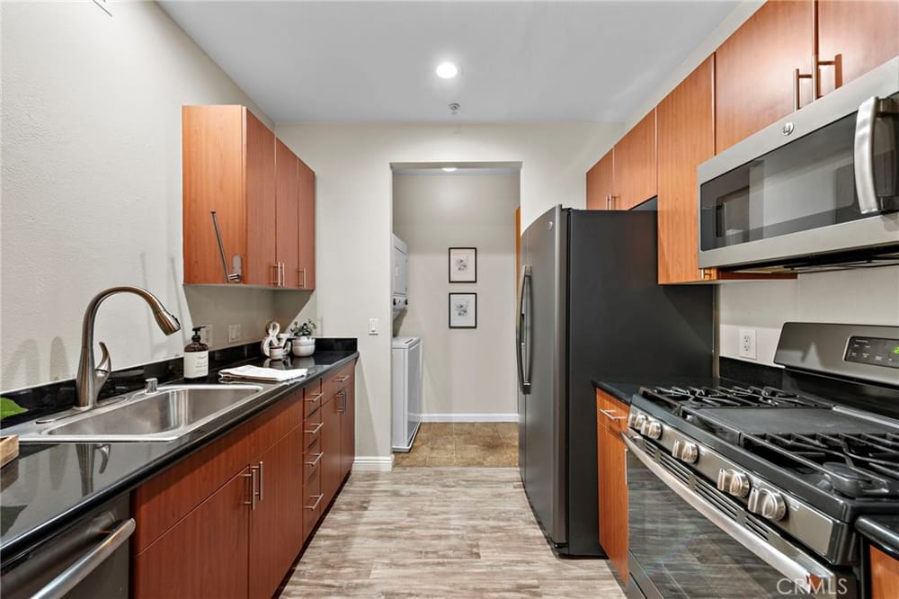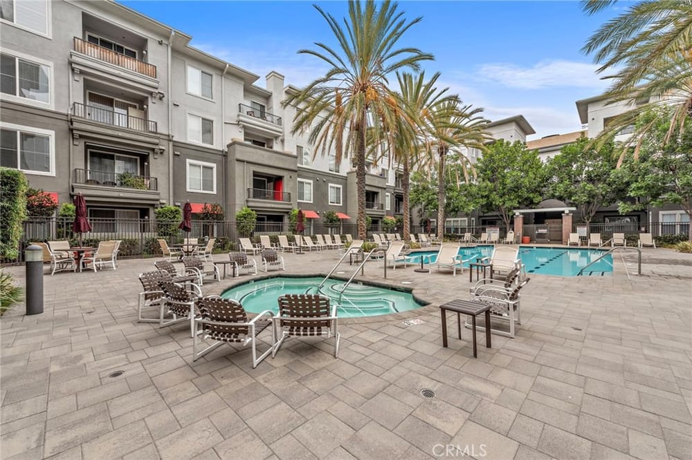 This beautifully updated 1-bedroom, 1-bathroom condo in a prime Anaheim location offers a stylish and comfortable living space. Featuring wood-like flooring throughout, custom hanging lights, and modern ceiling fans, this home is designed for modern living. The kitchen boasts ample cabinetry, stainless steel appliances, and a convenient stackable washer/dryer area. It opens seamlessly to the livin...g room, which flows out to a private deck overlooking the serene community courtyard—an ideal spot for relaxation or outdoor dining.The spacious primary bedroom is complete with a modern ceiling fan and direct access to the updated primary bathroom. This bathroom features a shower/tub combo, sleek countertops, and a custom light fixture, providing a fresh and inviting atmosphere.The community offers fantastic amenities, including a sparkling pool, spa, and a well-equipped workout room, adding to the convenience and appeal of this home. Located just minutes from iconic Anaheim attractions such as Angel Stadium, the Honda Center, and Disneyland, this condo offers the perfect combination of modern living and access to world-class entertainment, dining, and shopping. With its contemporary updates, prime location, and exceptional amenities, this condo is an ideal place to call home.